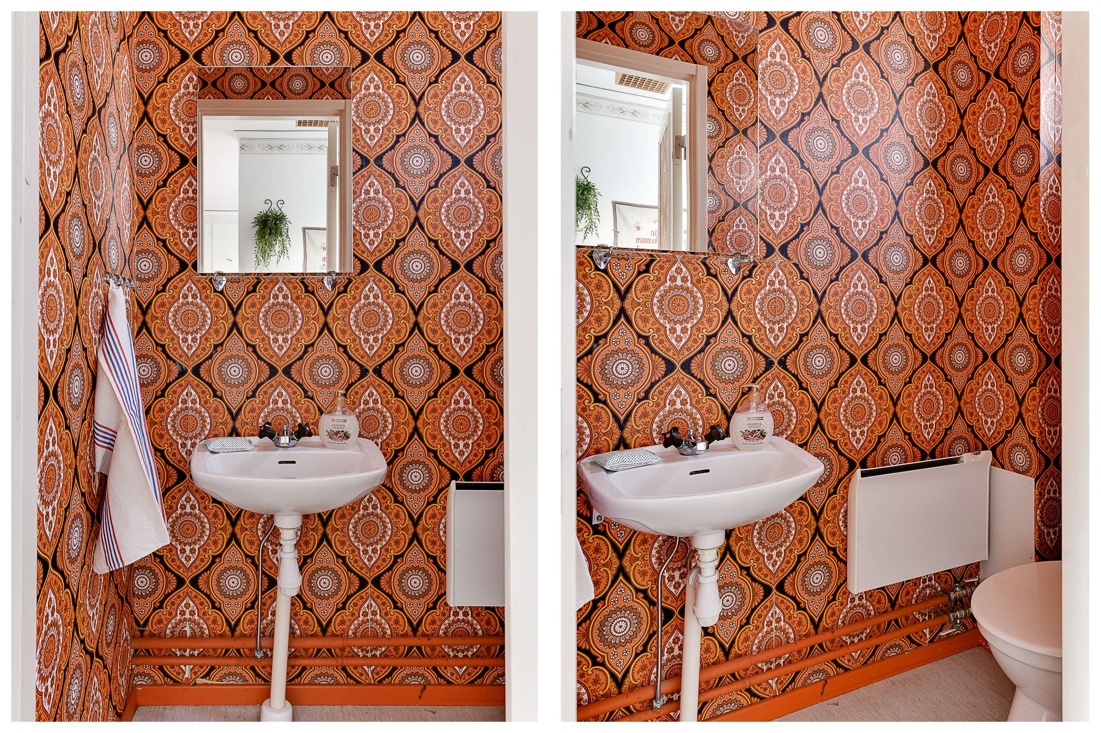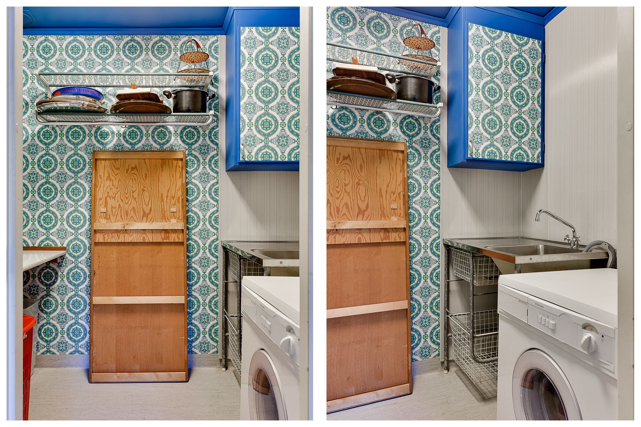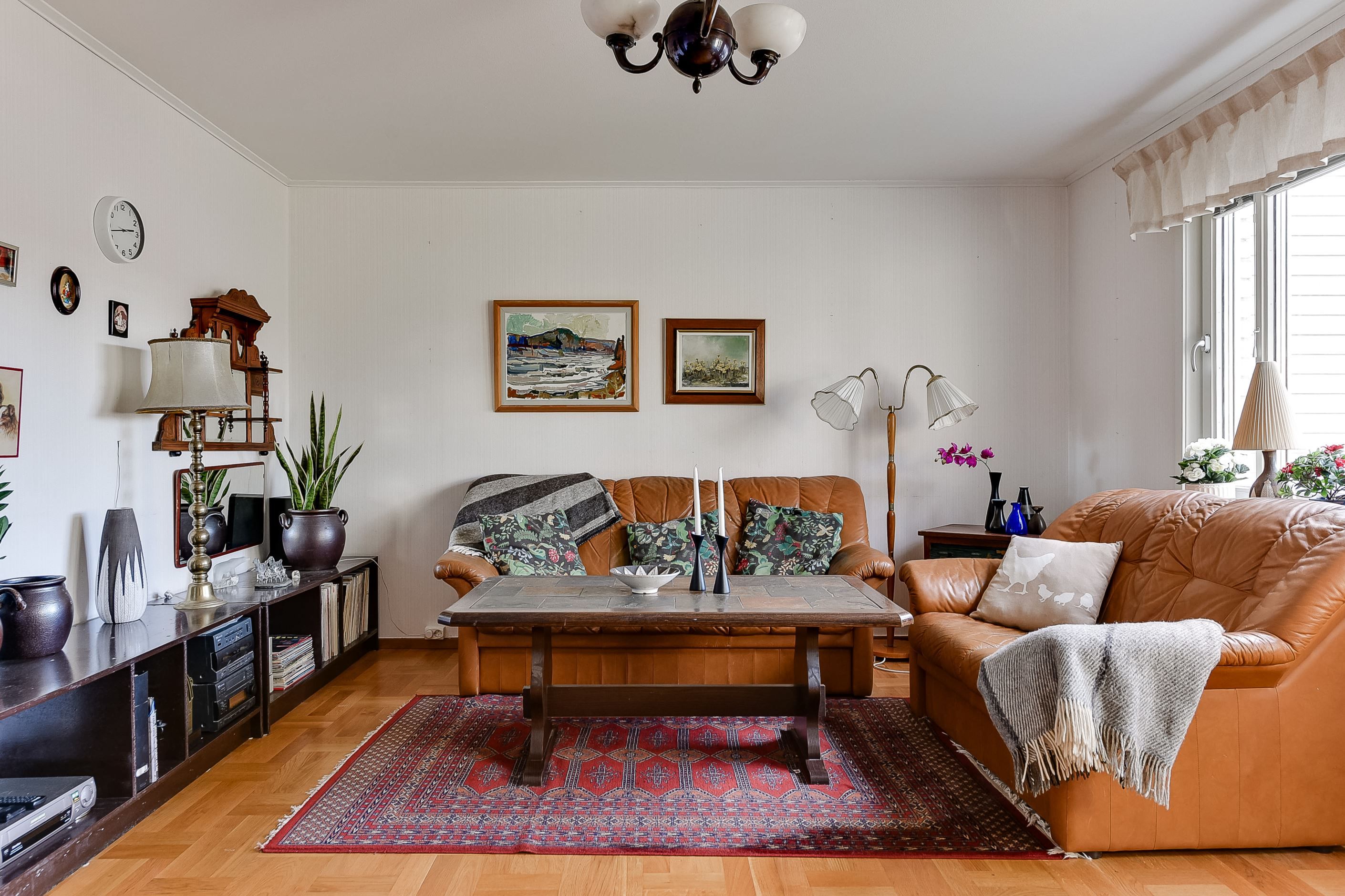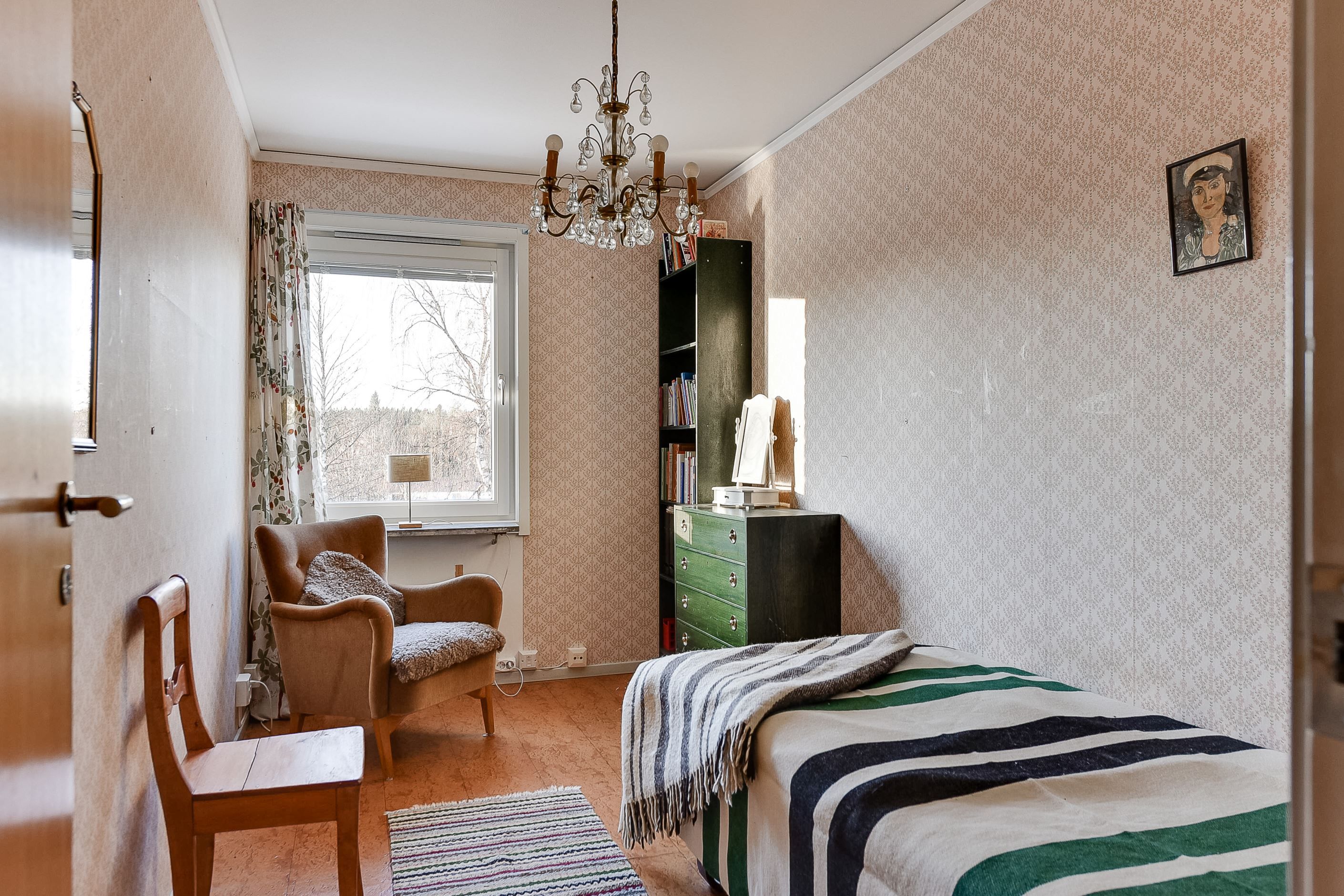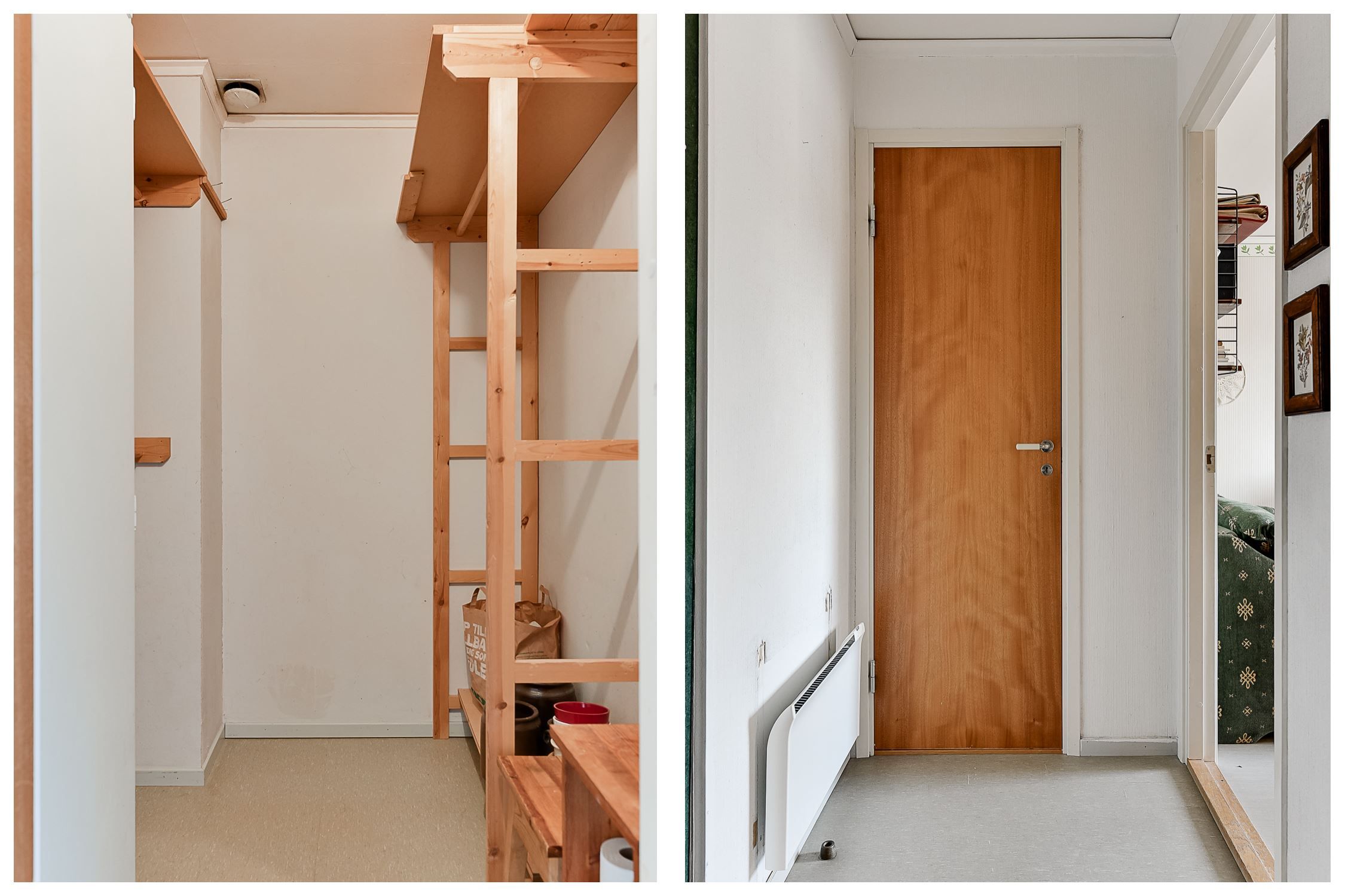 Entréplanet erbjuder ett luftigt vardagsrum med vackert originalgolv i ek och direkt utgång till uteplatsen. Här finns även ett kök utrustat med kyl, halvfrys, spis med ugn och diskmaskin samt med plats för middagsbord intill fönster, en praktisk gästtoalett samt en separat tvättstuga – detaljer som gör vardagen både smidig och bekväm. En trappa upp väntar tre rymliga sovrum, en praktisk klädkammare samt ett helkaklat badrum med dusch.