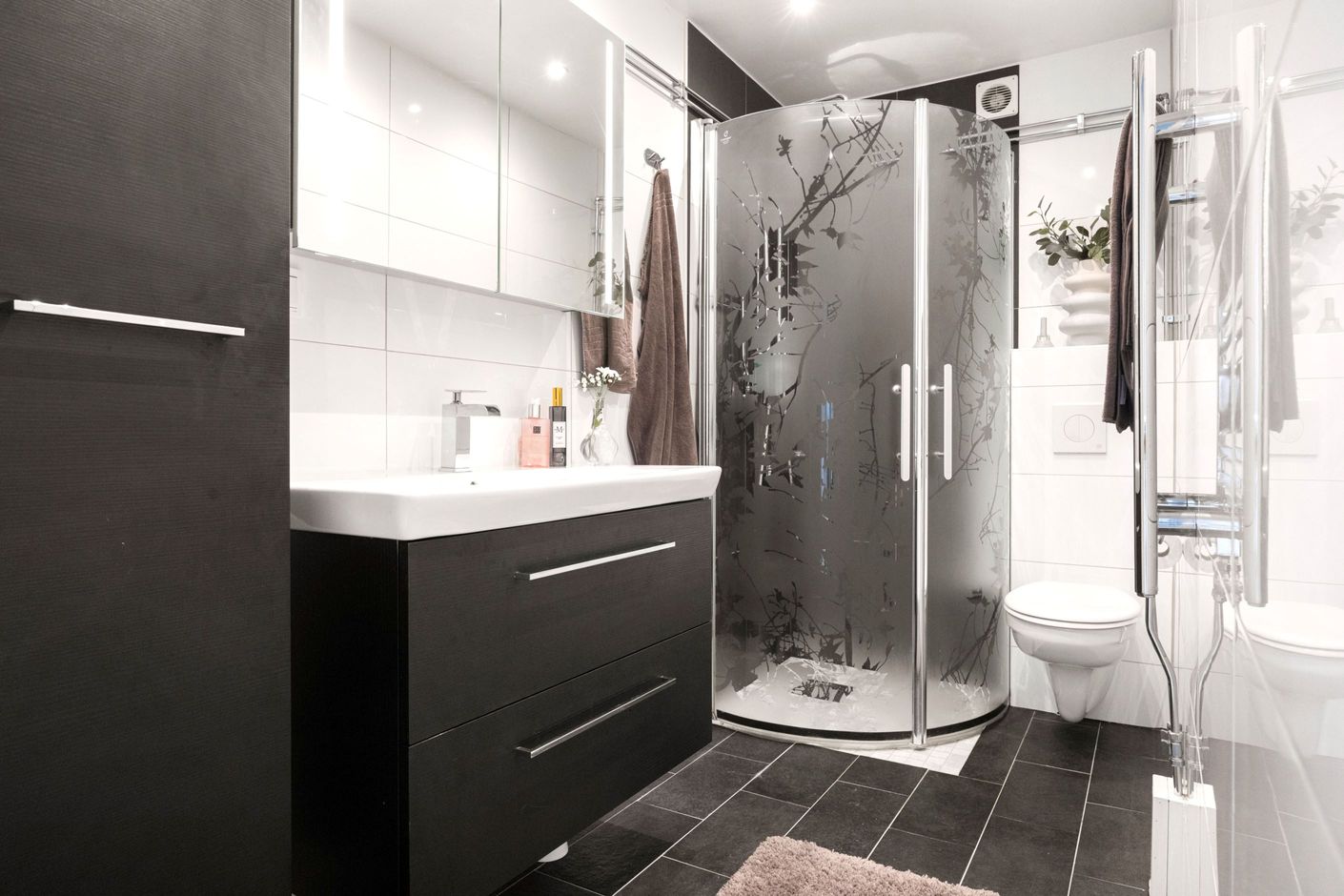 Hela lägenheten har renoverats löpande mellan 2015-2020. Du möts av en stor hall med fint och tåligt klinkergolv, ljusa väggar och god förvaring. Vidare in kommer ett helkaklat badrum från 2017 med golvärme, takdusch, extra brett handfat och förvaringsskåp. Köket är från 2015 och av hög kvalite. Dimbara spotlights i hela lägenheten. Balkongen ligger i optimalt sydvästläge med sol hela dagen och kvällen. Ingen insyn och ett stenkast från pendeln.