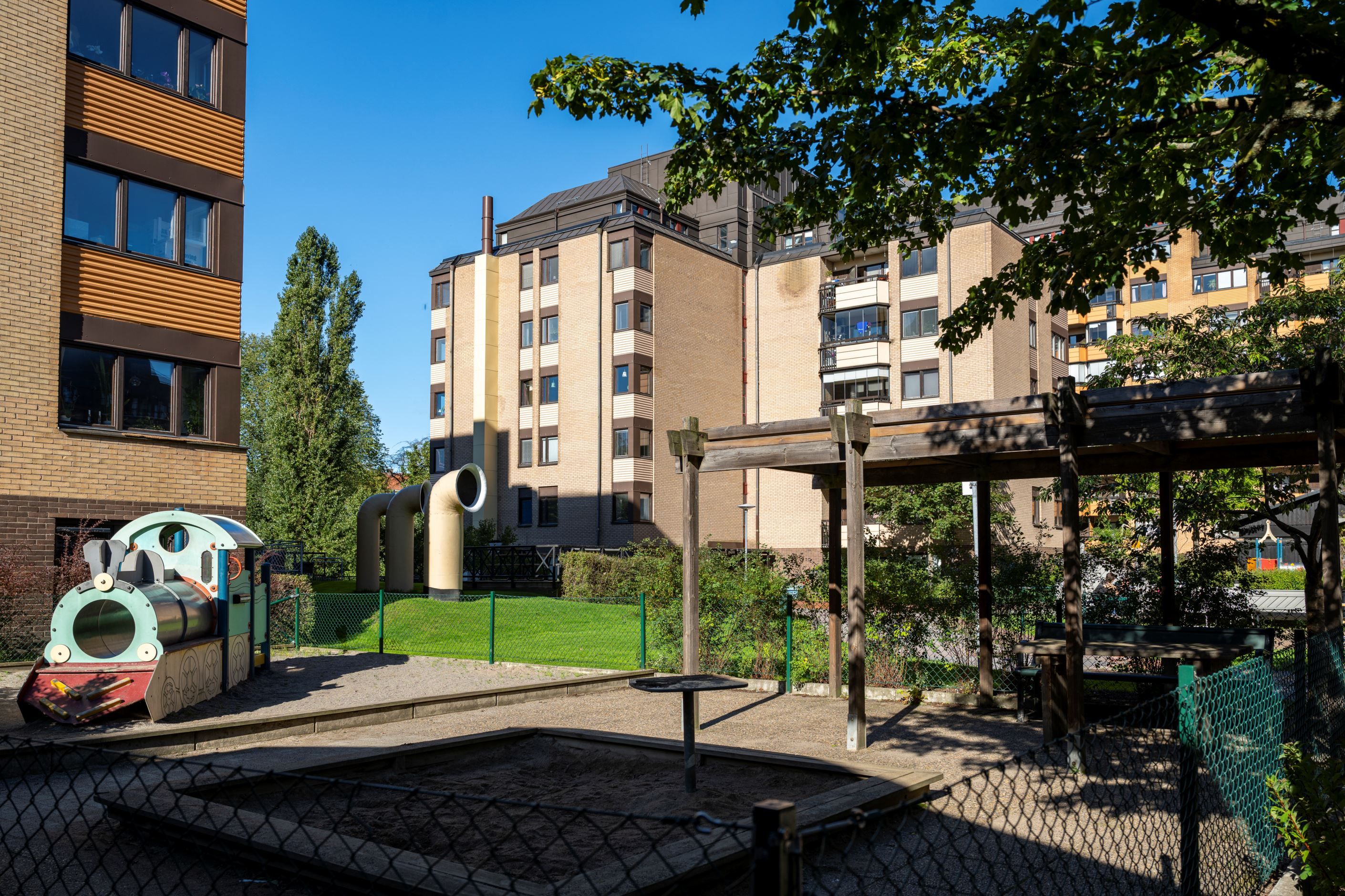 Högt ovan idylliska Älvsborgsparken svävar denna ljuvliga tvåa. Stor balkong i väst med sju våningar över gatuplan! Här erbjuds sol från tidig eftermiddag till sen kväll och en fantastisk utsikt över grönskande trädkronor mot Årstaviken. Mycket ljus och välplanerad lägenhet med närhet till allt!