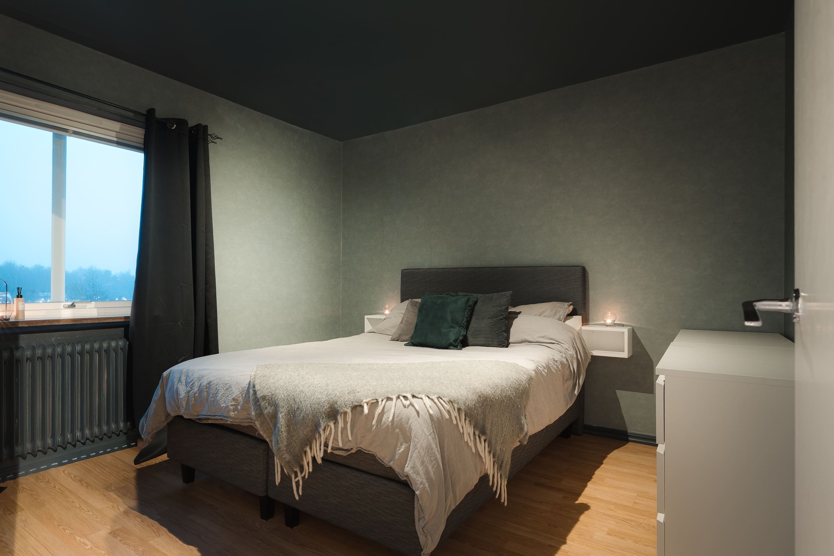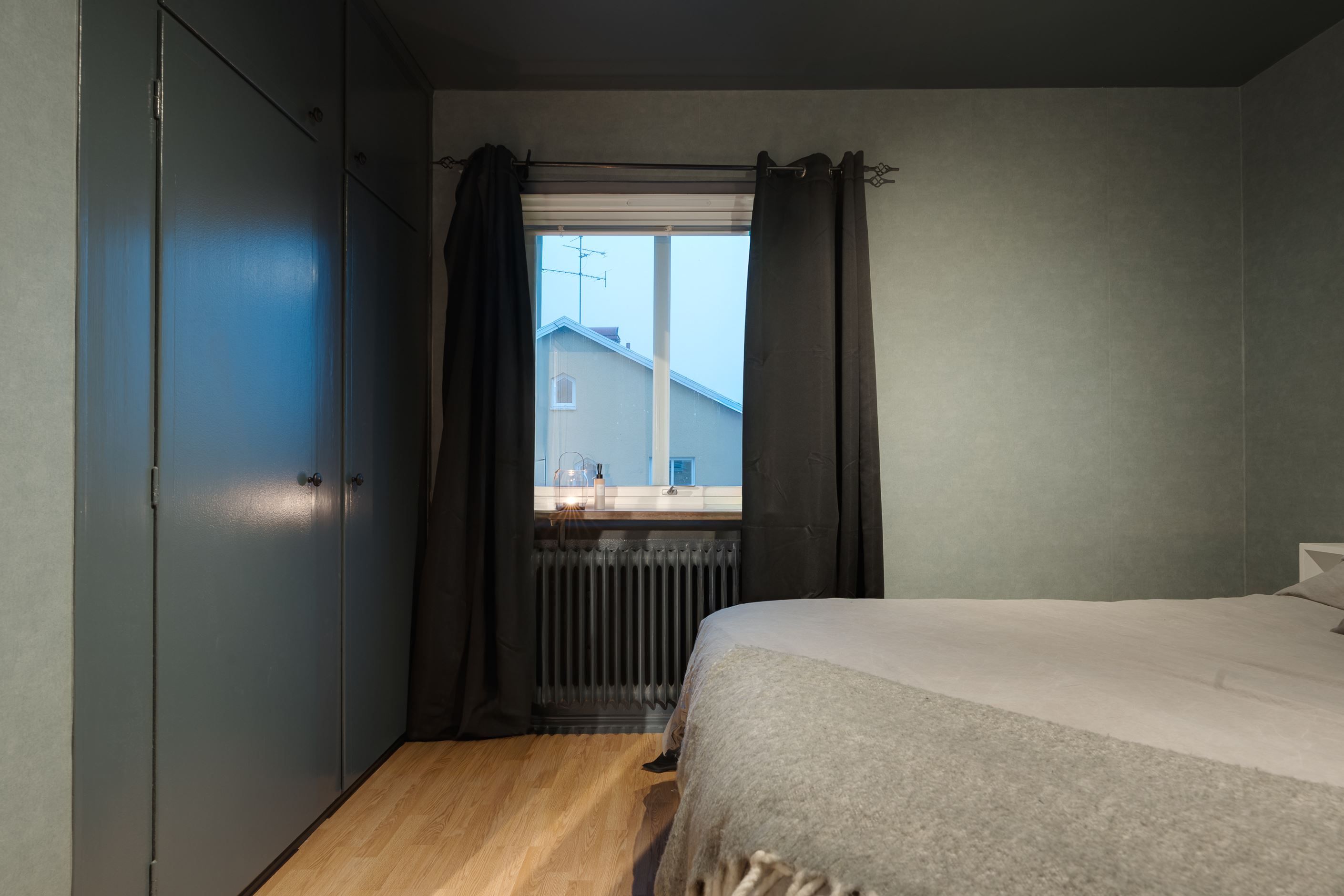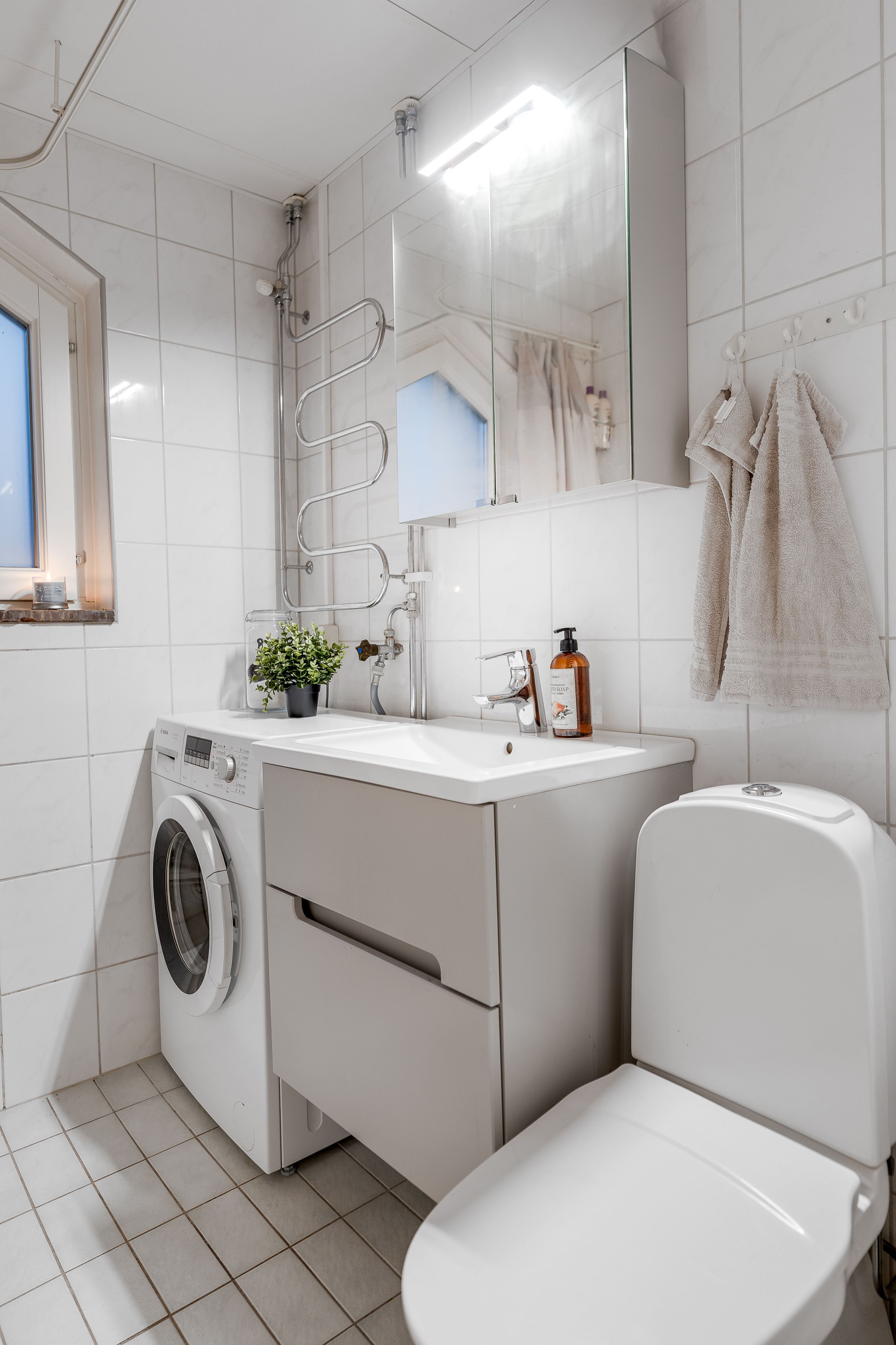 Badrummet är helkaklat i tidlös vit ton och utrustat med dusch samt tvättmaskin för extra bekvämlighet. Sovrummet är en rogivande oas med nymålade väggar och garderobsdörrar – en harmonisk miljö som bjuder in till återhämtning och god natts sömn.