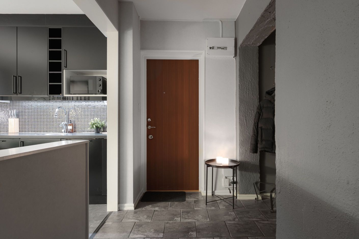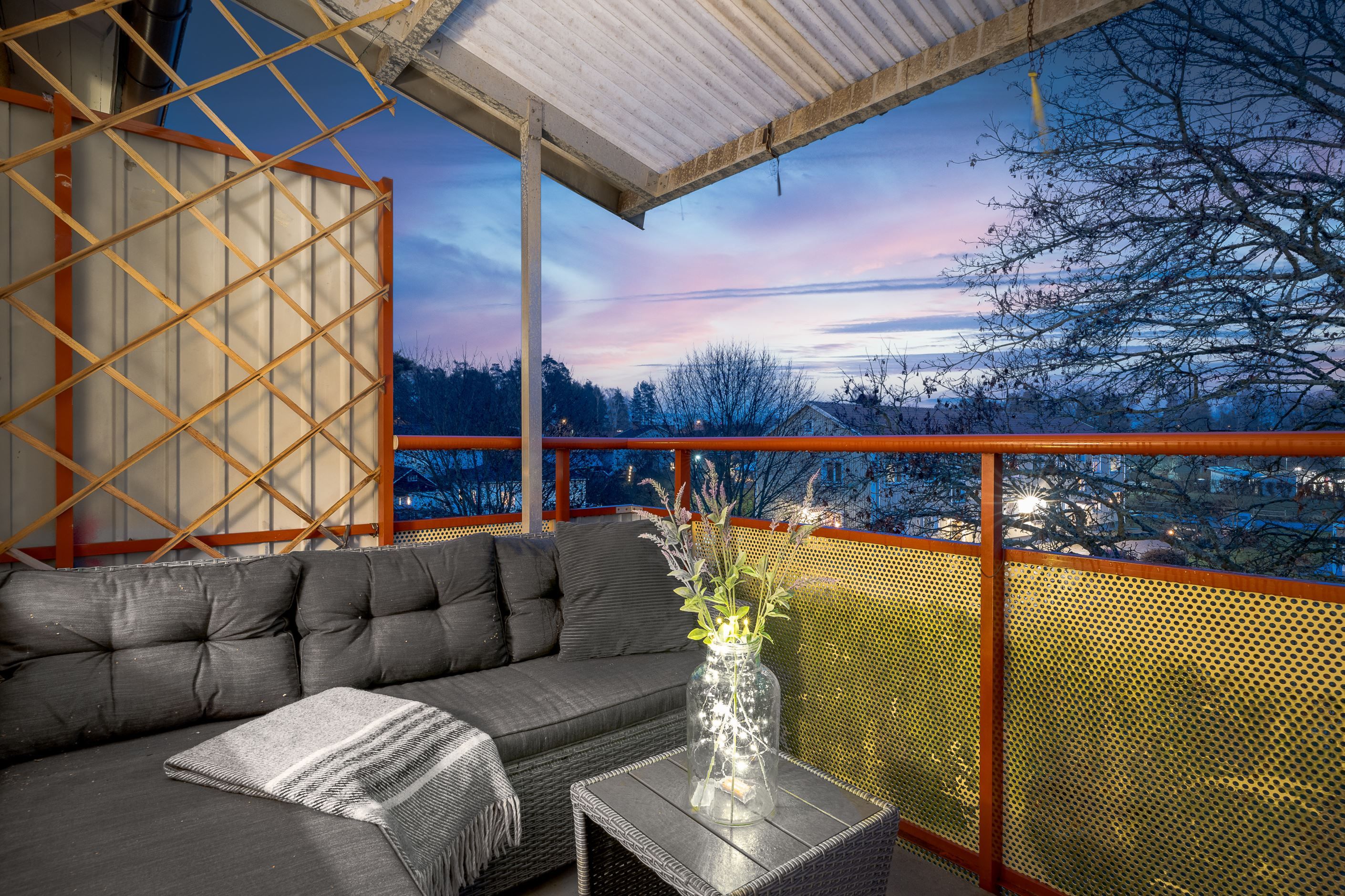 På lugn och trevlig adress finner du denna stilrena och välplanerade tvåa med renoverade ytskikt och ett fantastiskt läge högst upp i huset med stor generös balkong som vetter mot söder.