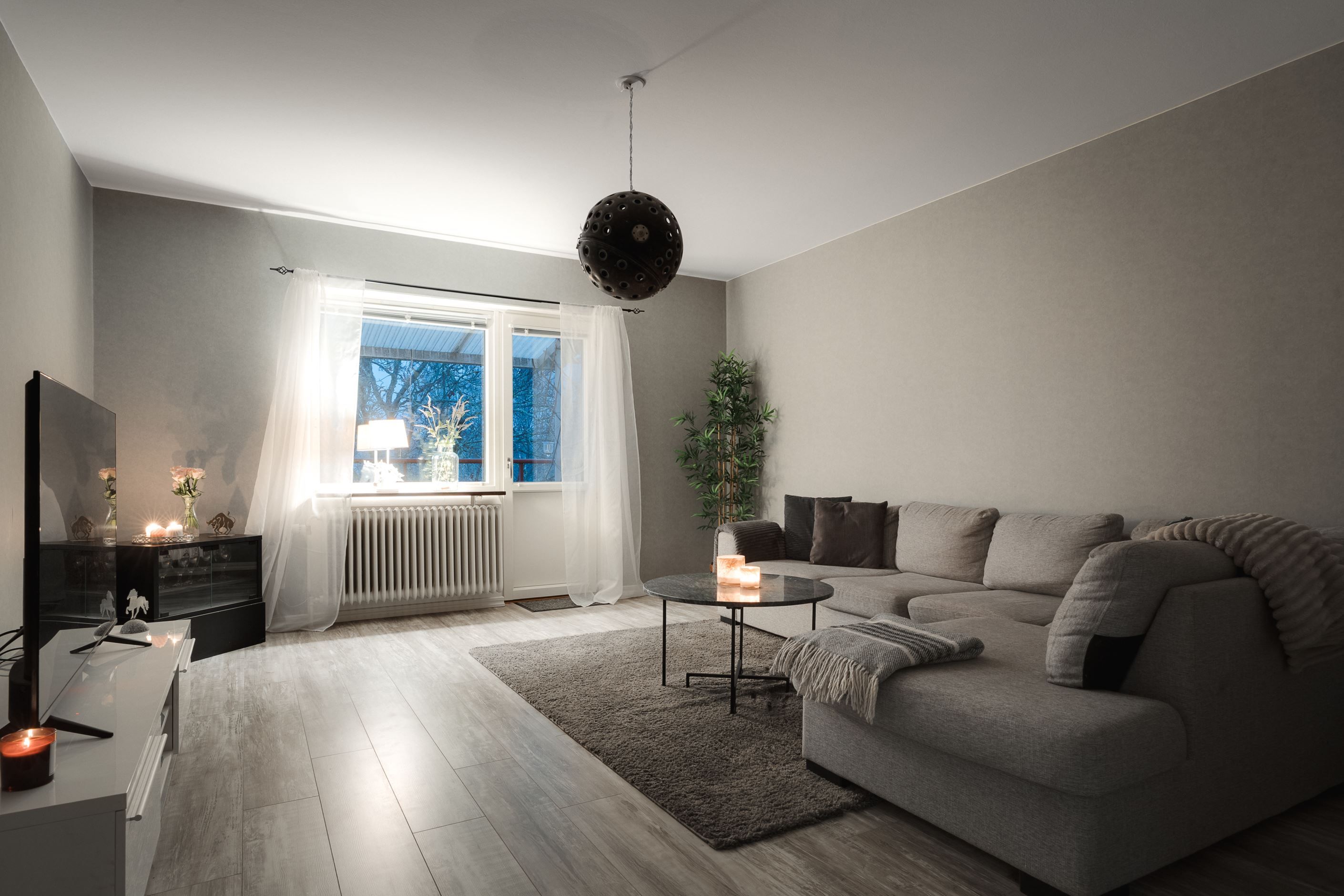 Det luftiga vardagsrummet har en öppen och trivsam planlösning med direkt utgång till balkongen, vilket skapar ett härligt ljusinsläpp och en naturlig förlängning av bostaden. Här finns gott om plats för både soffgrupp och umgänge med familj och vänner.