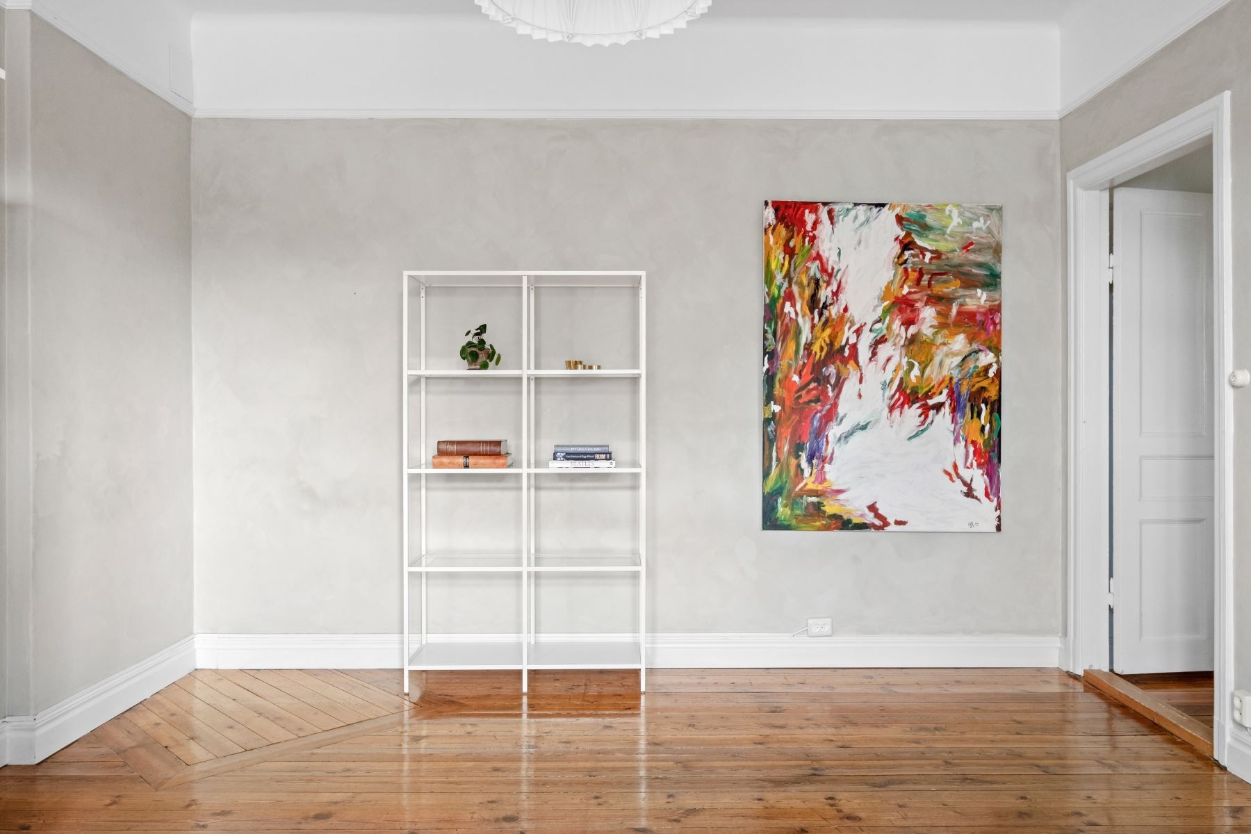 - Väl tilltagen takhöjd med välbevarat fint trägolv.