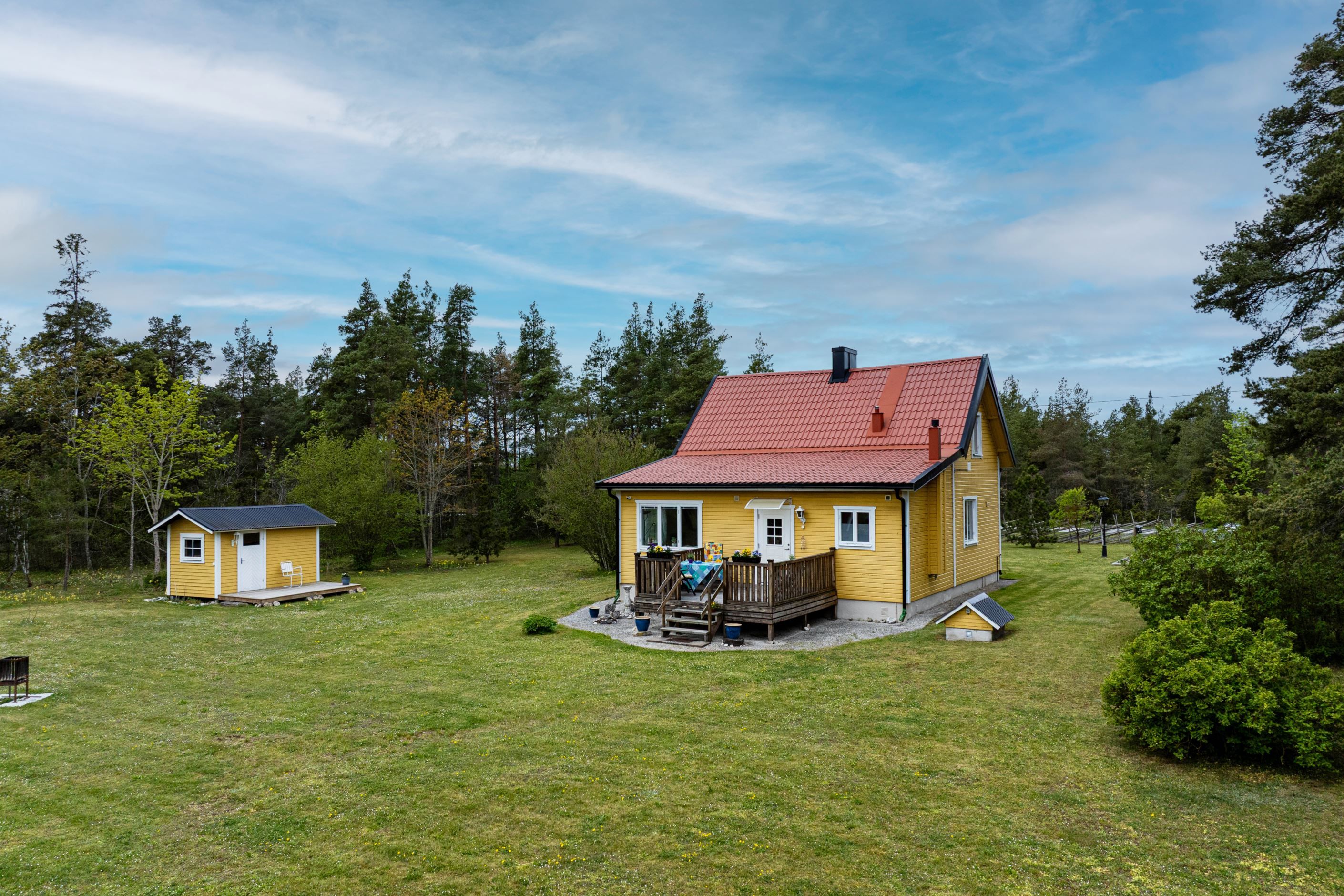 På tomten finns även ett välutrustat gästhus med inglasad altan som blir ett riktigt trevligt tillskott för gäster, generationsboende eller uthyrning. Invändigt finns en stor hall, ett rymligt kök från IKEA med generös matplats, stort sällskapsrum med plats för både soffgrupp och TV-hörna samt ett badrum med duschkabin, toalett, kommod och tvättmaskin. På övre plan finns ytterligare sovrum och en möblerbar hall.