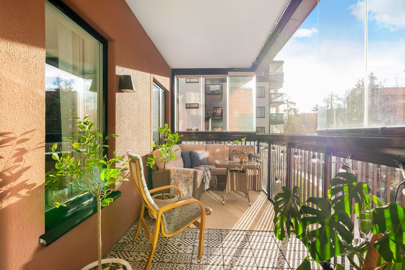 Stilren och välplanerad fyra med underbar samt inglasad balkong om 11 kvm i sydvästläge