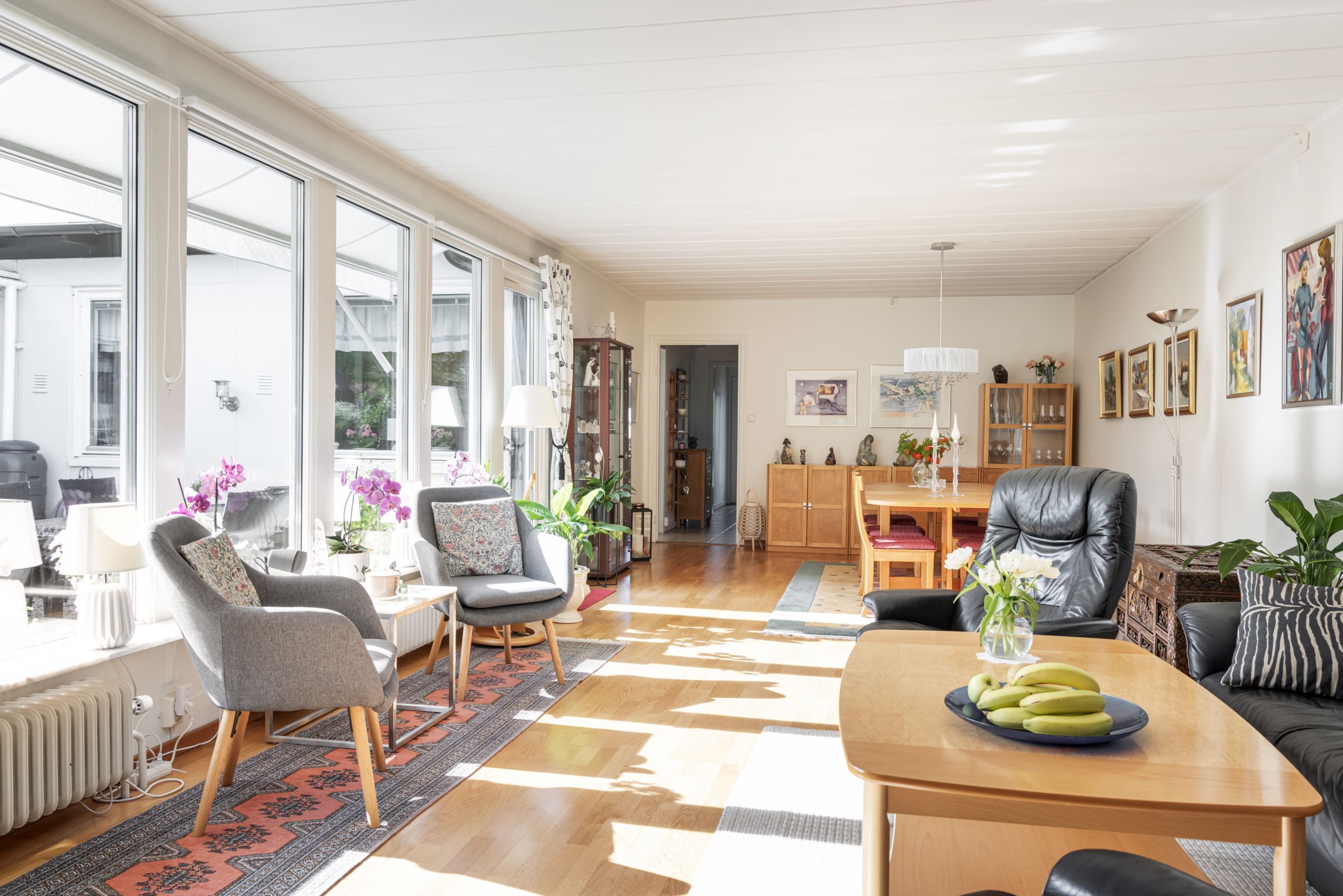 Fint och välskött enplanshus om cirka 120 kvm med mysigt trädgård i söderläge! Planlösningen består idag av ett stort vardagsrum, ett trivsamt kök med matplats och för den som önskar finns här fyra rum som alla kan användas som sovrum. I huset finns också ett helkaklat badrum med dusch och såväl ett integrerat garage som ett mysigt uterum mot trädgårdssidan. Beläget på lugnt och trevlig läge mitt i Gullviks villakvarter!