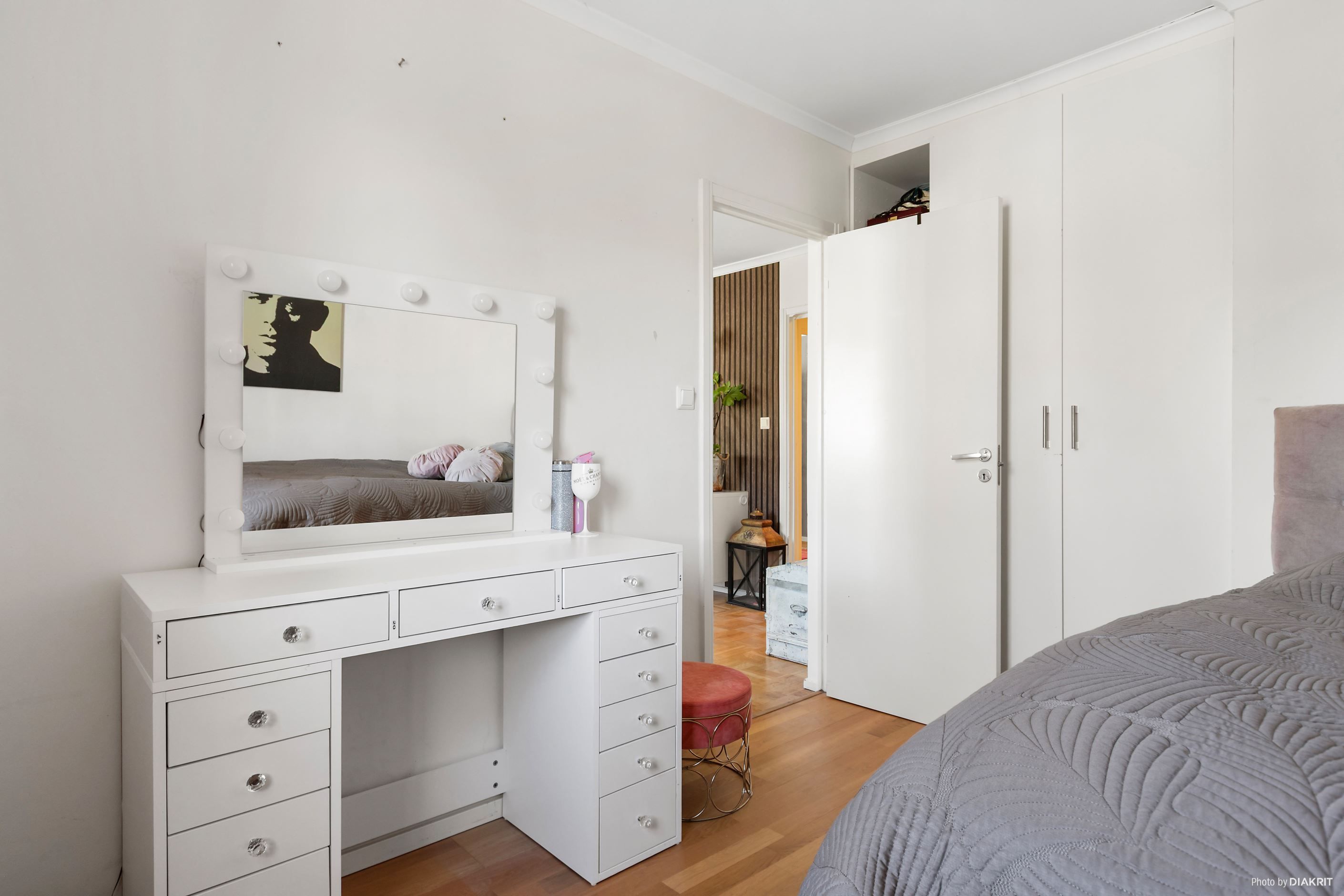 Lägenheten har tre sovrum med stora fönster, varav två av sovrummen har plats för dubbelsäng och flertalet garderober. Sovrummen har fint ytskikt med parkettgolv och ljusa väggar. Från ett av sovrummen finns även utgång till balkong.