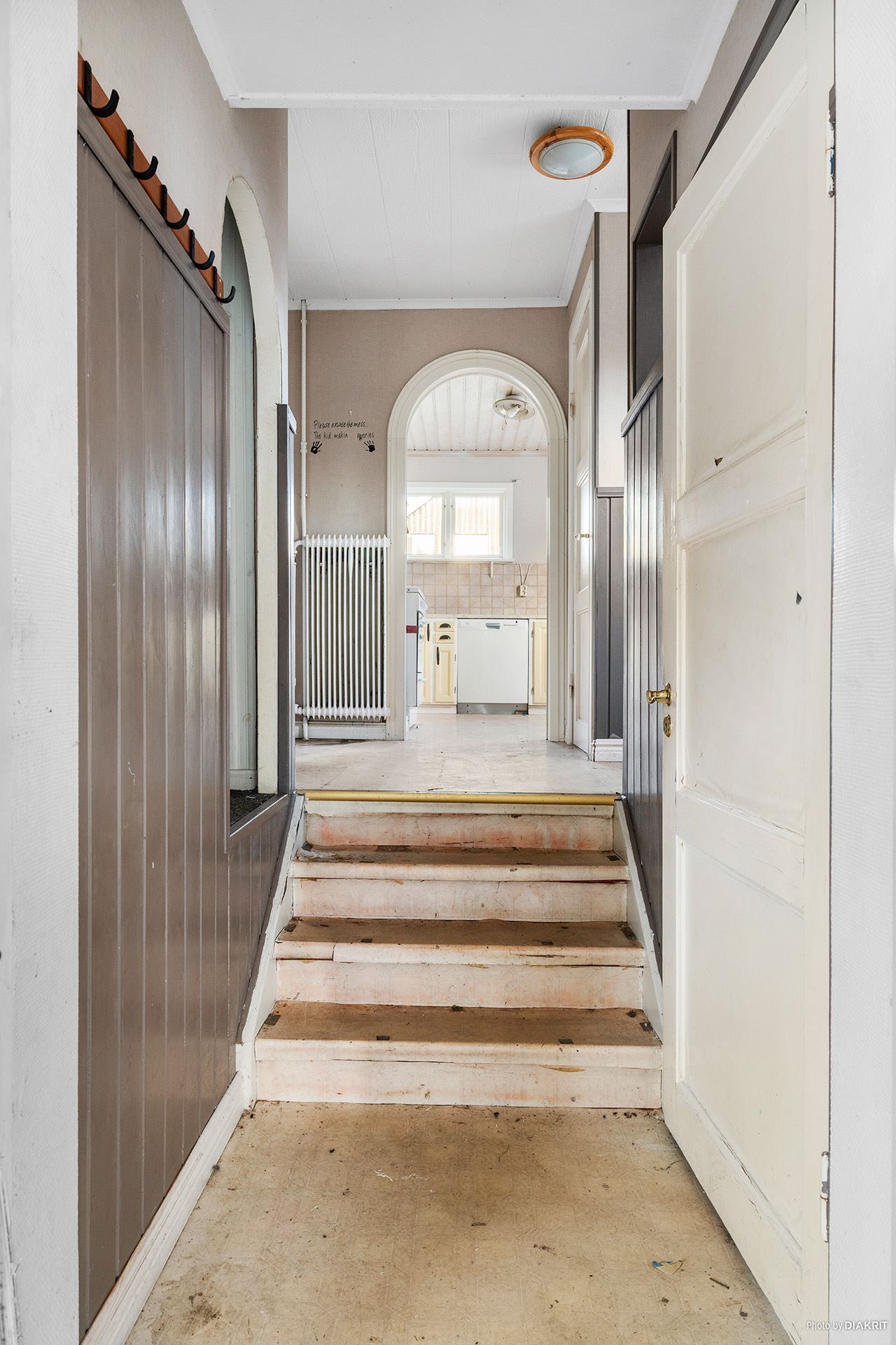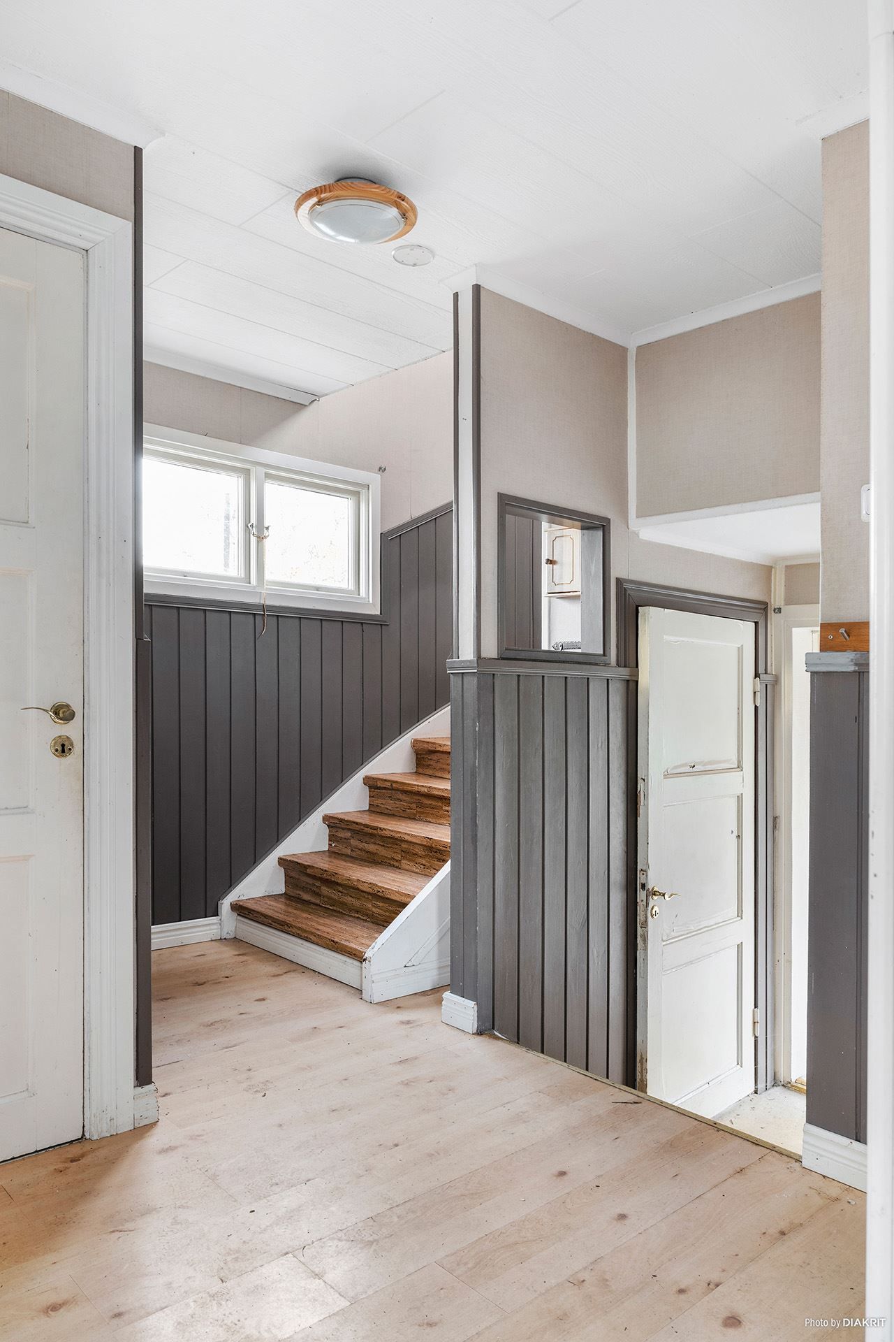 En trappa upp väntar två sovrum, möblerbar hall och bra förvaringsmöjligheter. Vid entrén finns dessutom ett uterum i fint läge – en självklar samlingsplats under stora delar av året.