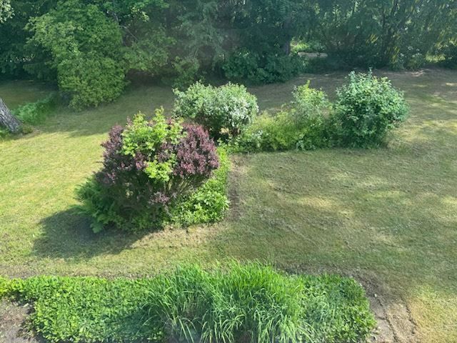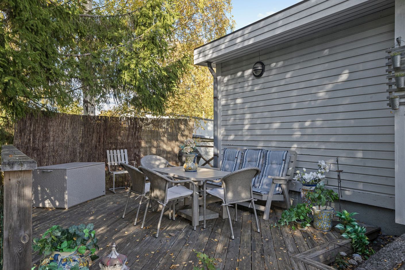Trädgården är barnvänlig och lummig med plats för studsmatta, lek och avkoppling. På baksidan finns en uteplats med potential för att bli en riktigt härlig oas, medan framsidan erbjuder en stenlagd, insynsskyddad sittplats – idealisk för lugna stunder. Garage och uppfart med plats för två bilar.