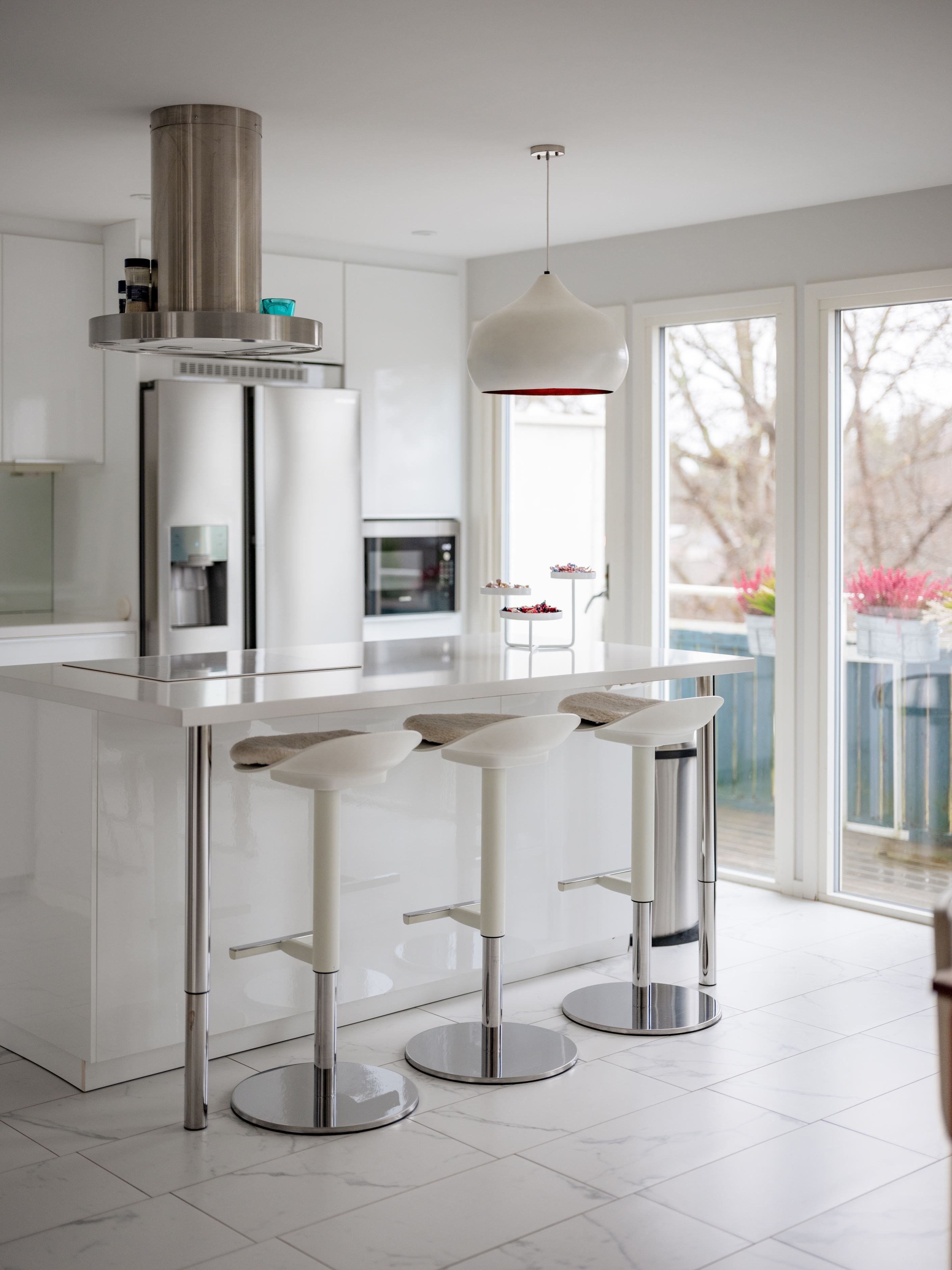 Entréplan: Det stora och öppna entréplanet bjuder på ljusa, luftiga ytor och en välkomnande känsla. Här finner ni en rymlig hall med gott om förvaring för ytterkläder och accessoarer. Det moderna och ljusa köket har mycket förvaring, bra med arbetsytor samt belysning i alla skåp. Här finns även en praktisk köksö, perfekt för både matlagning och social samvaro. Matplatsen samt vardagsrummet förenas i en öppen planlösning med köket. Här finns även en gästtoalett för extra bekvämlighet. Stora fönsterpartier som ger ett fint ljus in genom hela entéplanet.