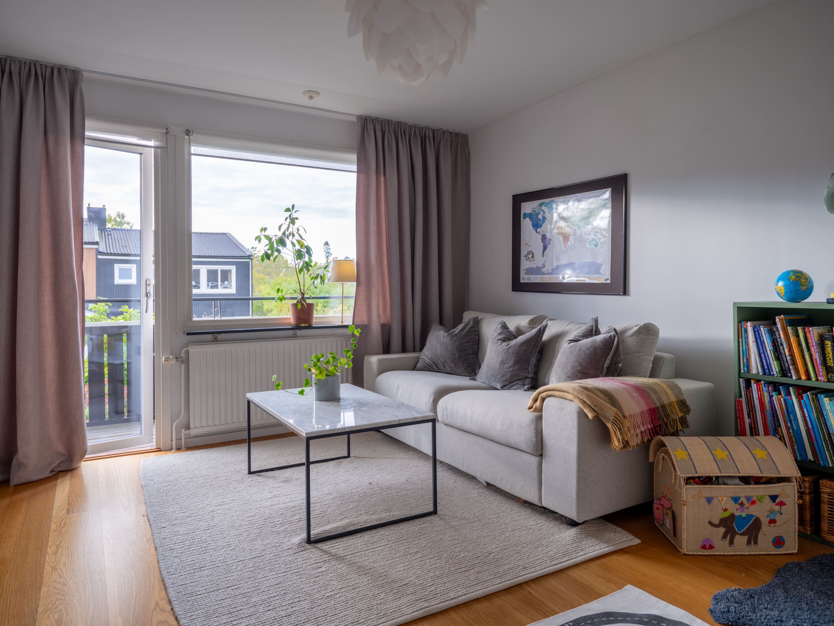 Här bor du i ett lugnt och trevligt område med närhet till allt du behöver i vardagen.