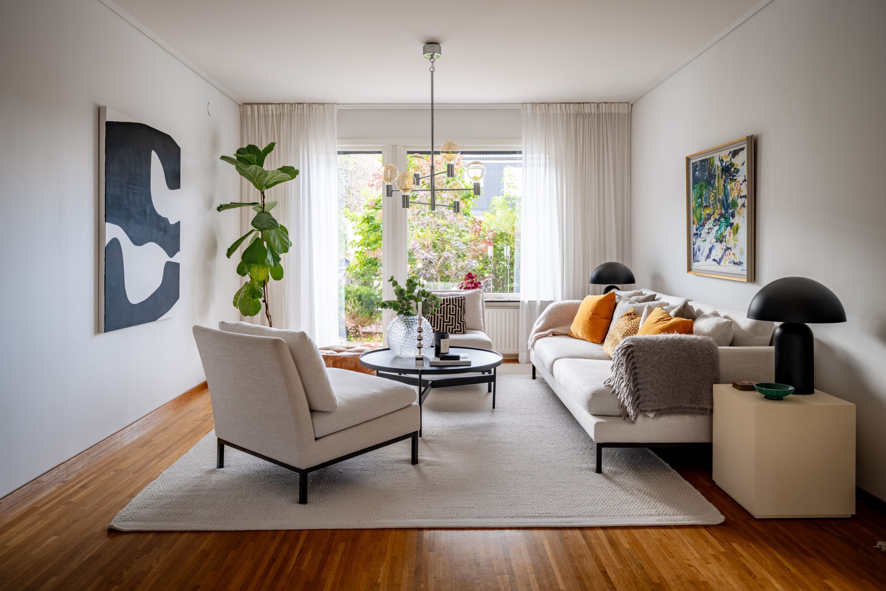 Välkommen till detta trivsamma och smart planerade radhus – perfekt för barnfamiljen eller för dig som vill skala ner från det stora huset.
