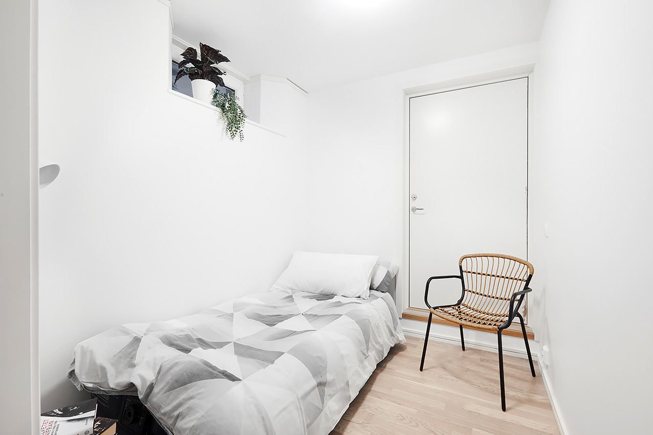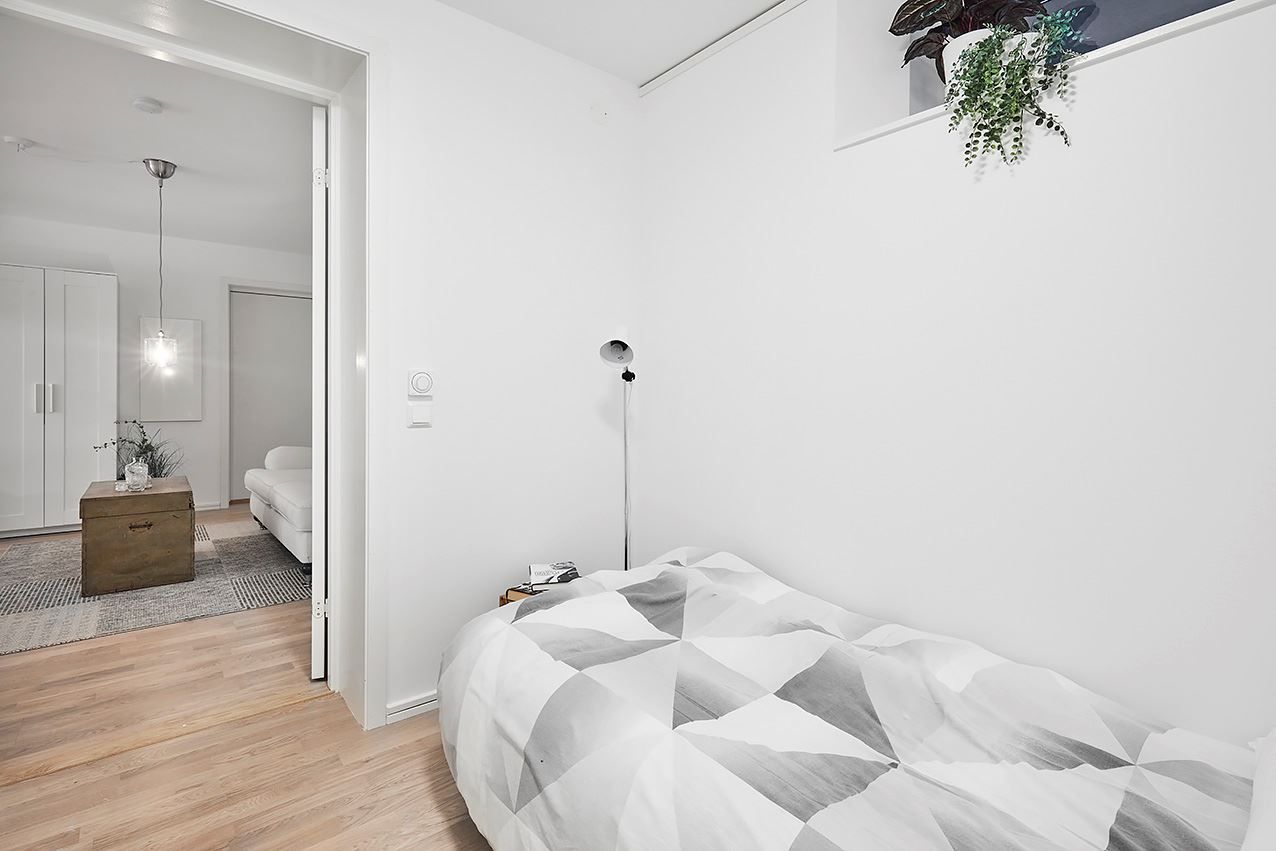 Intill bostadens rum ligger ett avskilt sovrum med plats för säng. Perfekt att kunna skärma av.