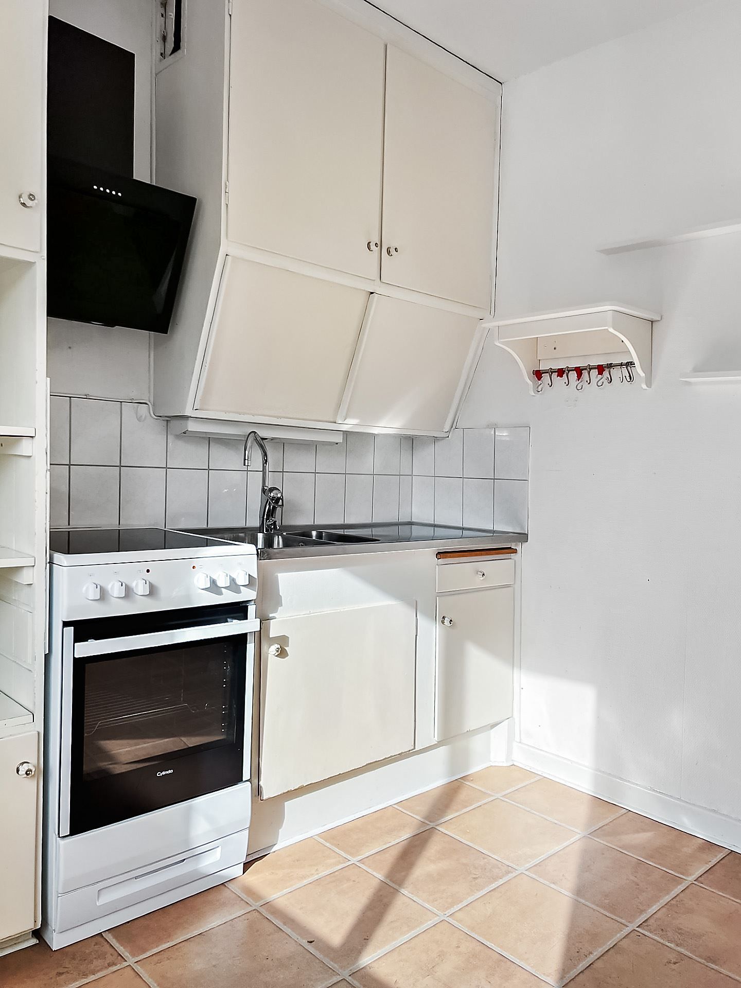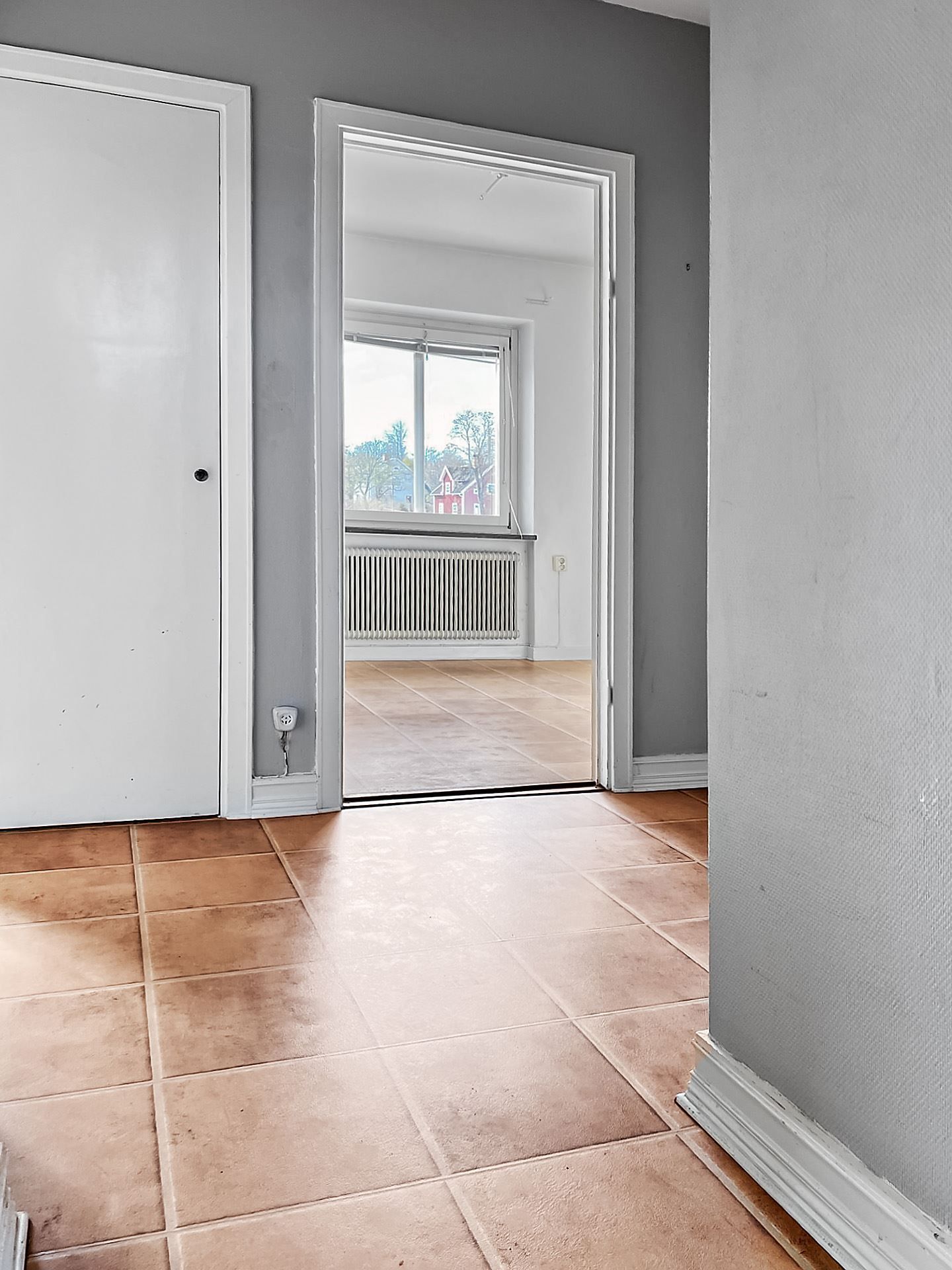 Lägenheten har en yteffektiv planlösning och erbjuder ett riktigt kök med plats för ett matbord, helkaklat badrum och ett rymligt rum där du får plats med både säng och soffa. Dessutom tillhör hela två förråd, vilket ger extra bra förvaringsmöjligheter.