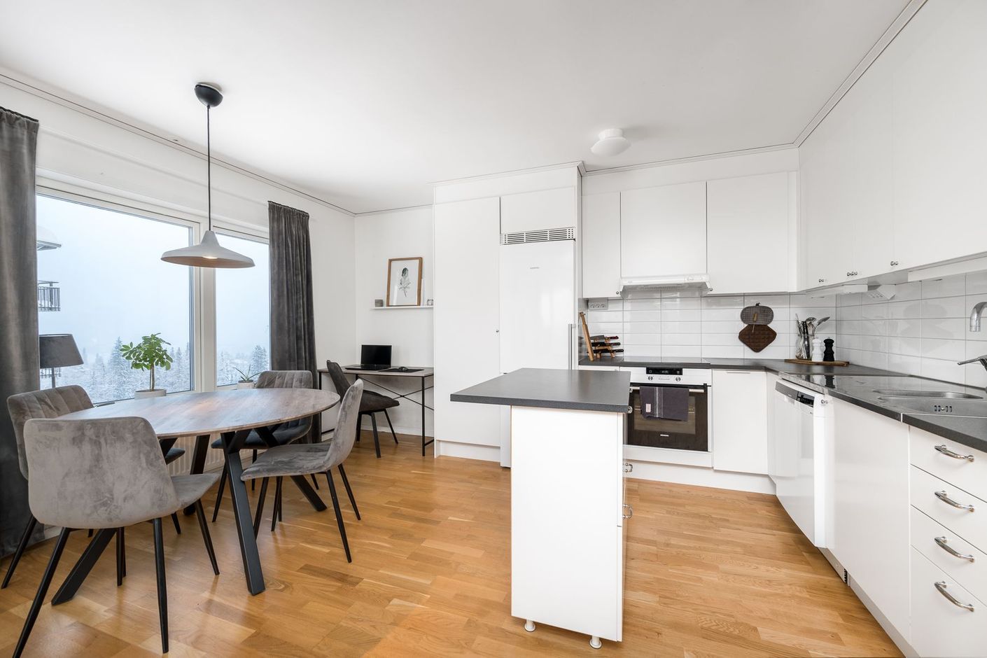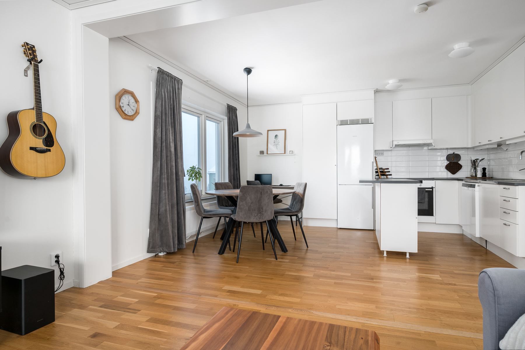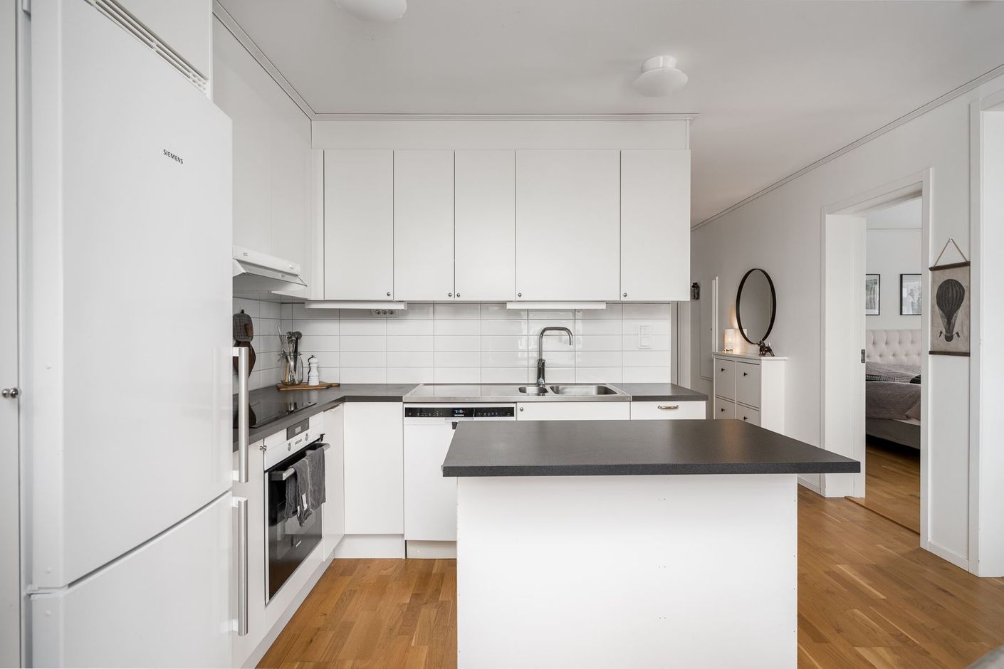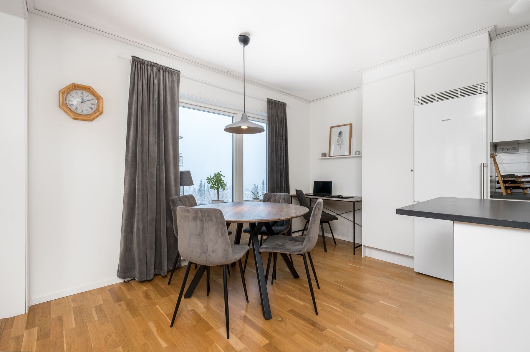 Välkommen till en trivsam 2:a belägen högst upp i huset! Ljus och välplanerad bostad i fint skick med moderna val i ett naturnära läge. Bostaden disponerar allrum och kök i öppen planlösning. Balkong med magisk utsikt mot Dundret. Vinkelkök som kompletteras med en köksö. Badrum med klinker på väggar, utrustat med bland annat en kombinerad tvättmaskin och torktumlare. Samt ett sovrum med förvaring via garderober.