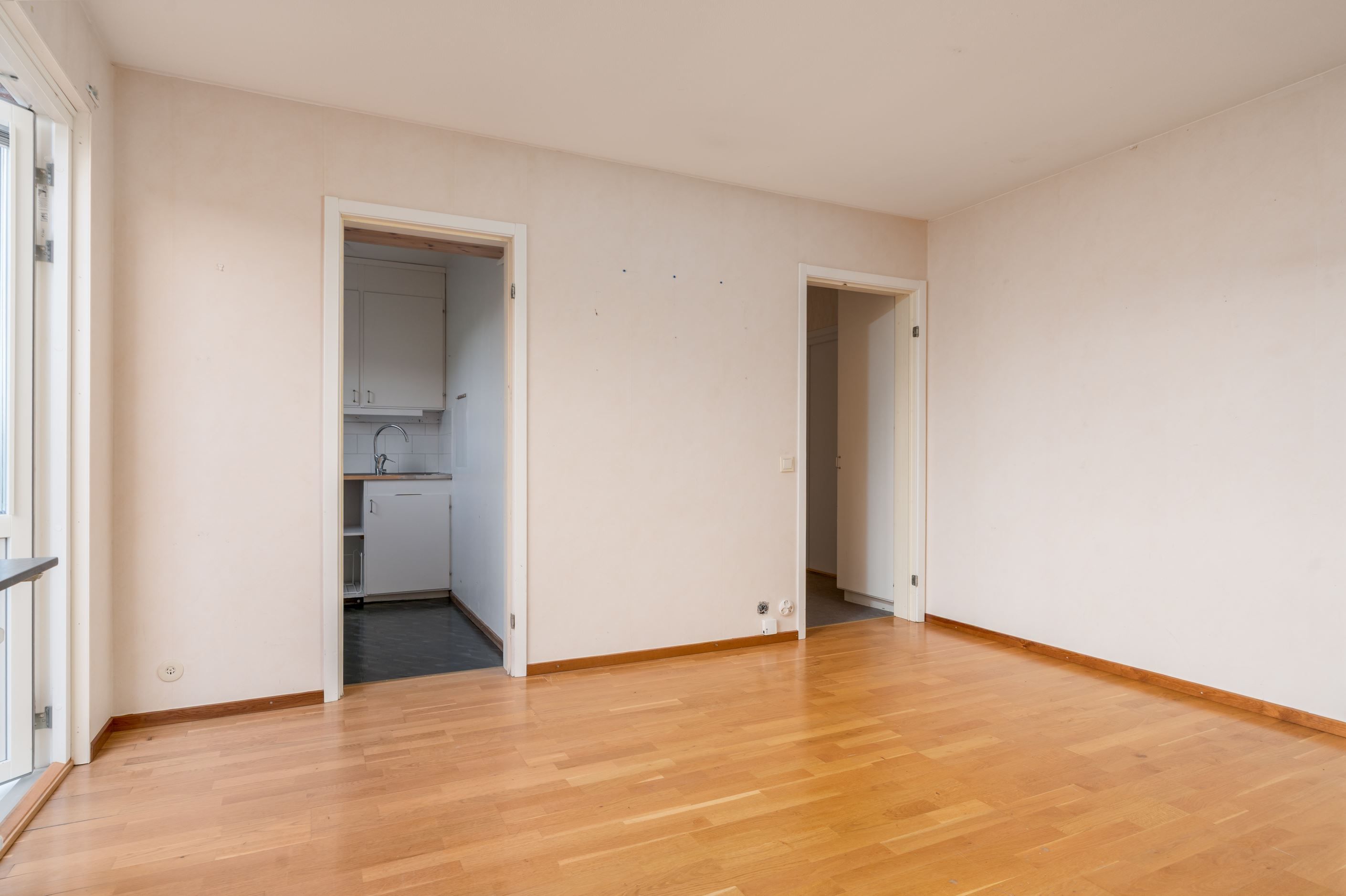 Bra planlösning med integrerat rum och kokvrå – väl utnyttjad yta som känns större än den är. Uteplats skapar härlig rymd och ljus.
