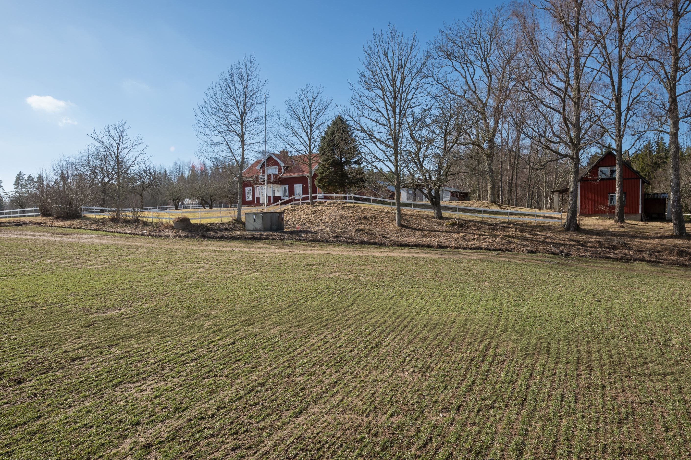 Grenen 1 - Ligger beläget ca 9 km norr om Habo och 24 km från Jönköpings centrum. Fastigheten om totalt ca 18 Hektar, fördelat enligt följande. Impediment 1 ha, skog 6 ha, åker 10 ha, övrigt 1 ha. Boningshuset 1½ plansvilla med byggår 1909 om 180 kvm och 5 rum och kök. Därtill enklare gäststuga, fristående garage samt ekonomibyggnad. Fastigheten har generellt sett enkel standard och det finns absolut utrymme för modernisering och förbättringar som på så sätt kan skapa en perfekt kombination av funktionalitet och de äldre detaljernas tydliga charm.