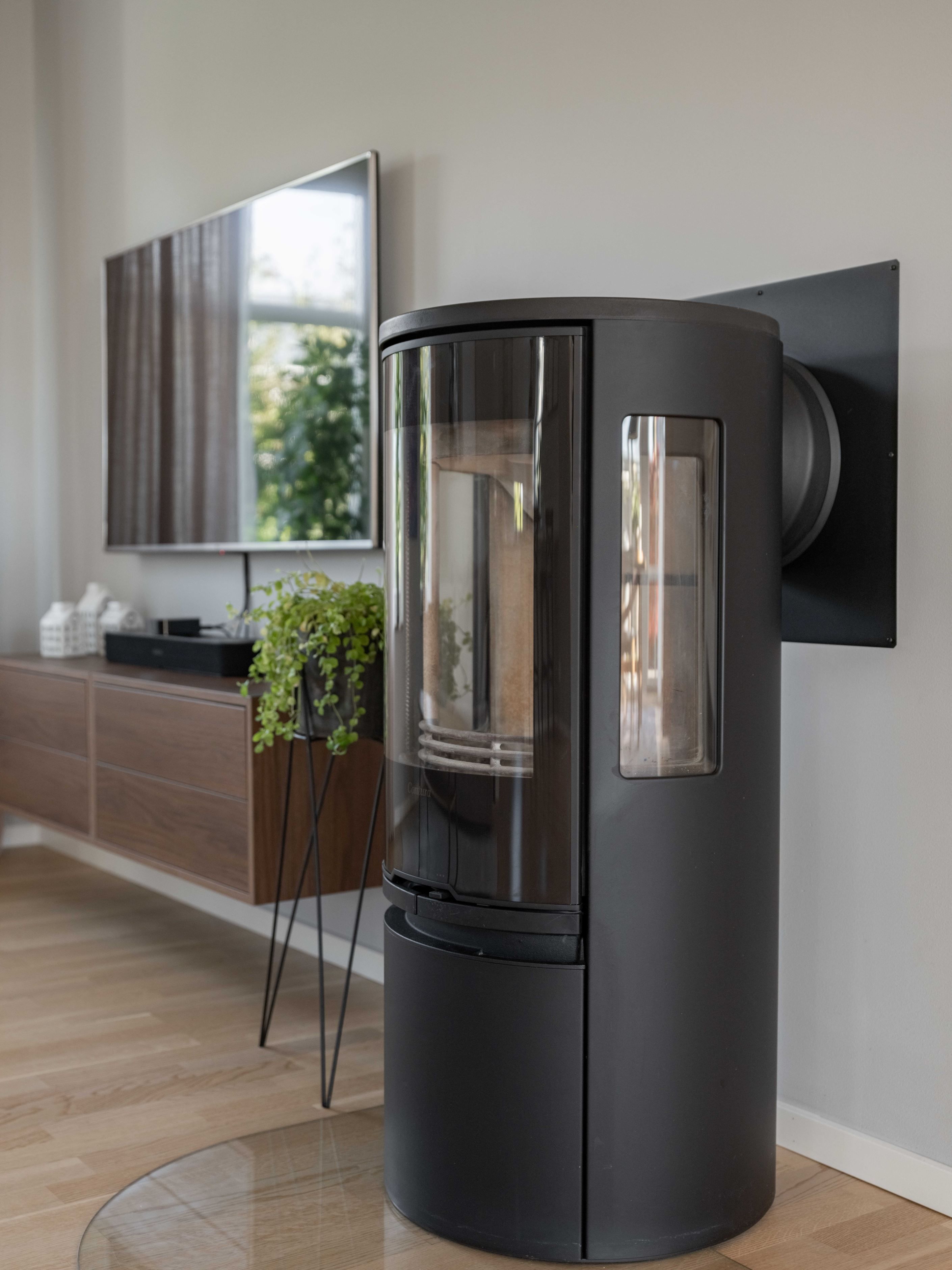 Invändigt öppnar huset upp sig med en planlösning som bara känns… rätt. Ljuset flödar genom stora fönster, och det rymliga köket är en självklar samlingsplats. Här lagas det middagar, tjuvsmakas på såser och skålas i glas, allt i öppen kontakt med både matplats och vardagsrum.