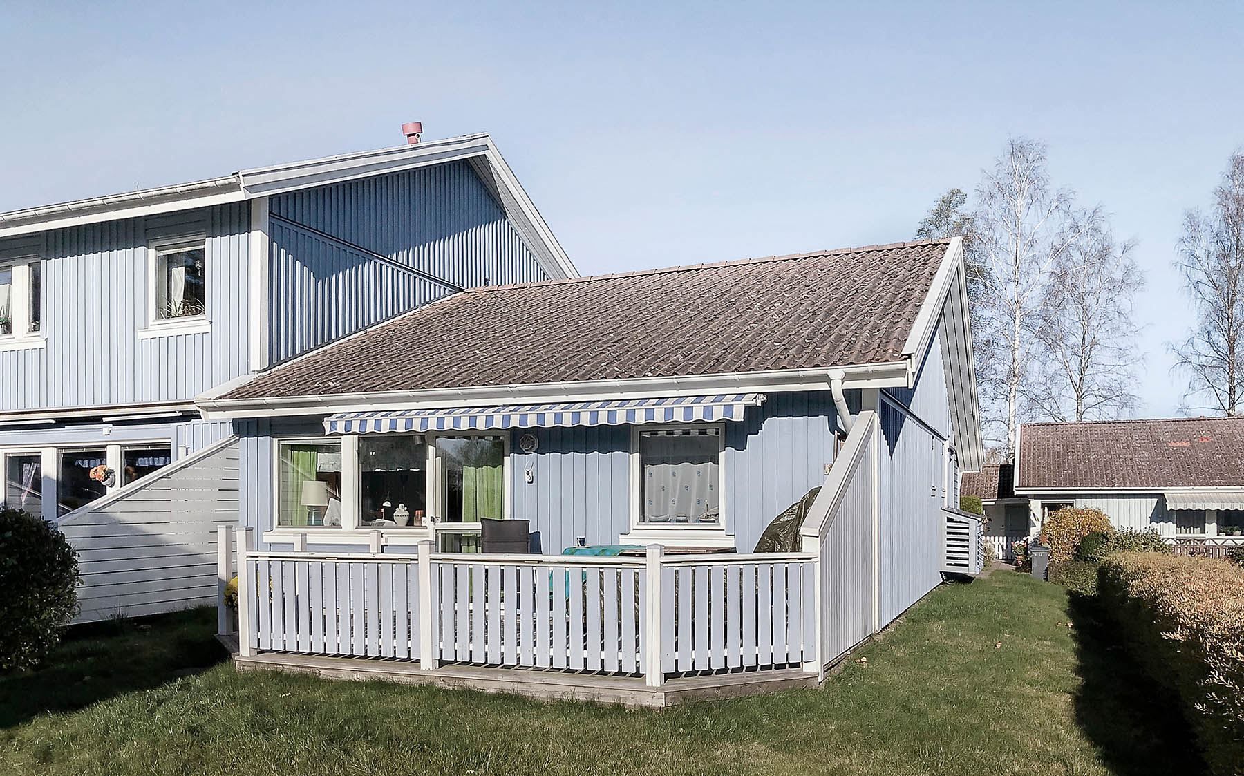 Välkomna till ett mycket trivsamt boende. Ett gavelradhus i ett plan med generöst tilltagen altan med plats för såväl matgrupp som solsängar. Välkomnande stenlagd entré med plats för fikagrupp. Fint läge i föreningen med närhet till såväl parkering som garage och med kort avstånd till härliga promenadstråk i skogen intill. Ett mycket trivsamt och bekvämt boende i omtyckta och trevliga Brf Grinden.