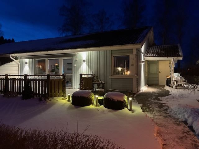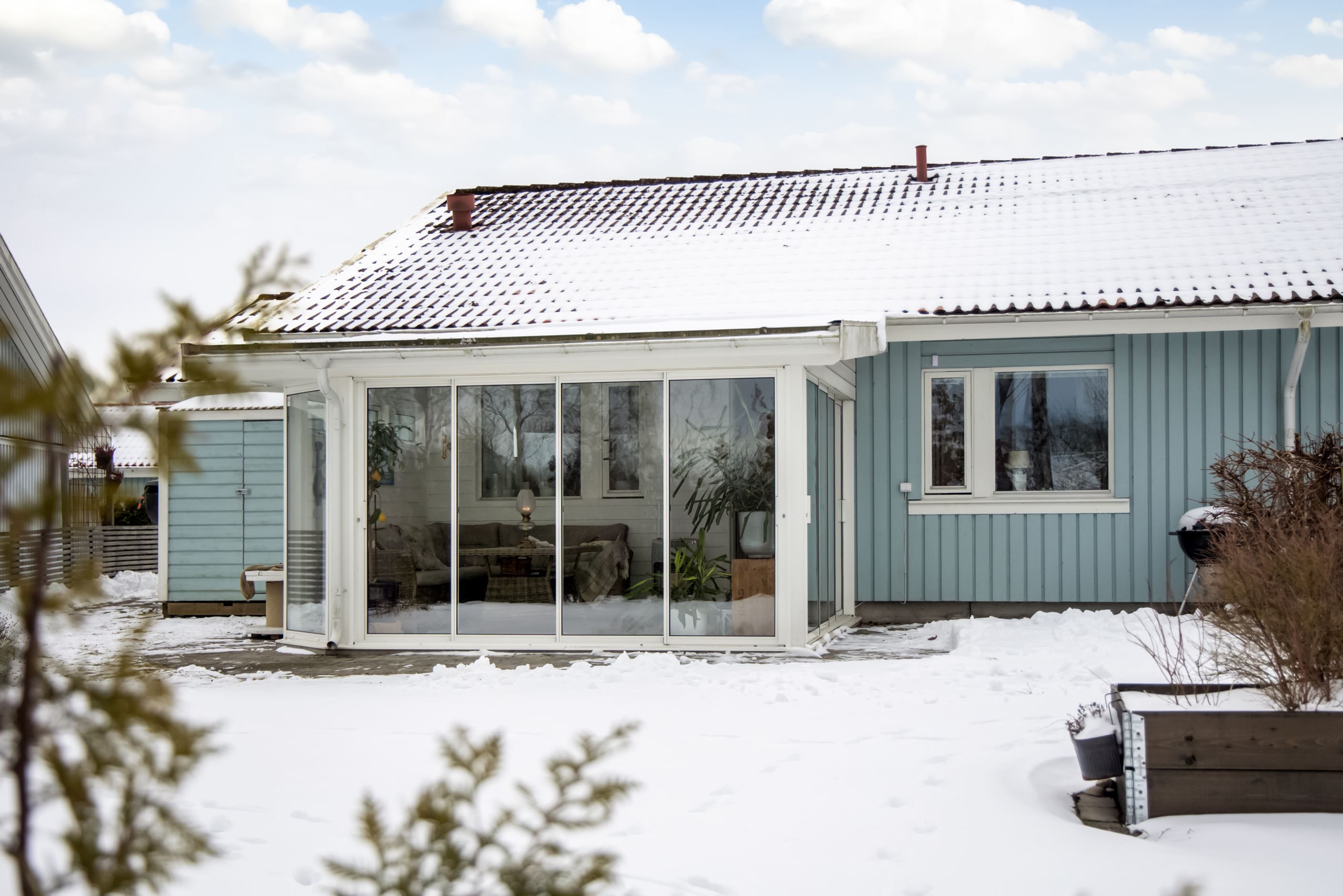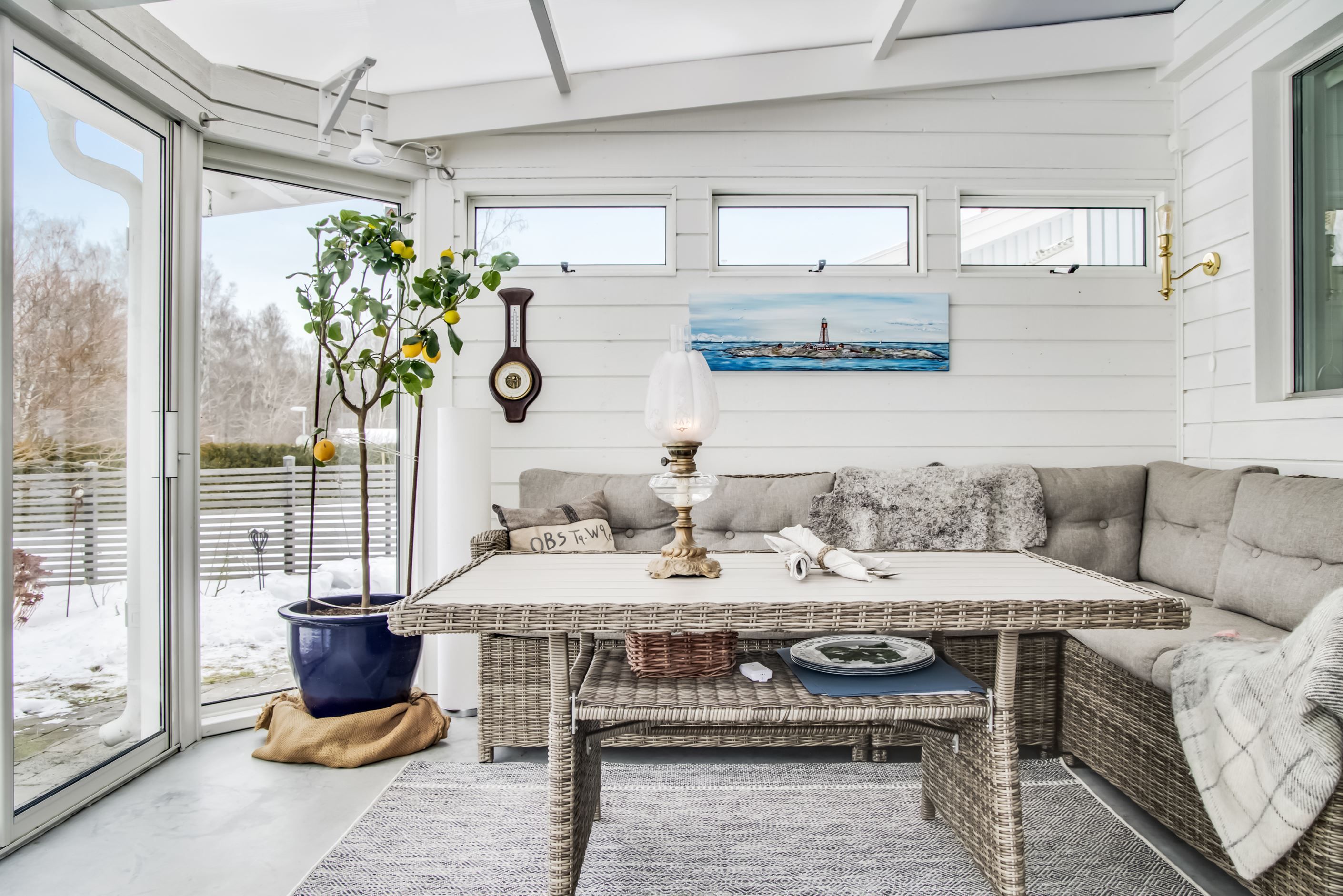 Bostaden har bland annat ett stort härligt uterum, mysiga uteplatser, en omhändertagen trädgård och garageplats i länga.