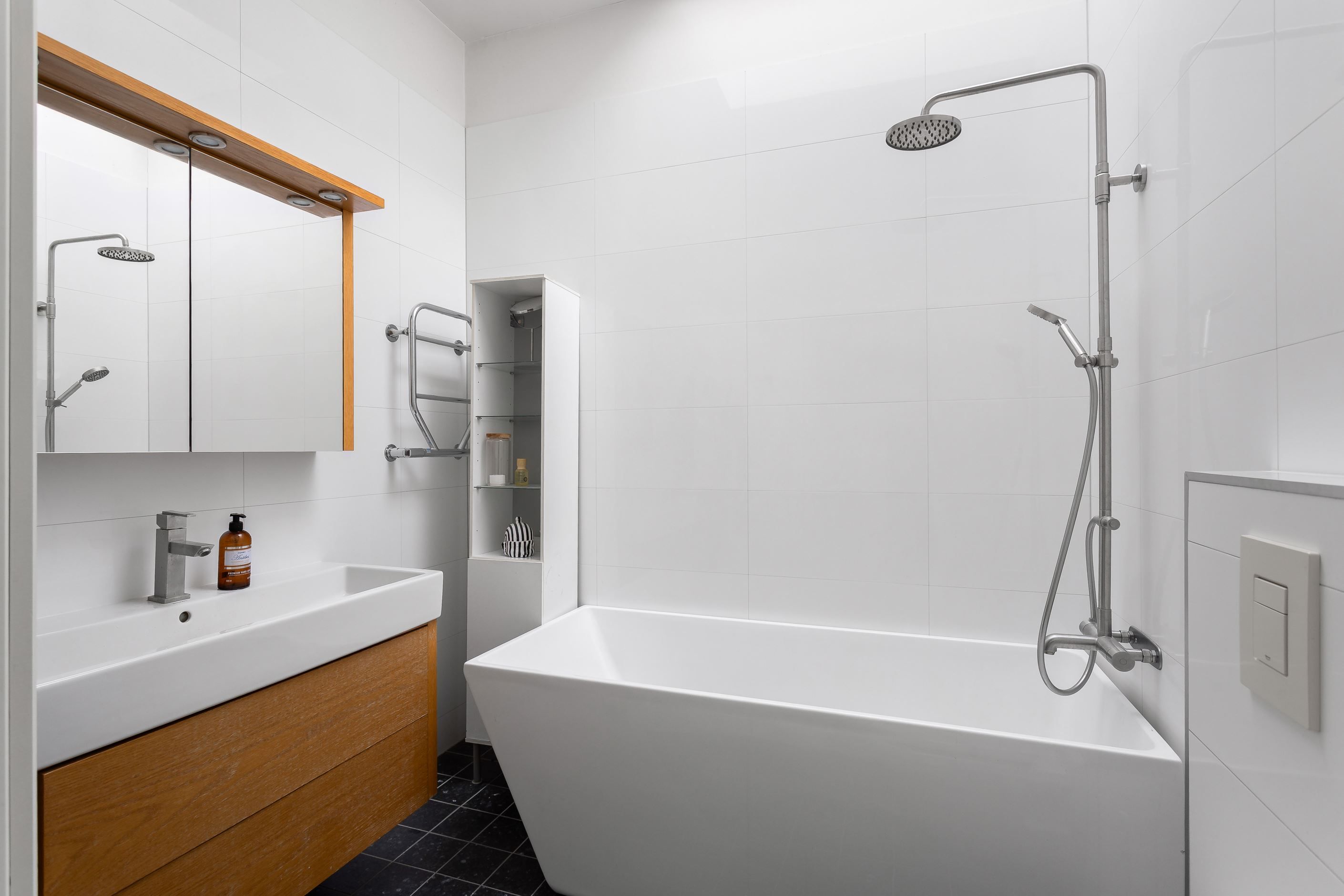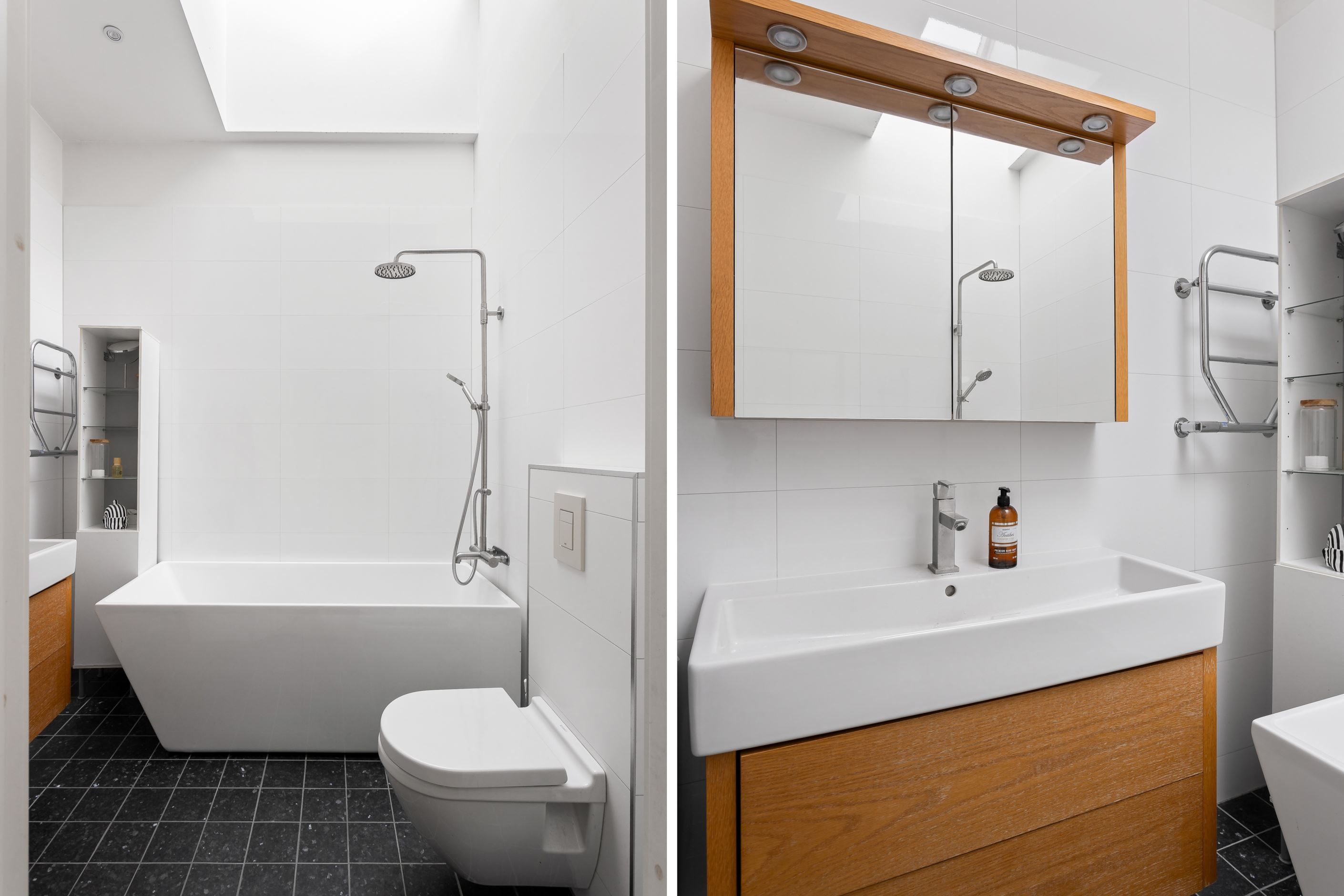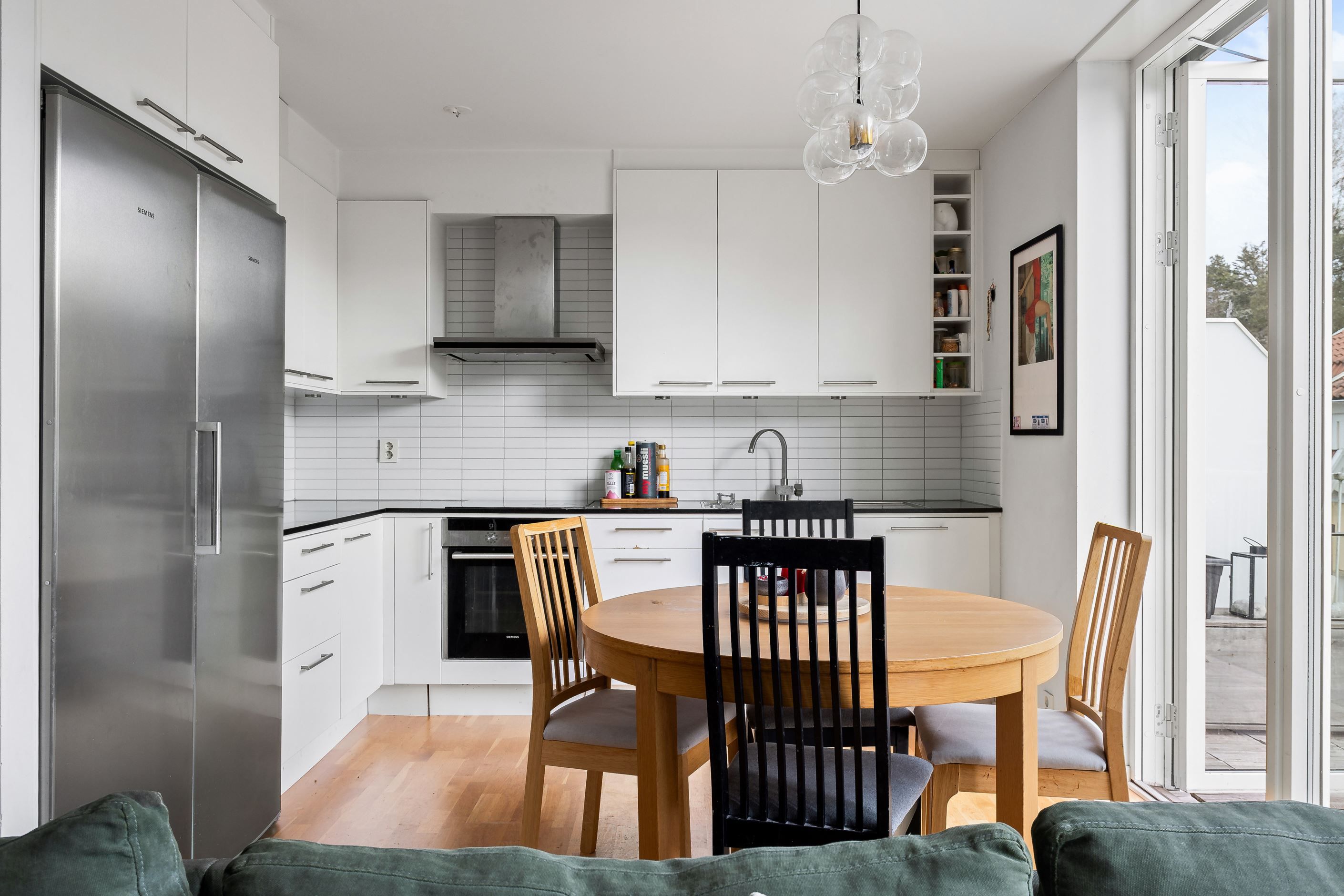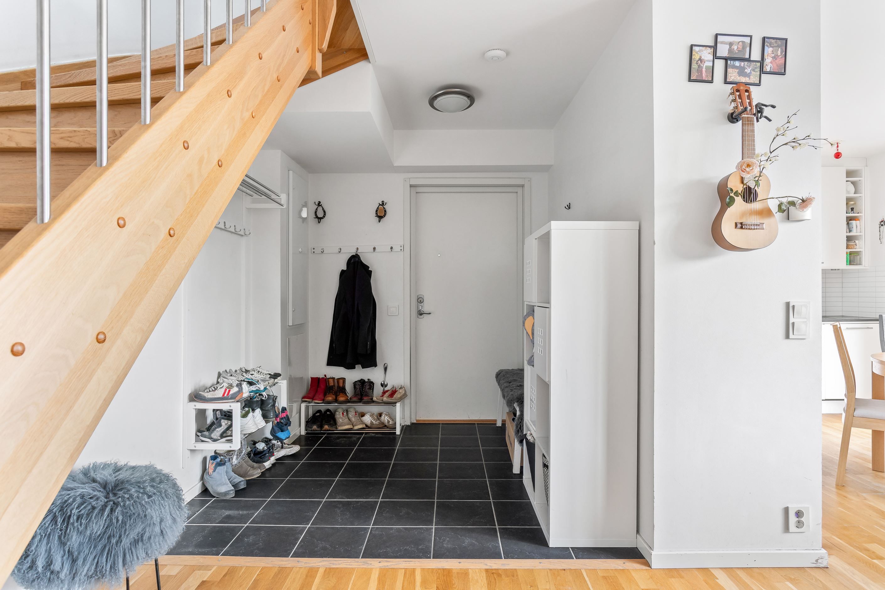 Här presenteras en unik etagelägenhet, ritad av Thomas Sandell Arkitektbyrå, med ett fantastiskt ljusinsläpp från generösa fönsterpartier. Den rymliga balkongen sträcker sig längs hela sällskapsytan och erbjuder sol från tidig morgon till sen eftermiddag. Bostaden har en öppen planlösning där vardagsrum och kök samspelar, med badrum och ett sovrum på nedre plan samt tre sovrum och ytterligare ett badrum på övre plan. Genomgående ljusa färgval kombineras med betsade trägolv som skapar en stilren och harmonisk känsla.