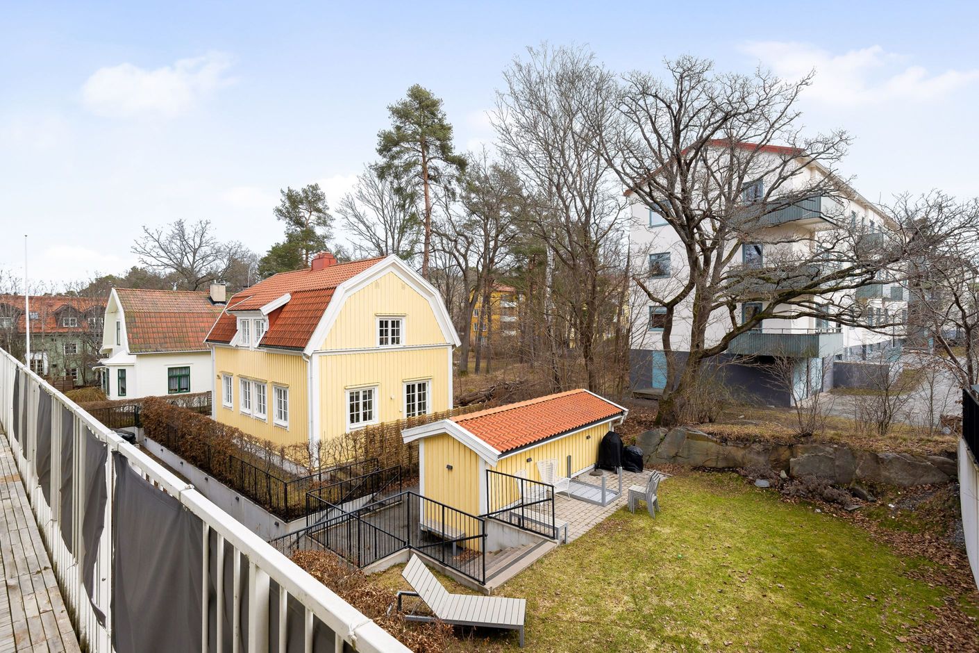 Bostaden är belägen på en grönskande och stillsam villagata med närhet till Mälaren.