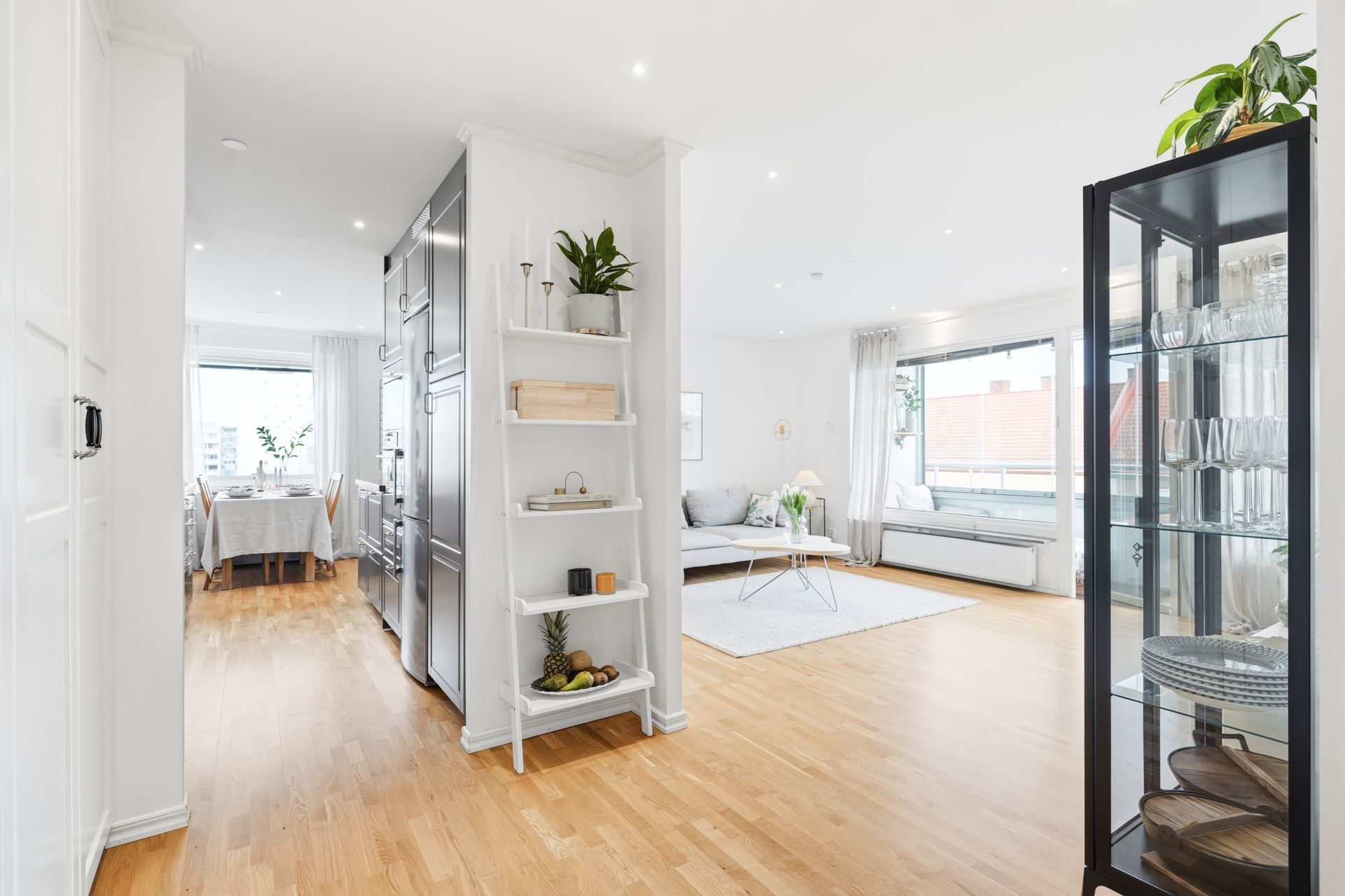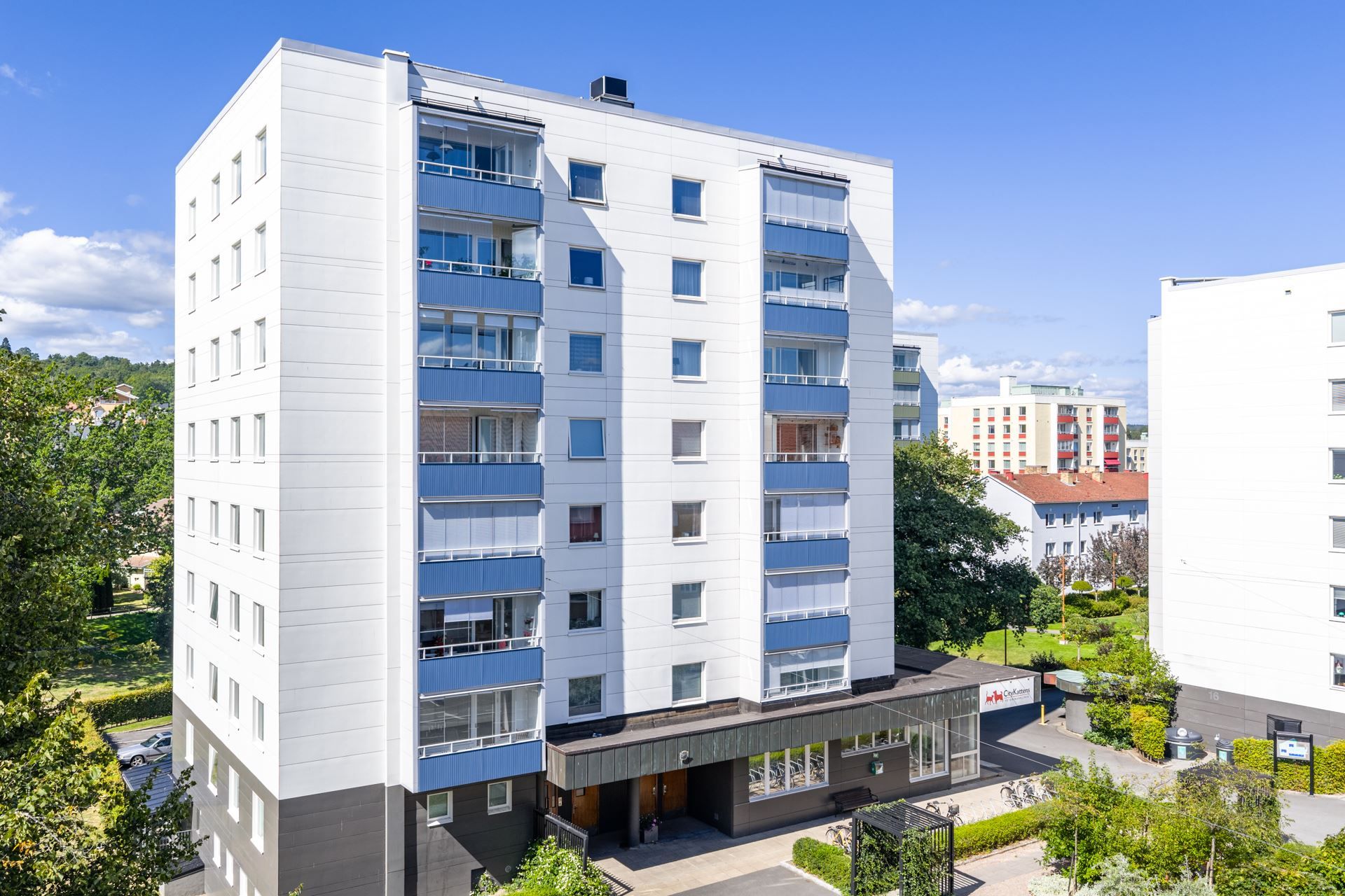 Här bor du högt upp i huset med ett insynsskyddat läge och en härlig utsikt över takåsar och omgivningar. Bostaden erbjuder en perfekt balans mellan stadsliv och grönska, med Friadalen som närmsta granne och stadens serviceutbud inom bekvämt gångavstånd.