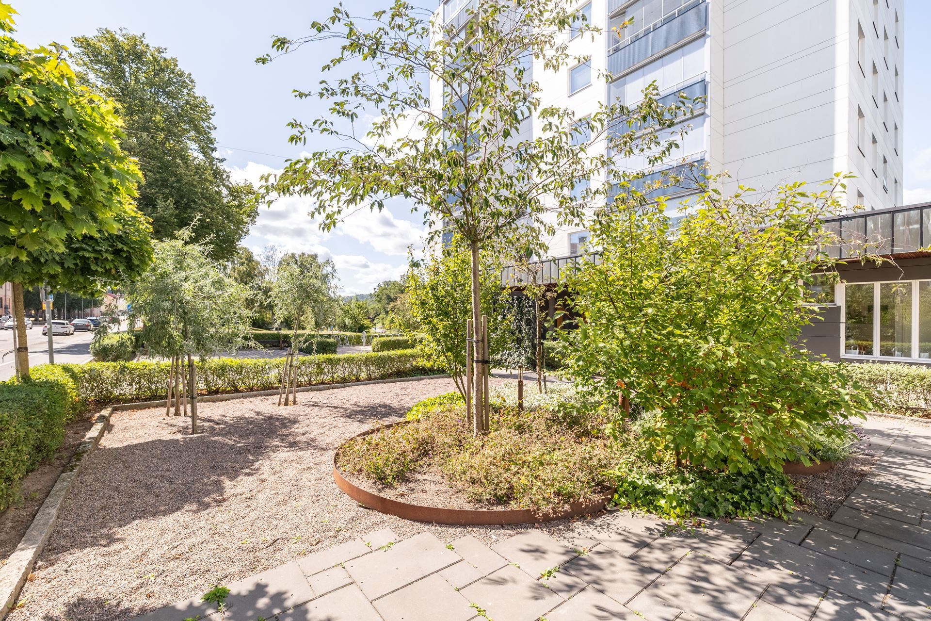 Läget är svårslaget – med matbutiker, caféer, restauranger och service runt hörnet. Samtidigt har du Friadalens grönområden nära till hands för promenader och rekreation. Goda kommunikationer finns i området och du tar dig enkelt till Jönköpings city till fots, med cykel eller buss.