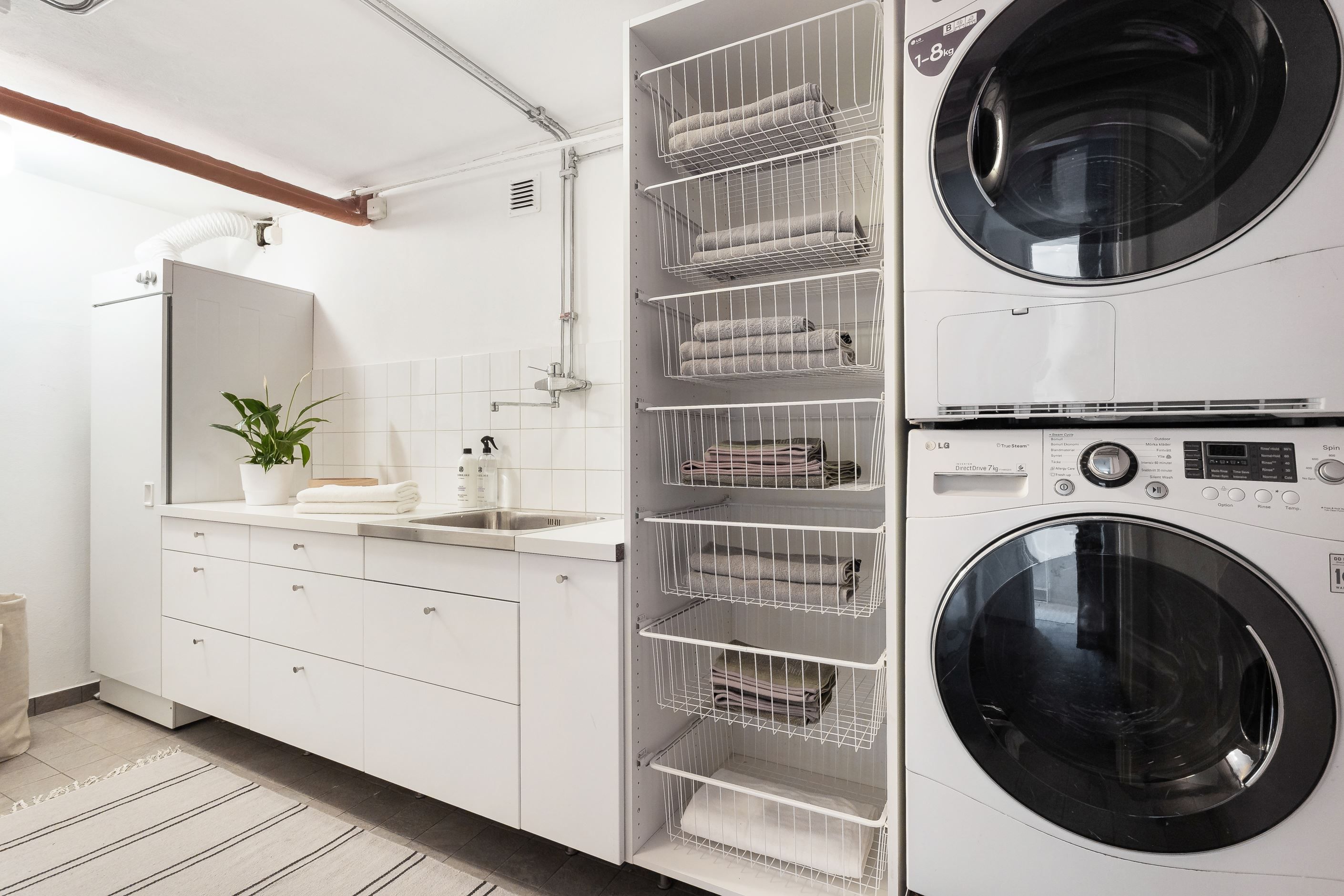 TVÄTTSTUGA som erbjuder bra med plats för klädvård samt duschutrymme. Tvättmaskin och tumlare. Tvättho för handtvätt.