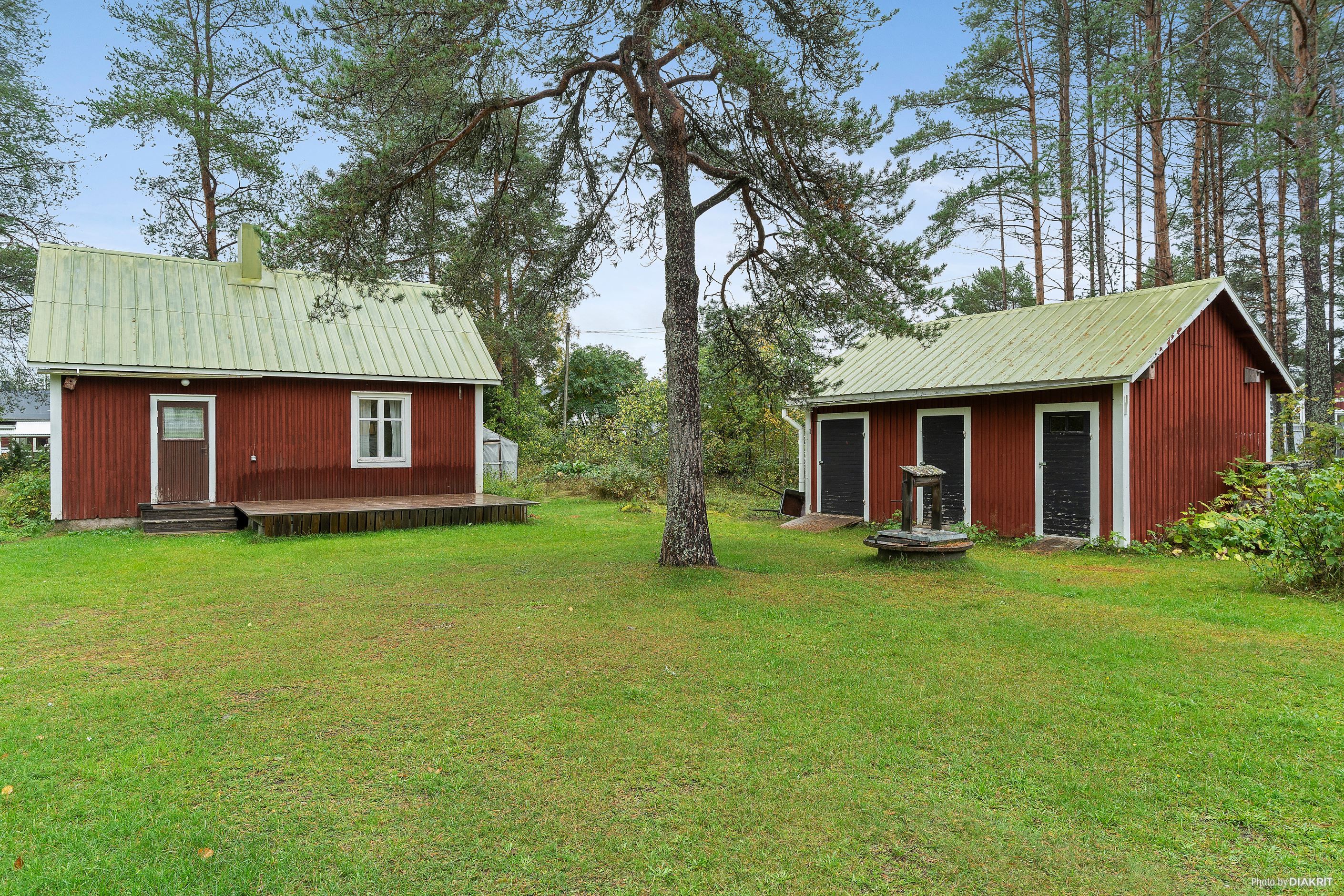 Tomten om 1 651 kvm bjuder in till trädgårdsaktiviteter och förser dig med ett förråd och gårdshus.