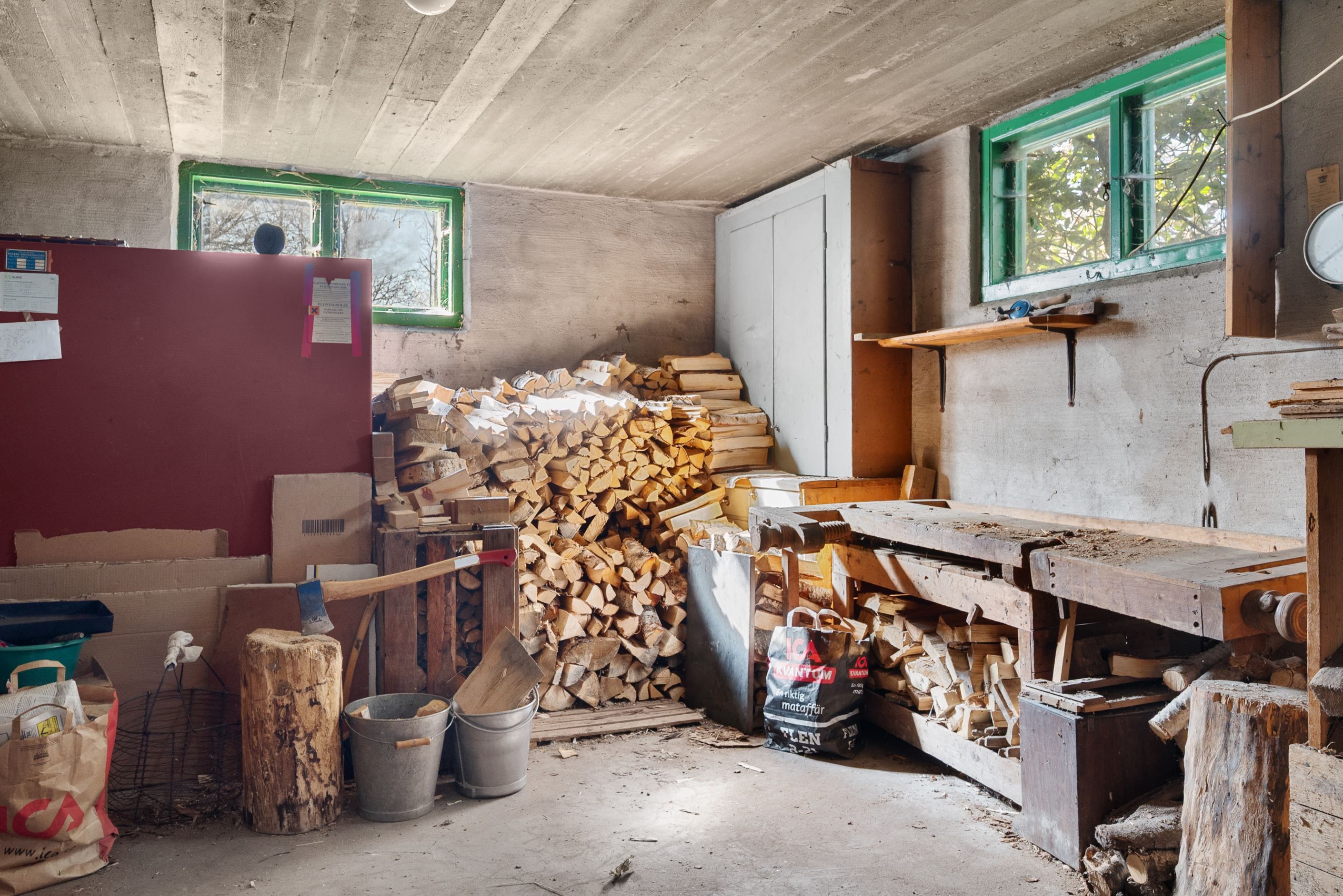 I källaren finns tvättstuga, pannrum, garage, matkällare samt förrådsutrymmen.