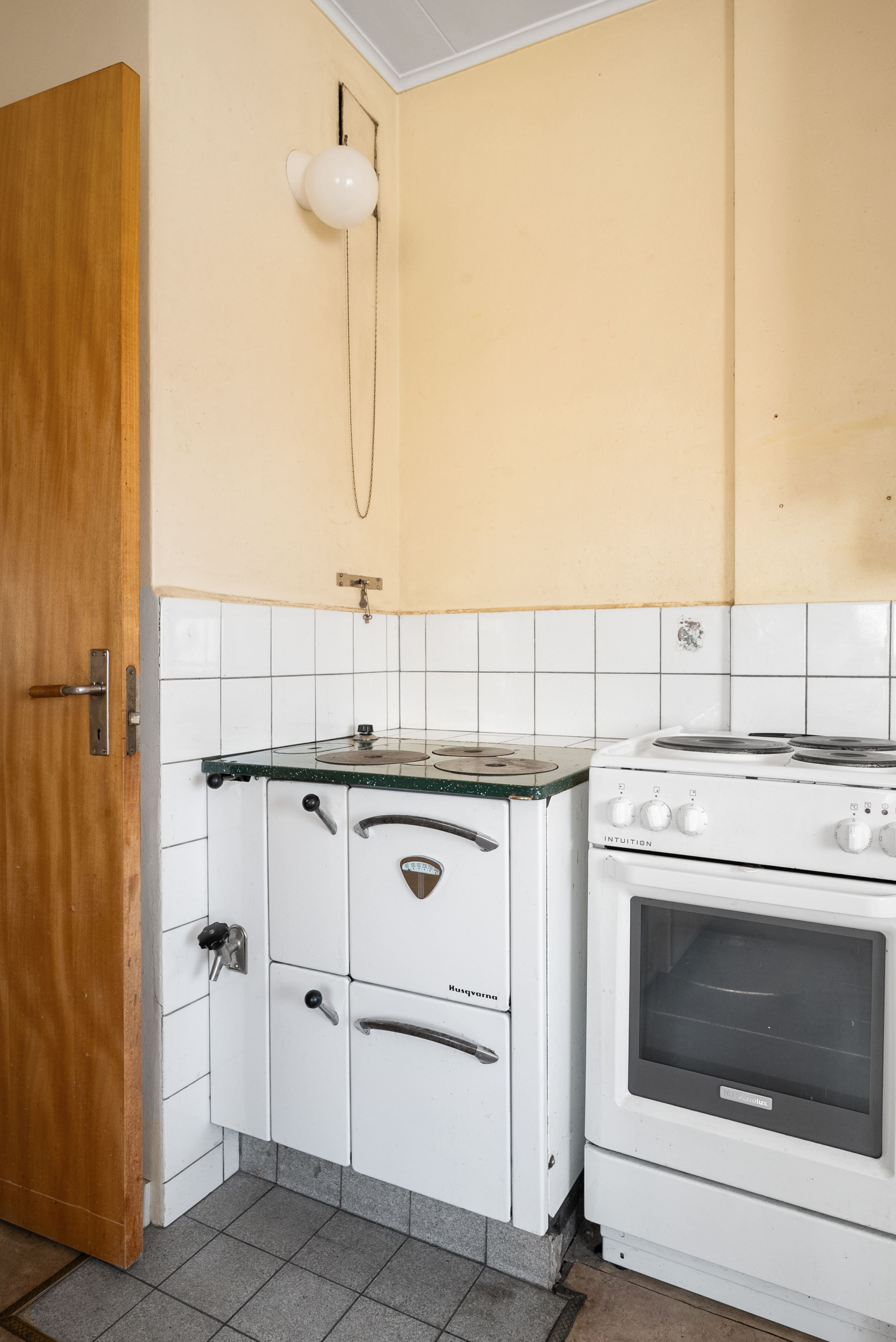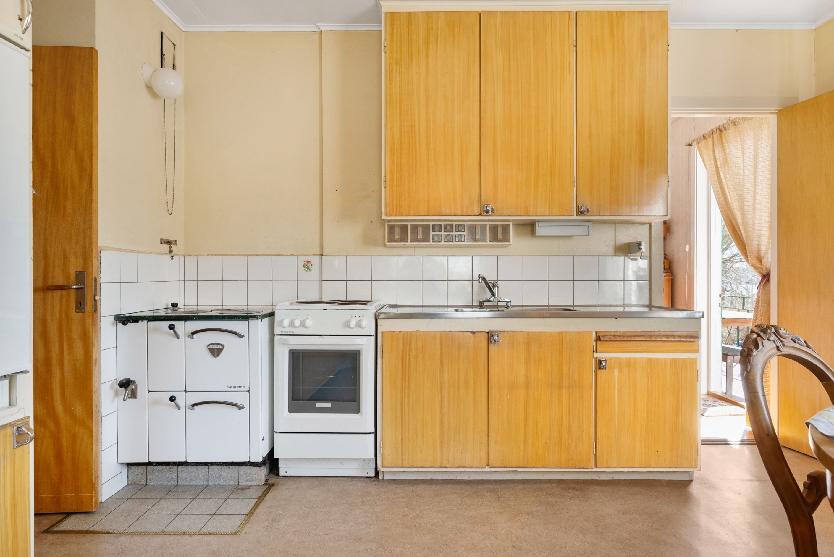 Kök i original med fönster åt två håll vilket ger fint ljusinsläpp. Fungerande vedspis och matplats för 4-6 personer.