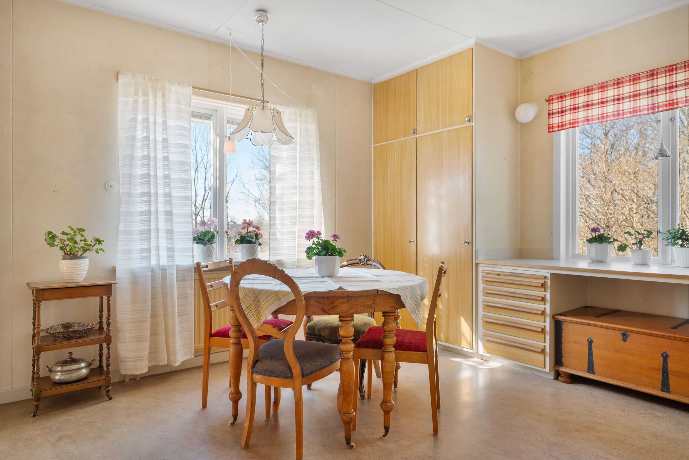 Med högt läge och viss sjöglimt i utkanten av Stjärnhov ligger denna trivsamma villa från 1950-talet – ett hem som fortfarande bär mycket av sin ursprungliga karaktär. Här möts du av tidstypiska detaljer och en klassisk planlösning.