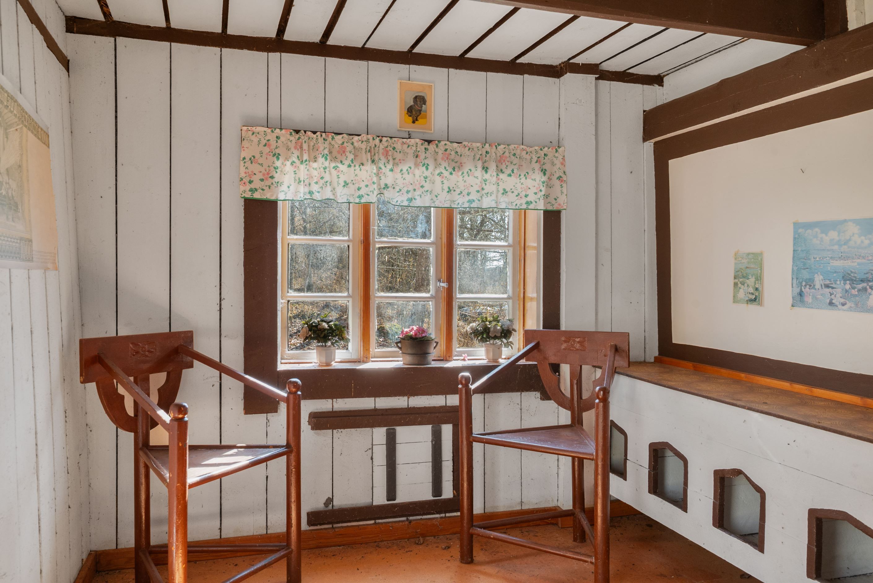 Tre rum/sovrum varav det ena har varit ett kök där delar av inredningen finns kvar.