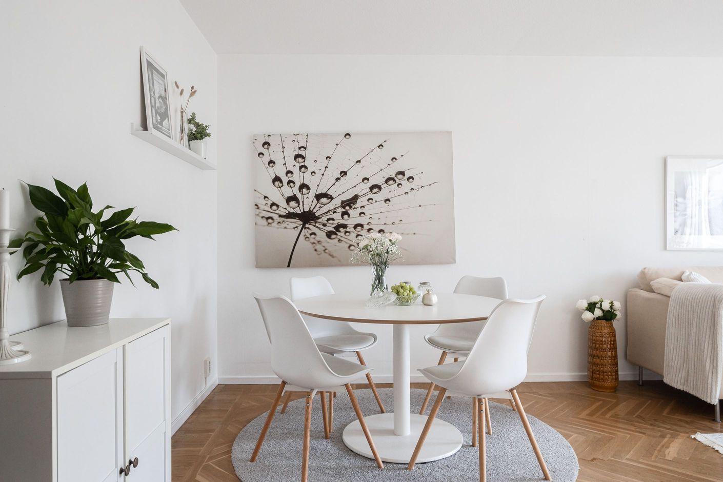 Rummen ligger på rad och ljuset strömmar in och fyller hela bostaden med värme. Fönster och fransk balkong mot söder med fin utsikt över innergården och grönska i ett skönt insynsskyddat läge.