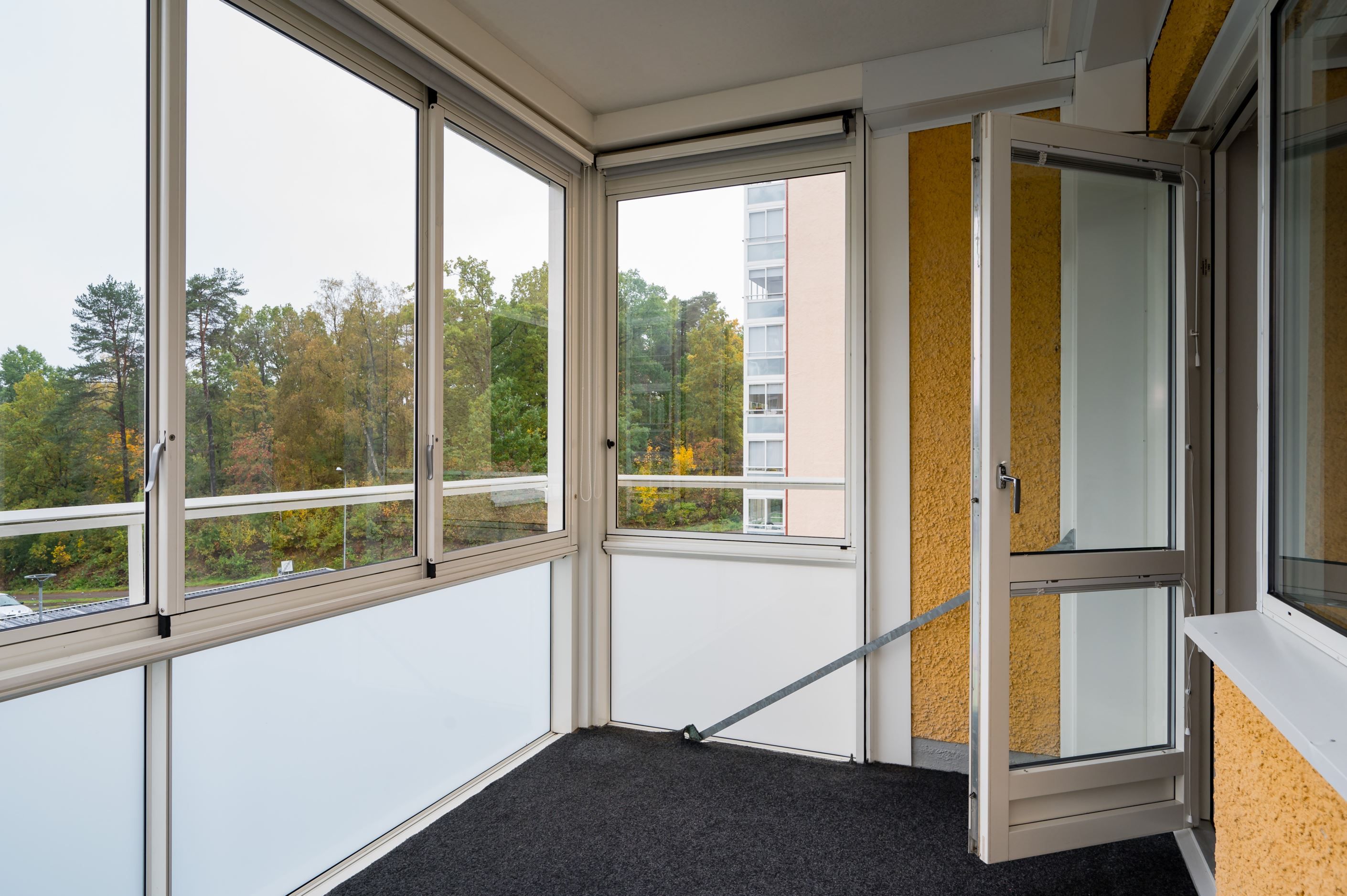 Njut av den generösa inglasade balkongen med utsikt över grönska utan något hus mitt emot. Sommartid gissar vi att du är mer på balkongen än inomhus. Eller så placerar du här den skönaste fåtöljen, startar kaffebryggaren och slår dig ned. Det är gott det med.
