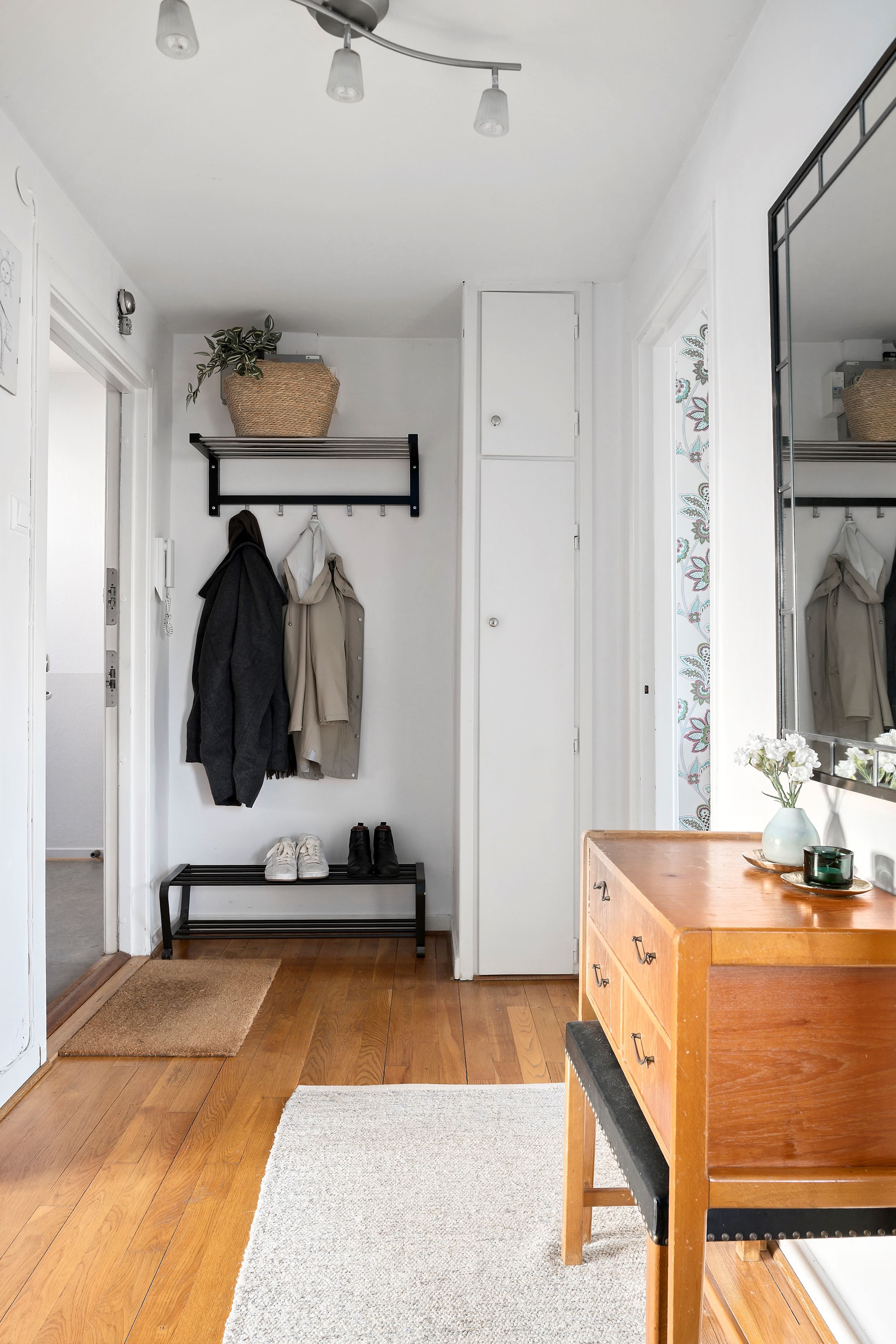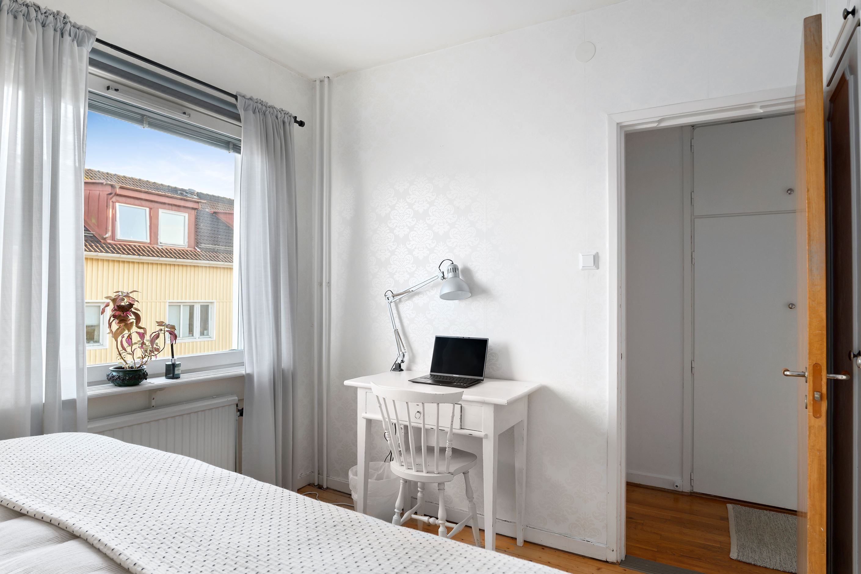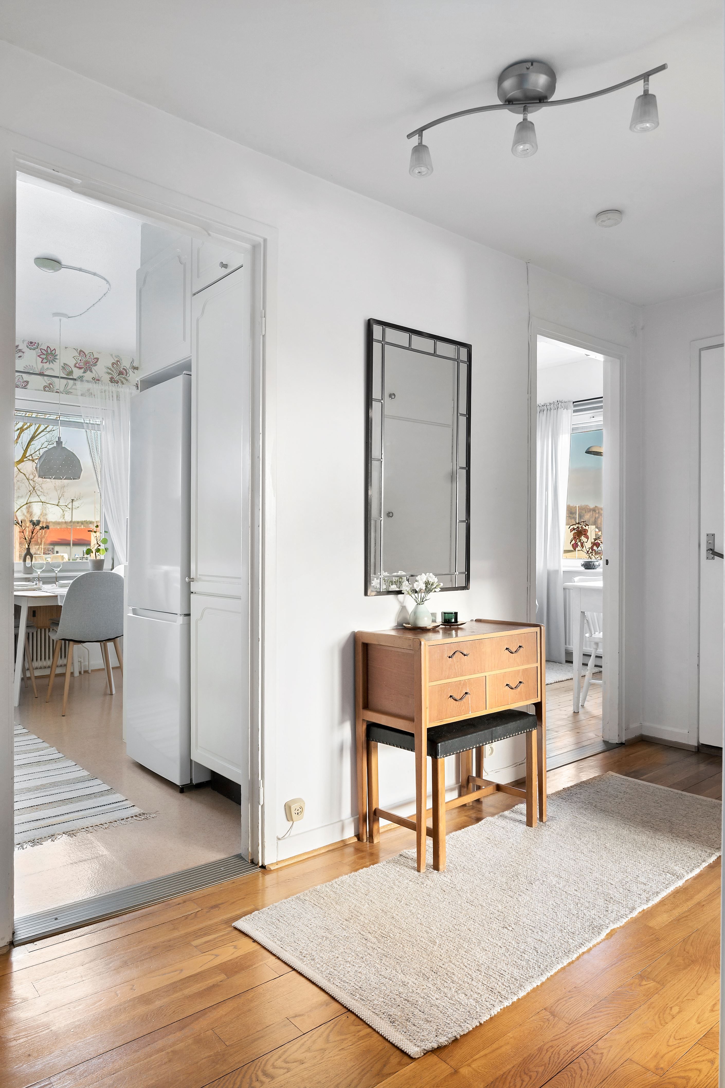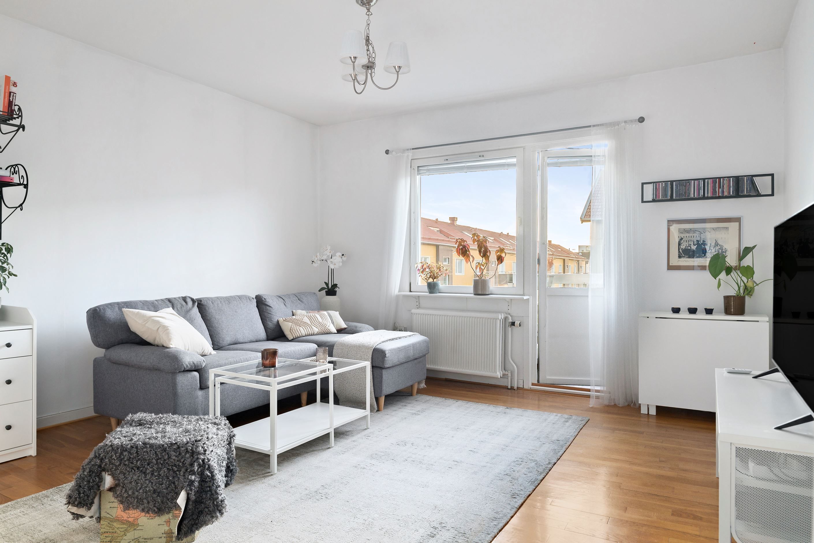 Nu har vi nöjet att erbjuda en fin och charmig funkistvåa med balkong i söderläge. Ni möts av en trevlig hall med plats för avhängning. Köket finner ni rakt fram med plats för matbordet intill fönstret. Här finns förvaring i flera skåp, ugn, diskho samt kyl/frys. Hela bostaden är smart planerad med helkaklat badrum och trevlig ljust vardagsrum med utgång till balkongen. Sovrummet har bra storlek och rymmer en dubbelsäng, här finns fönster ut mot gaveln och förvaring i garderober.