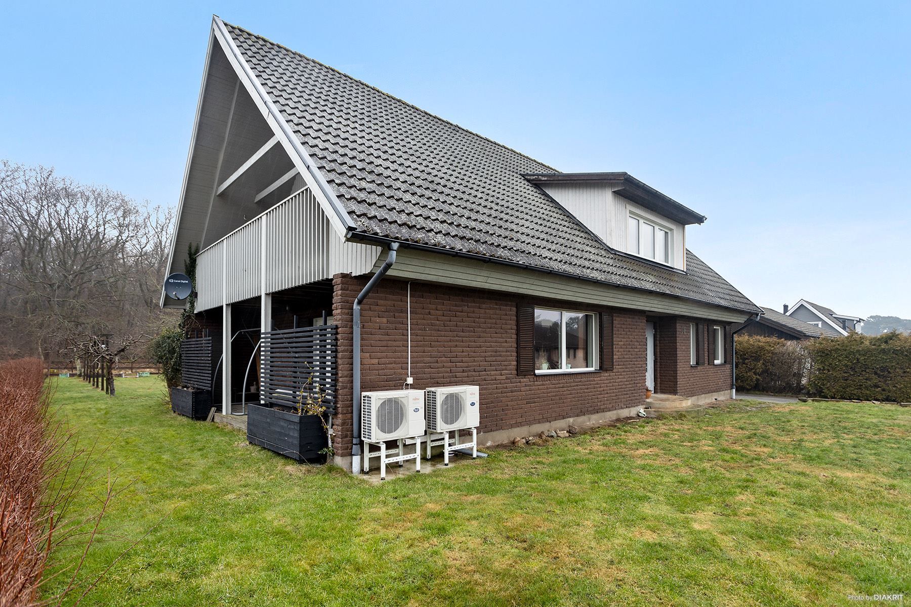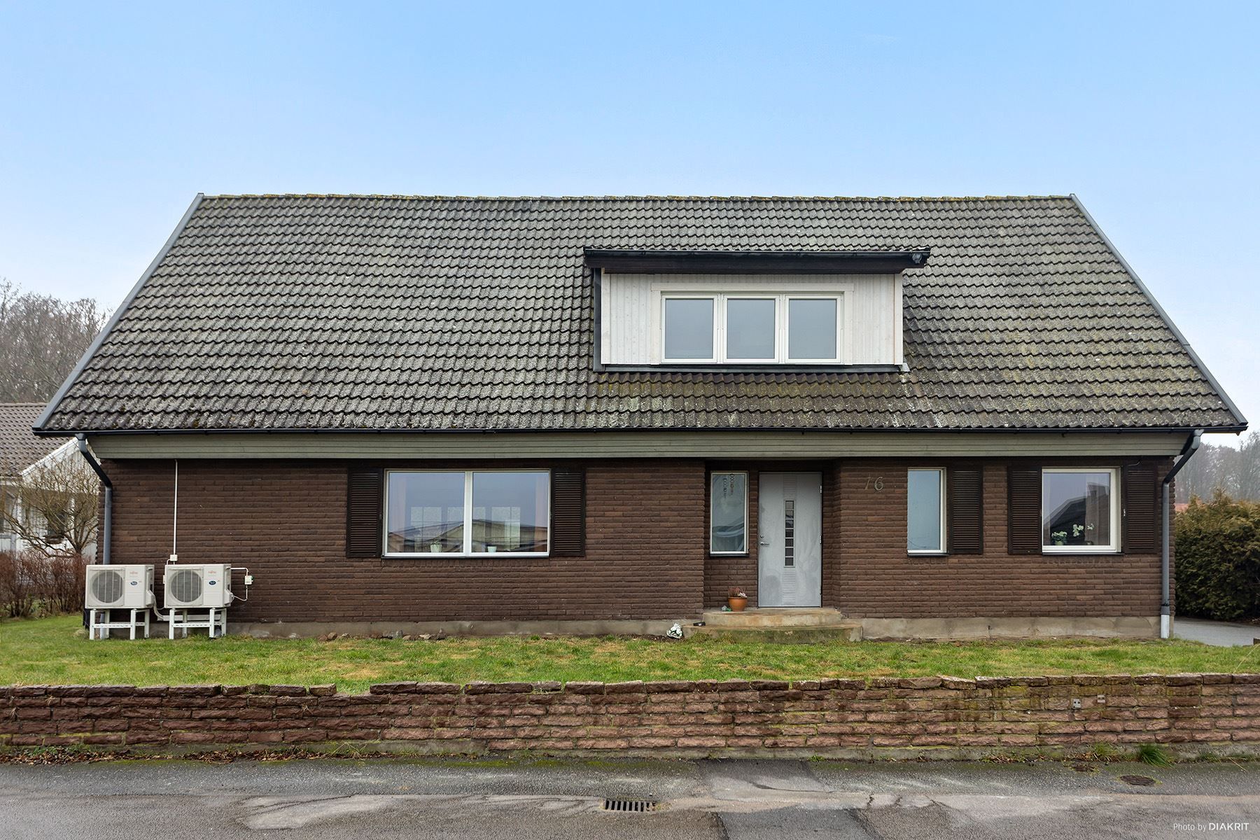 Huset som byggdes 1977, har en lättskött tegelfasad och är fördelat på två våningar.