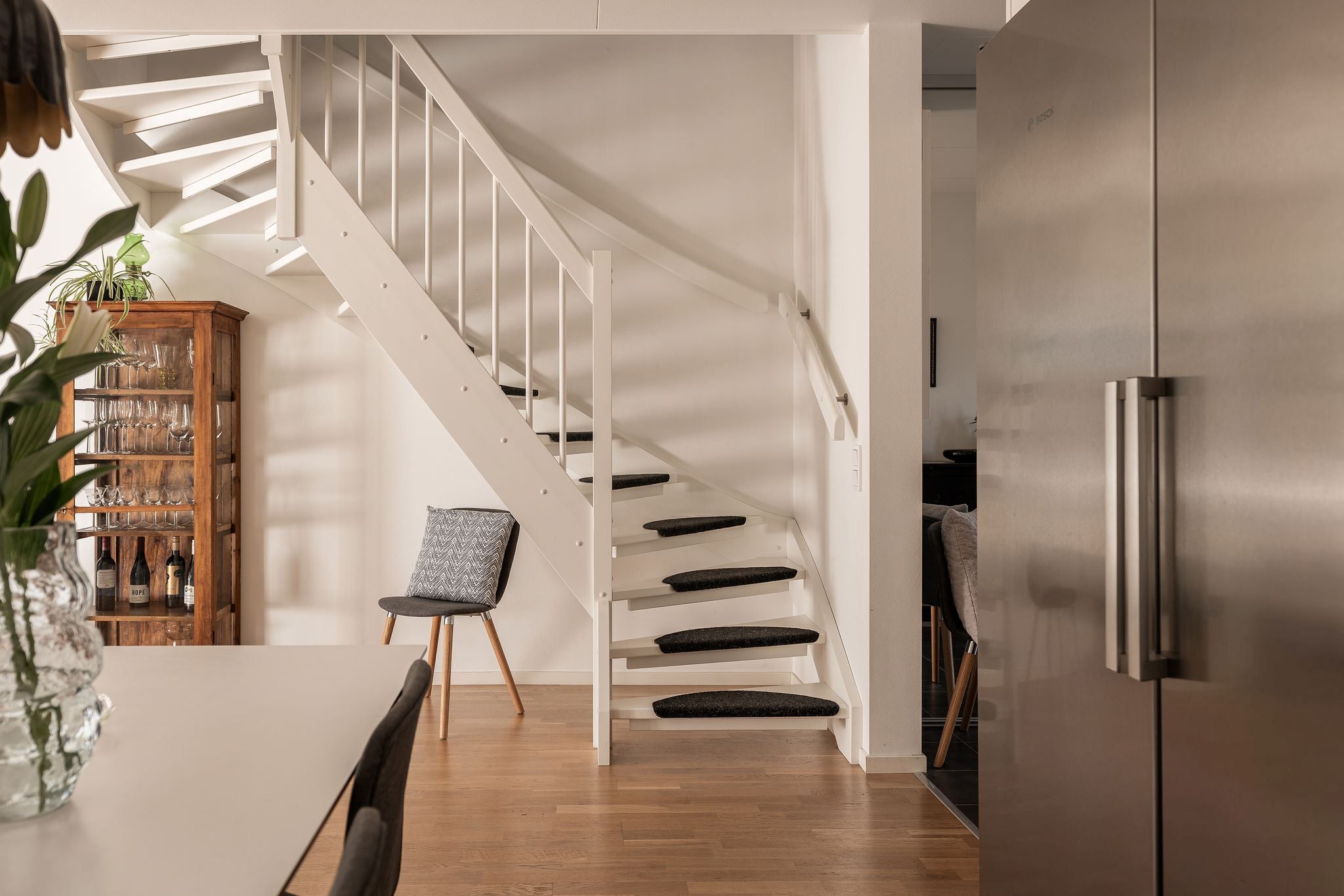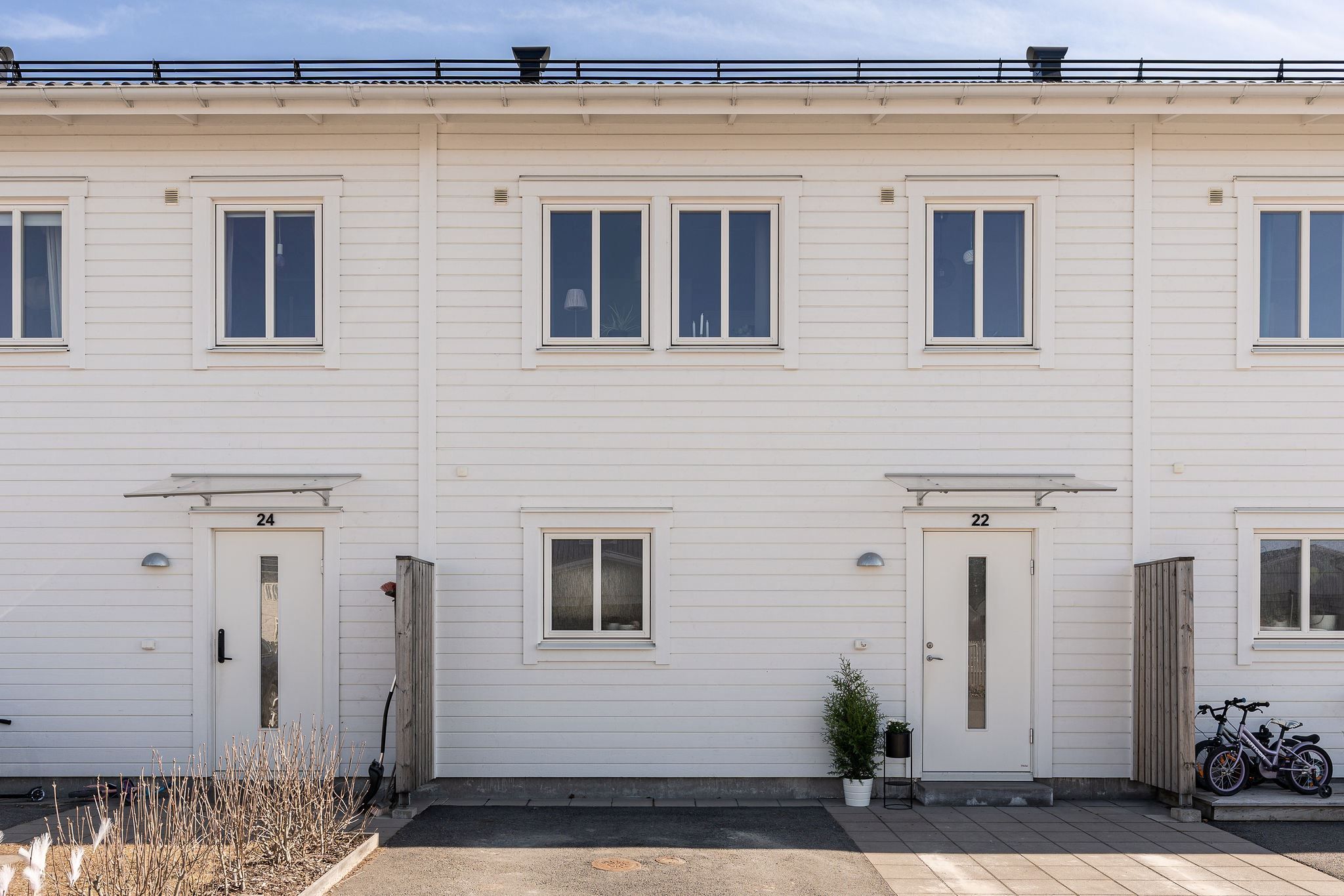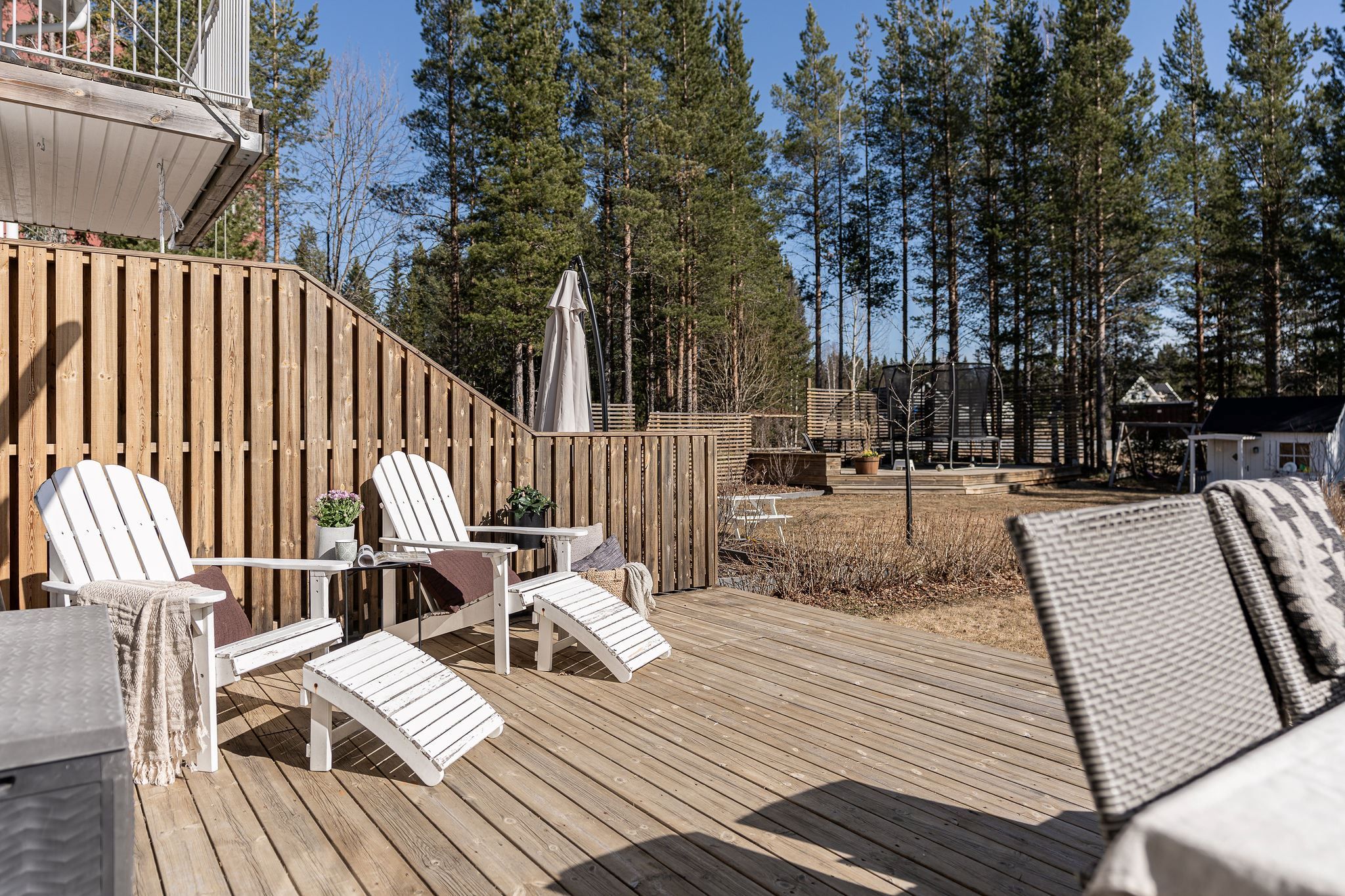 Här erbjuds ni ett modernt och lättskött hem med rymlig baksida som vetter mot skogen vilket skapar en privat känsla och avskildhet. Bostaden omfattar 99 välplanerade kvadratmeter i genomgående gott skick, fördelade på två funktionella våningsplan.