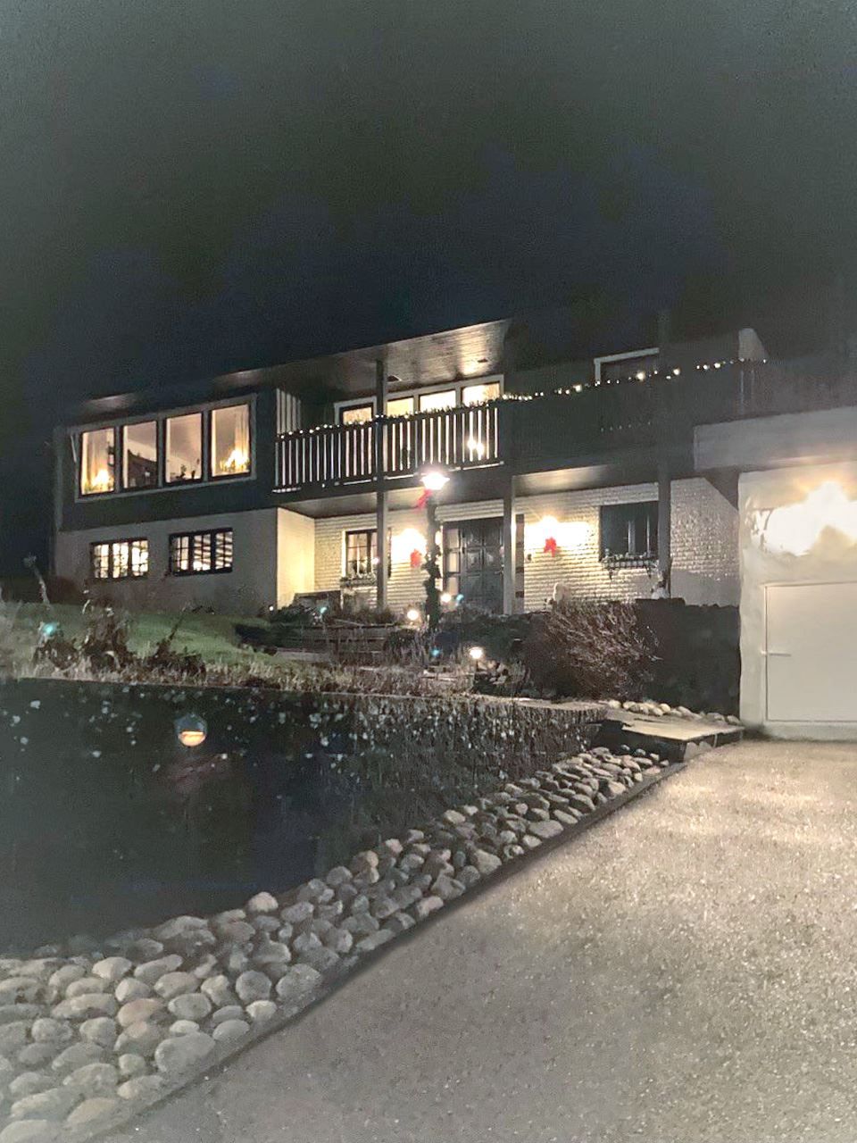 Invändigt möts ni av stora, luftiga och sociala ytor där planlösningen bjuder in till umgänge. Vardagsrummet präglas av en stämningsfull braskamin som ger både värme och karaktär. Från vardagsrum och matplats nås den imponerande balkongen som löper längs hela villans framsida och vidare runt knuten till entrén på övre plan – en fantastisk plats att njuta av sol, utsikt och långa sommarkvällar. Här finns förutom kök, matplats och vardagsrum, 3 väl tilltagna sovrum, ett helkaklat badrum med badkar samt gästtoalett som nås från hall vid entré.