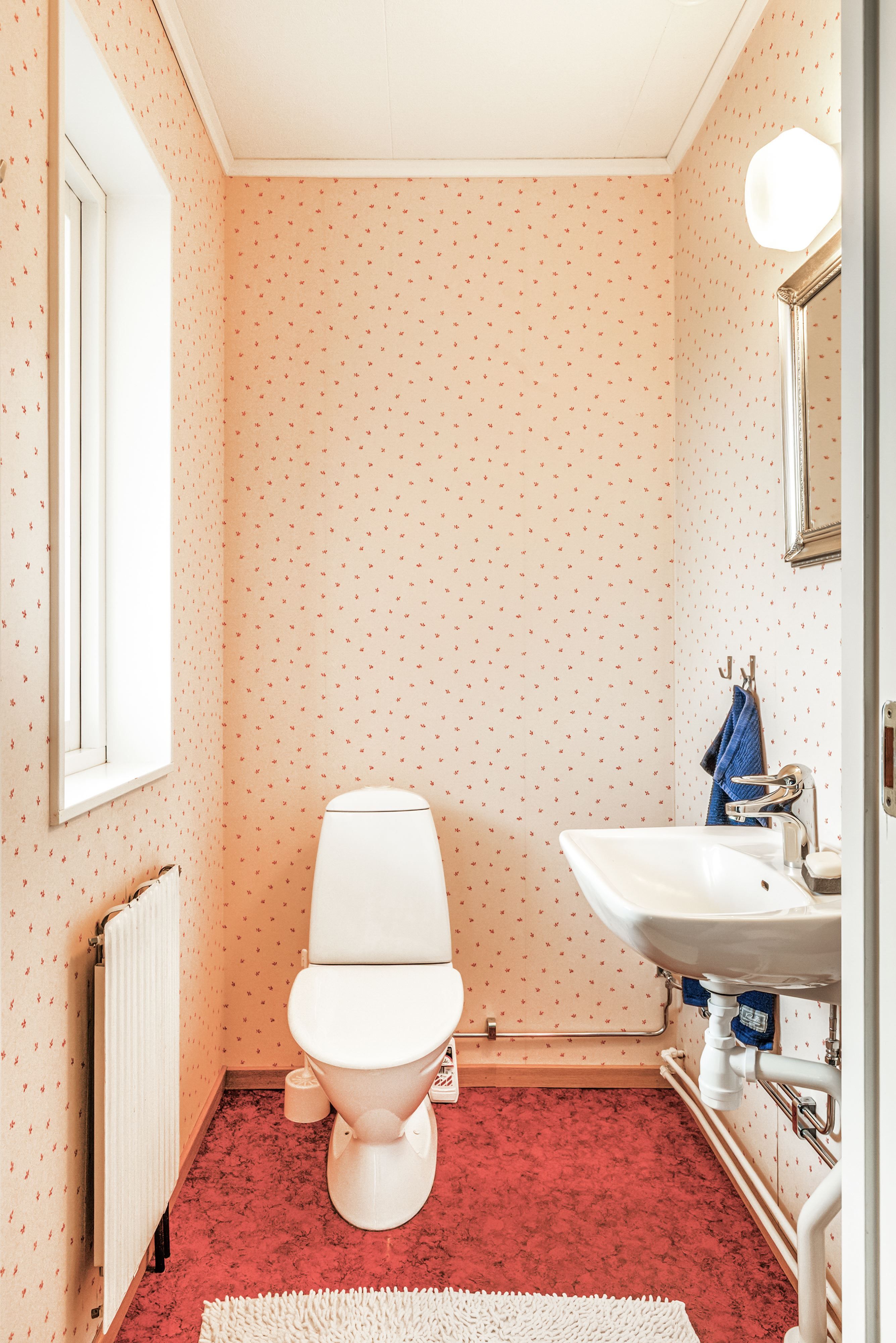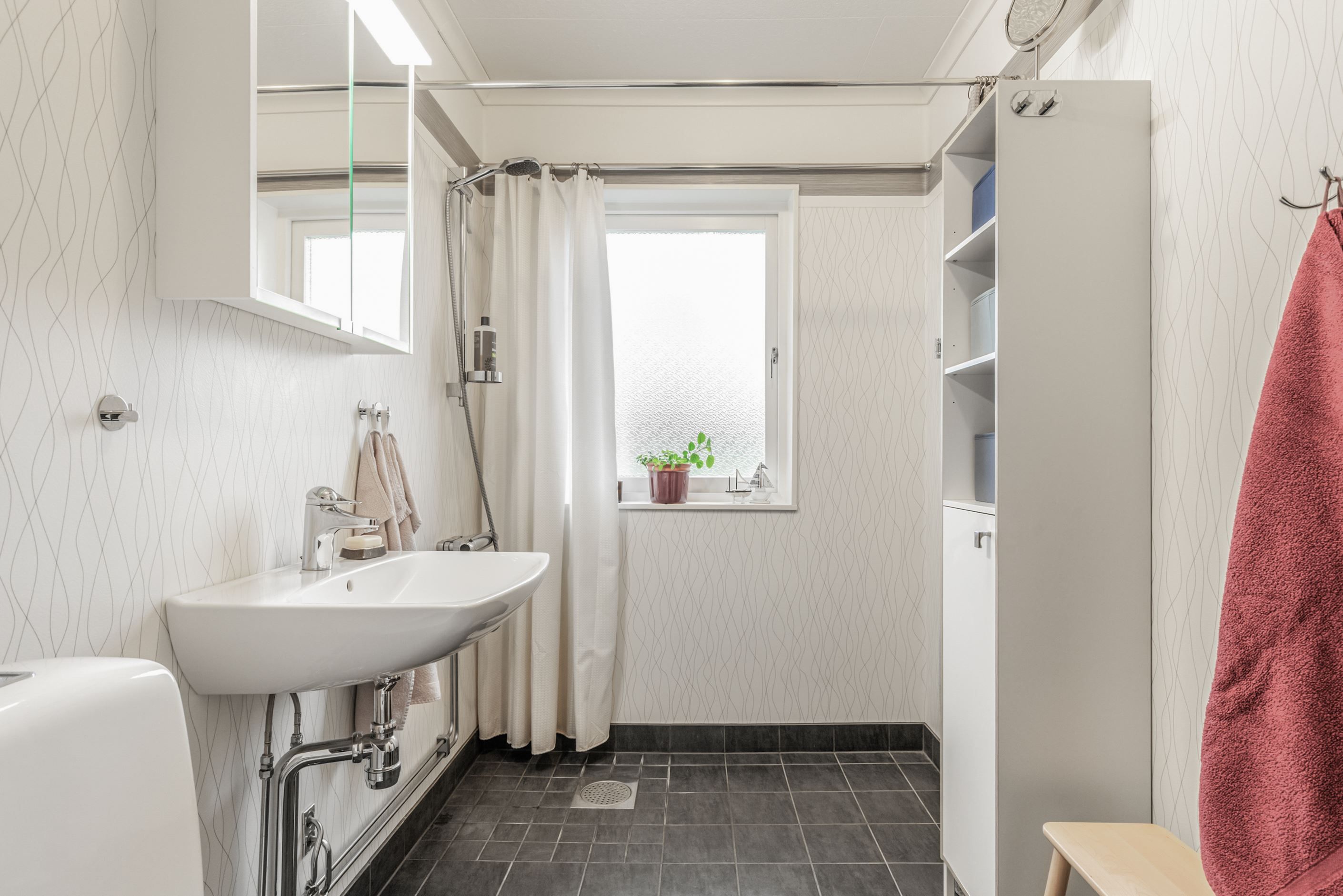 Badrummet är nyrenoverat i stilren design, med moderna ytskikt och praktiska lösningar. Det finns även en gästtoalett praktiskt placerad.
