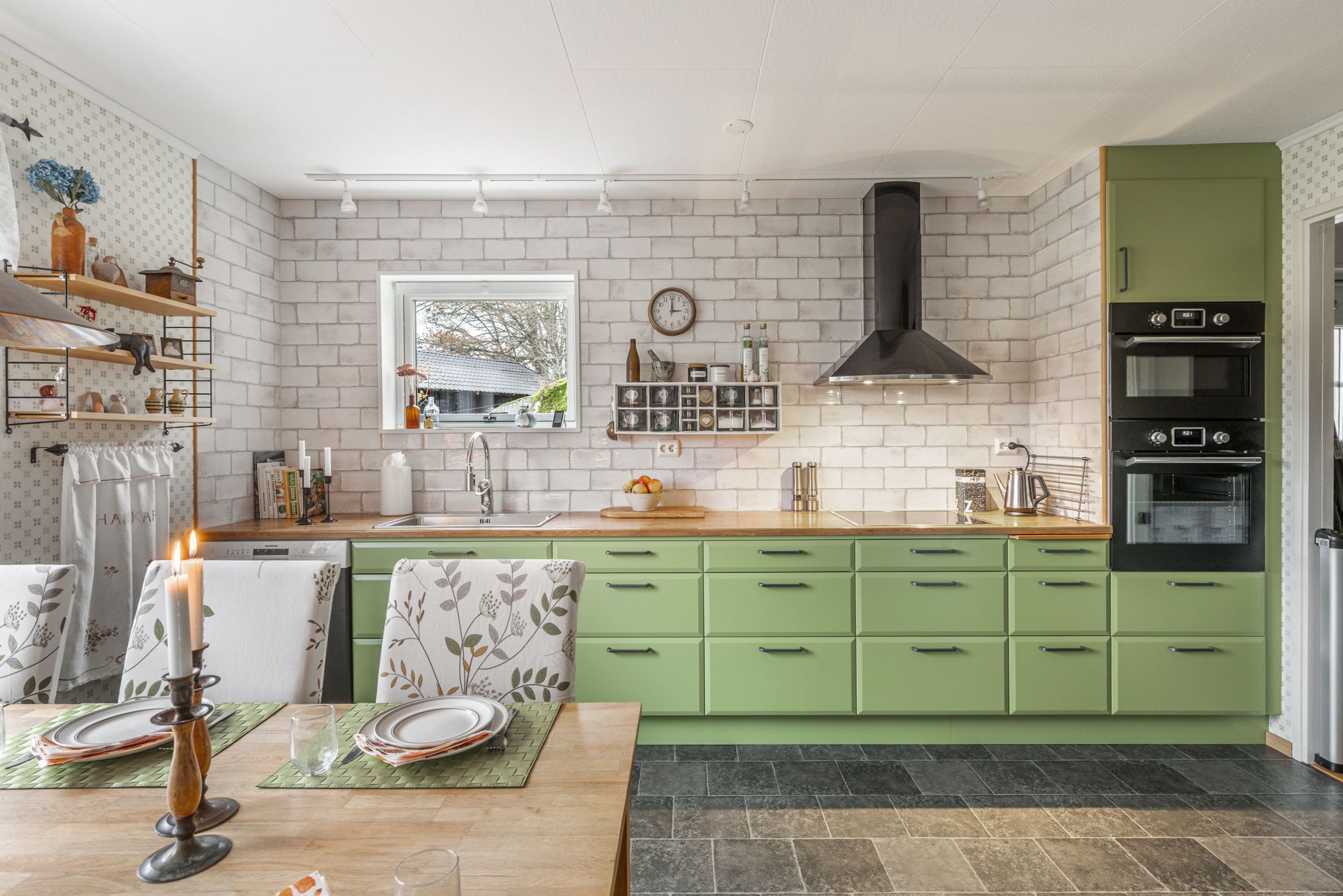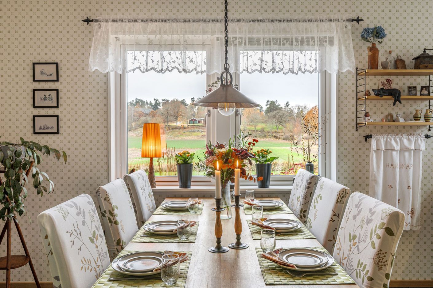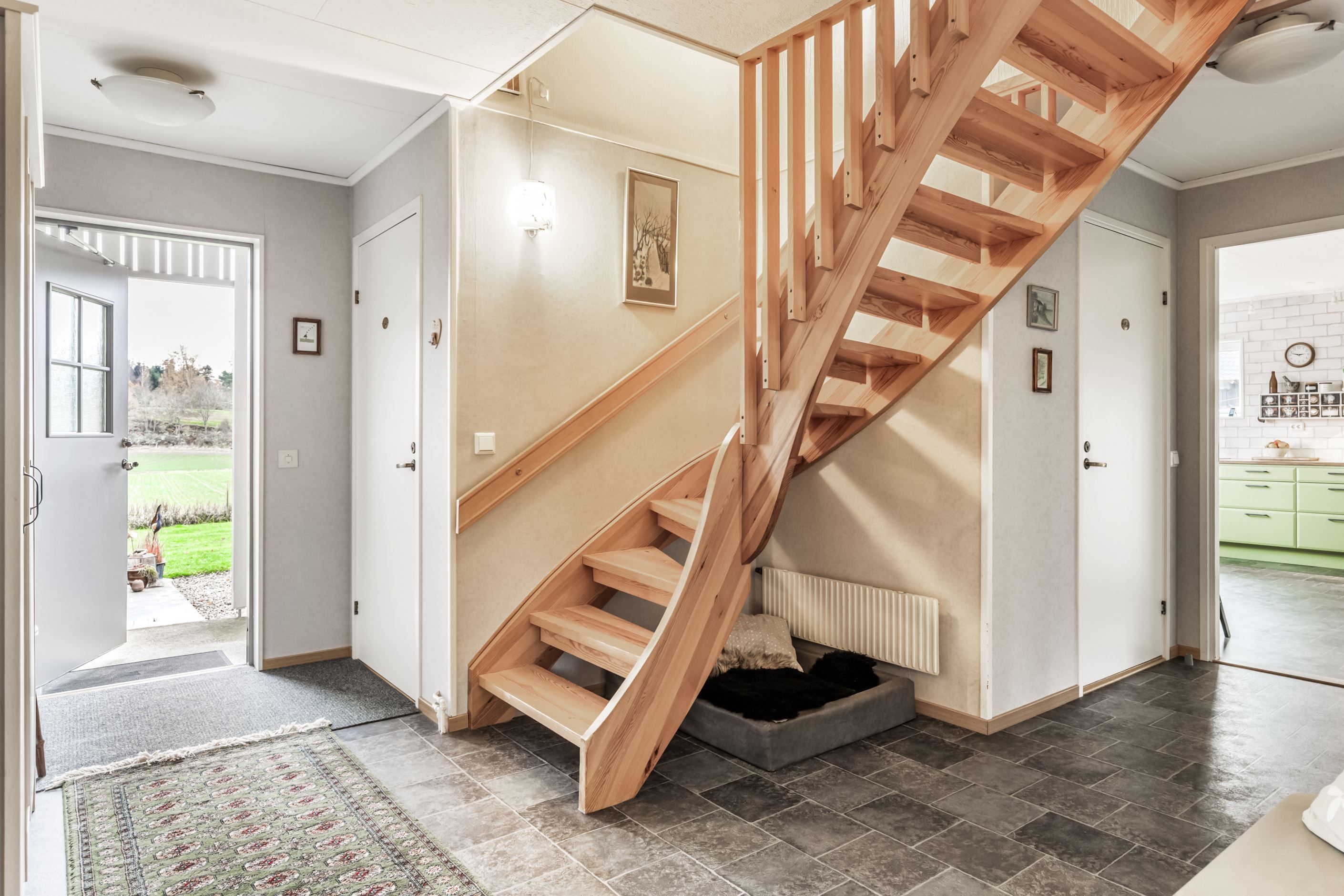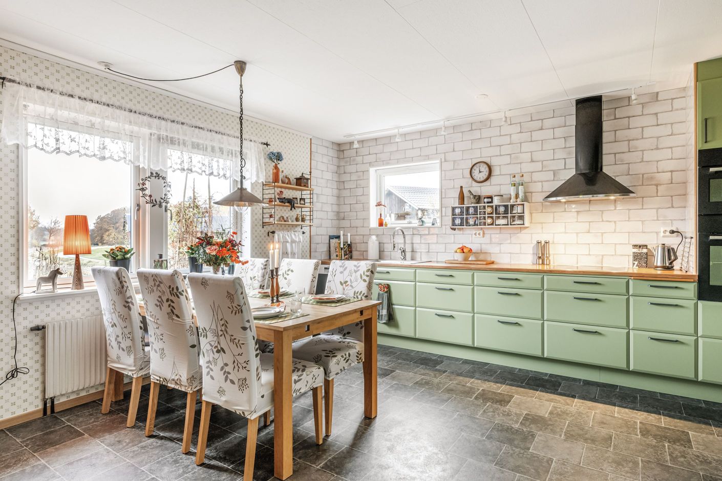 Huset erbjuder en välplanerad bostadsyta i ett plan med tre rymliga sovrum, perfekt för familjen eller för dig som vill ha plats för gäster, kontor eller hobbyrum. Det nyrenoverade köket är hemmets hjärta – ljust, modernt och med generösa arbetsytor, fina materialval och gott om förvaring. Från matbordet har man en oslagbar utsikt utöver närliggande natur och åkrar.