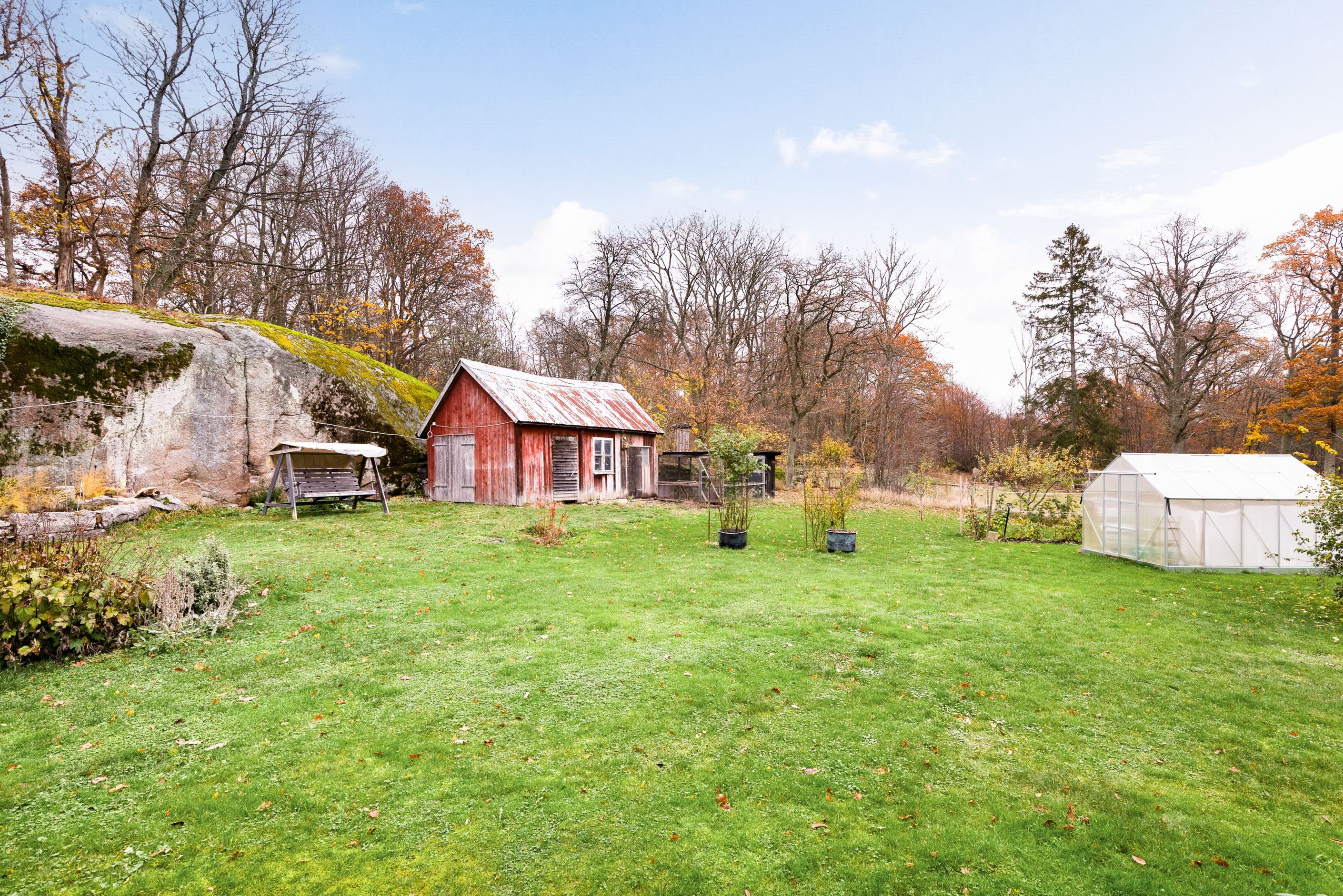 Utomhus väntar en stor, öppen tomt med gott om plats för både lek, odling, växthus eller kanske en framtida pool. Från tomten har du fri sikt över det omgivande jordbrukslandskapet, och här infinner sig ett lugn som är svårt att hitta på andra platser. På morgonen ser du solen gå upp över fälten, och på kvällen färgas himlen av mjuka pasteller när dagen går mot sitt slut.
