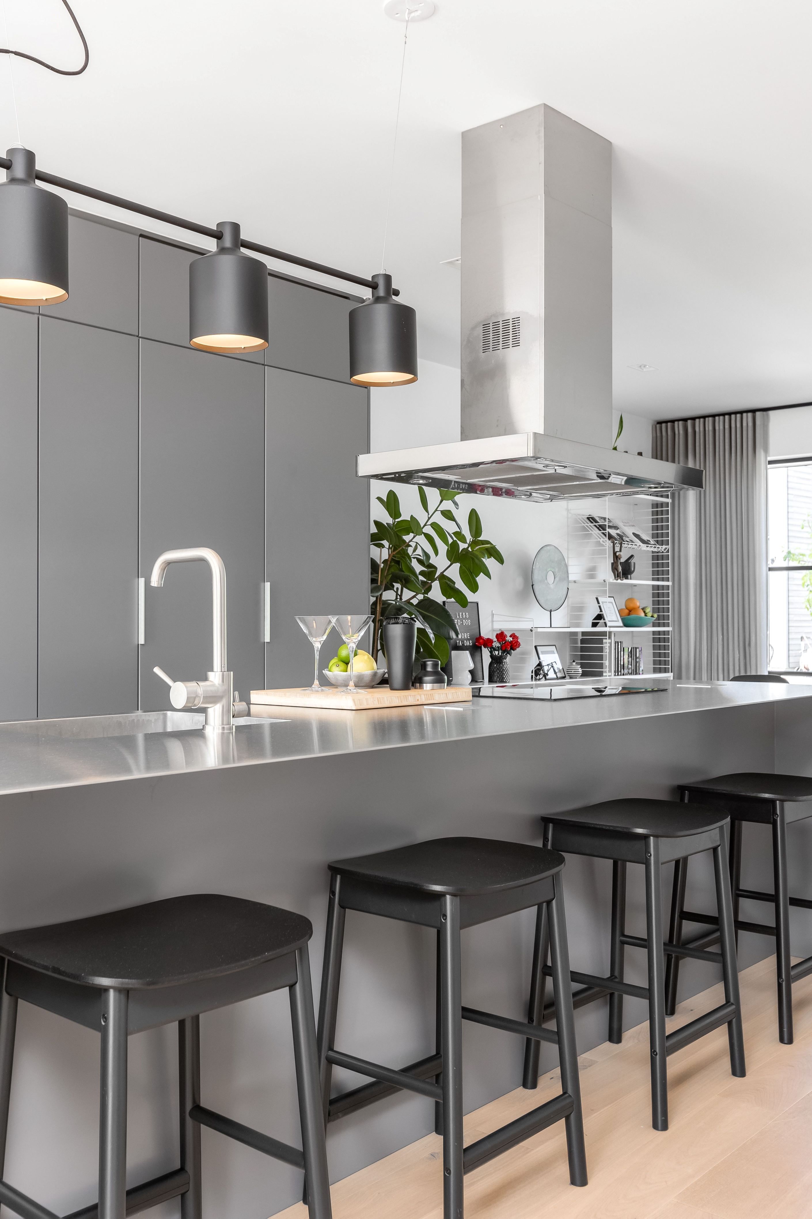 Köket är riktigt påkostat, tillverkat på ett lokalt snickeri i Vingåker med integrerade vitvaror. Här har ni ett kök som centrerar bostaden och bjuder in till sociala middagar med släkt och vänner. Köket har det lilla extra med maskinell utrustning från SMEG, rostfria bänkskivor från Franke, praktiska eluttag nerfällda i bänkskiva och en frihängande fläkt även den från SMEG.