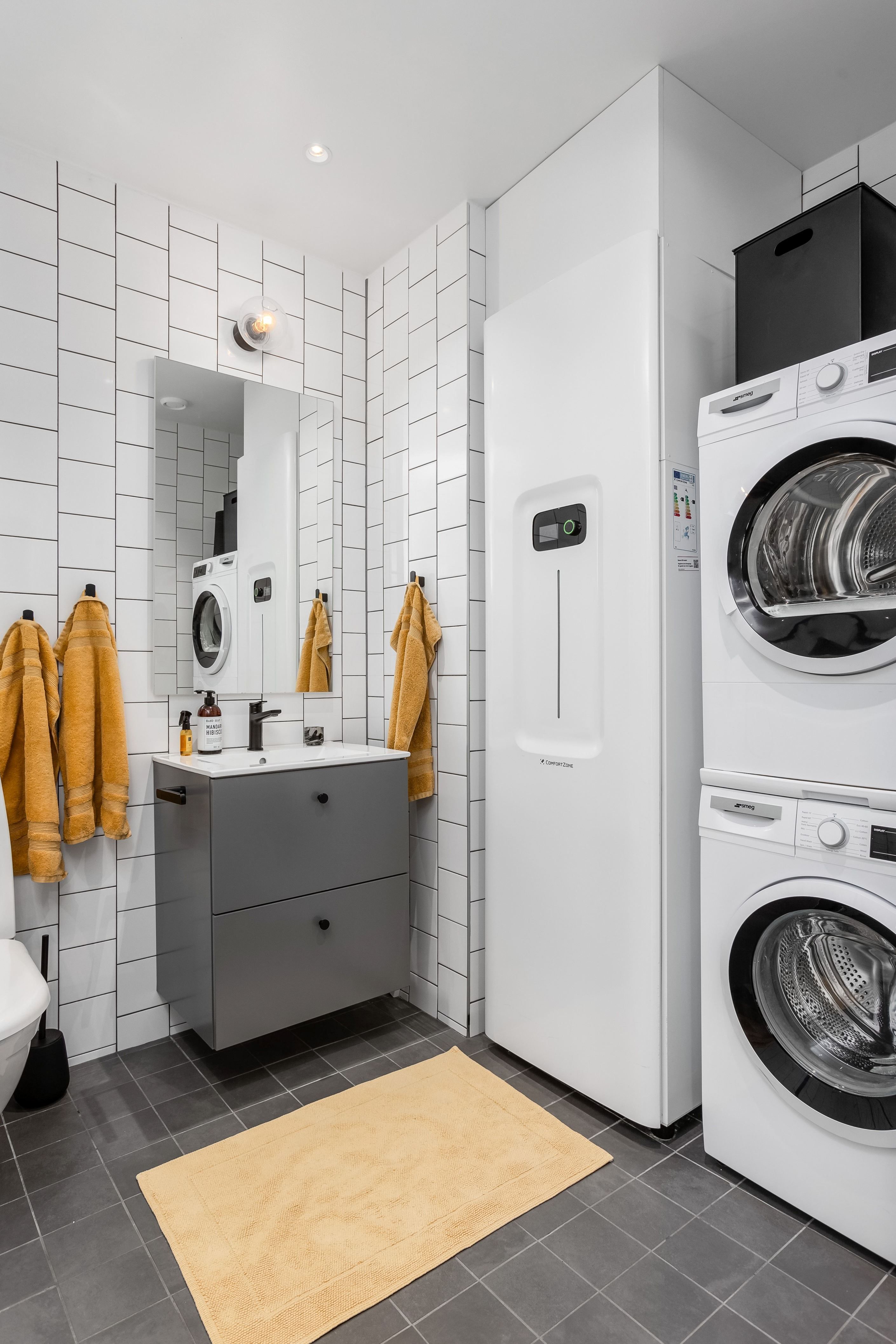 I detta välplanerade radhus hittar ni 4 sovrum och två helkaklade badrum, ett av badrummen erbjuder tvättmaskin och torktumlare från SMEG. Huset erbjuder också ett allrum på övre plan samt ett stort och härligt vardagsrum på entréplan. Önskar man ytterligare ett sovrum finns plats för det på entréplan.