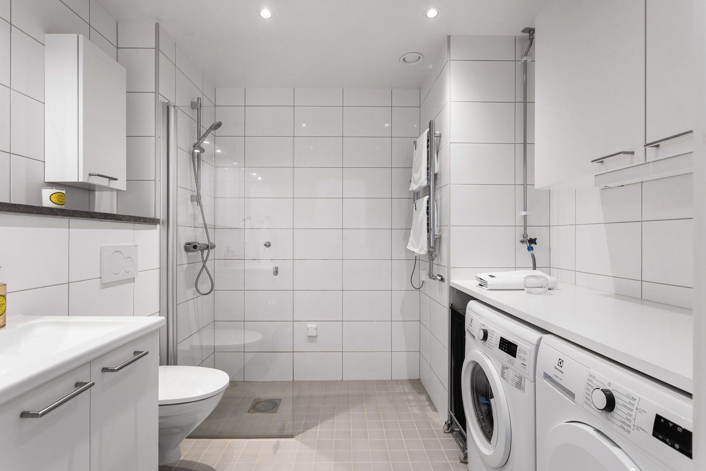 Generöst helkaklat BADRUM med TVÄTTUTRUSTNING för en smidig vardag.