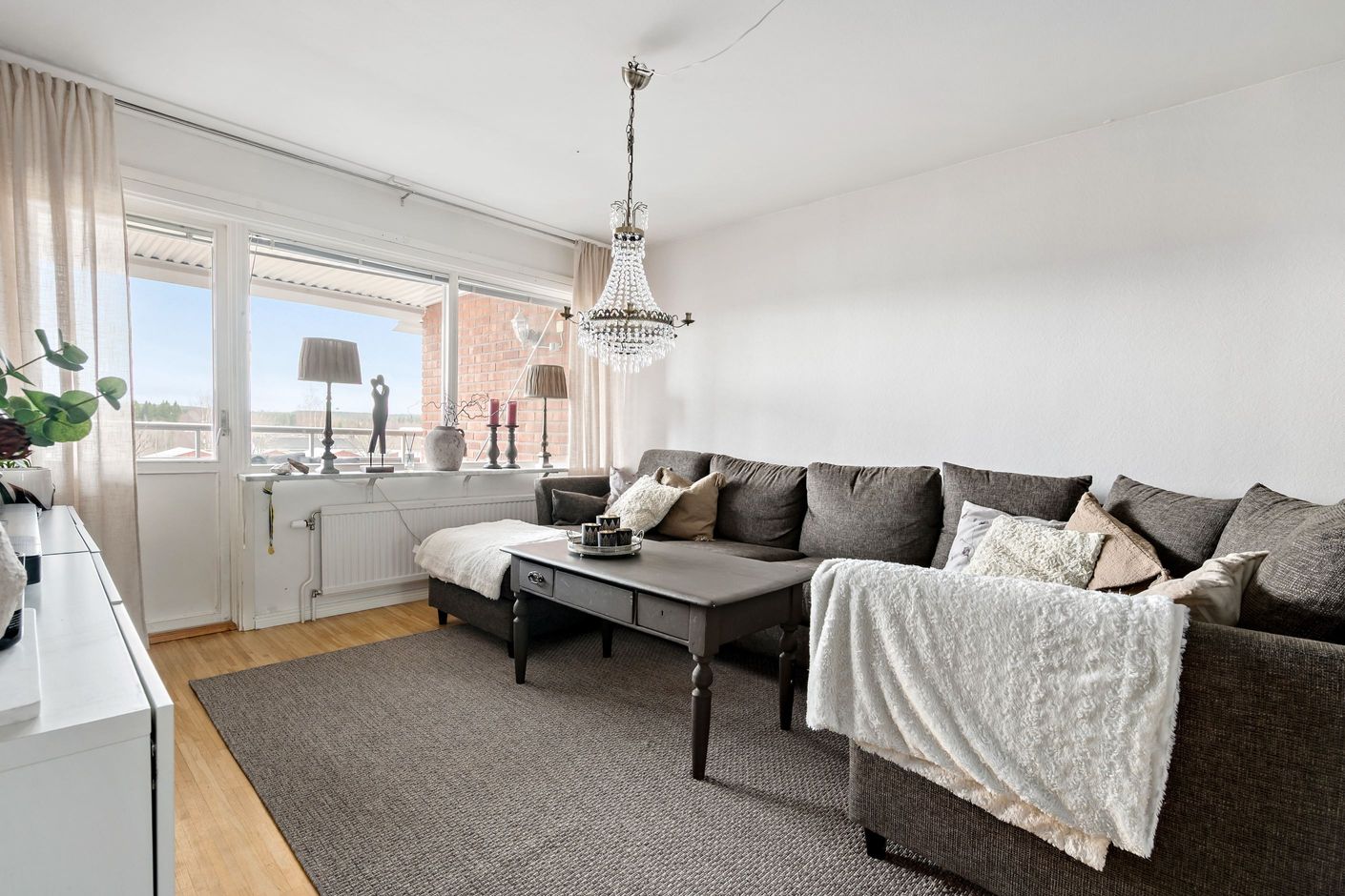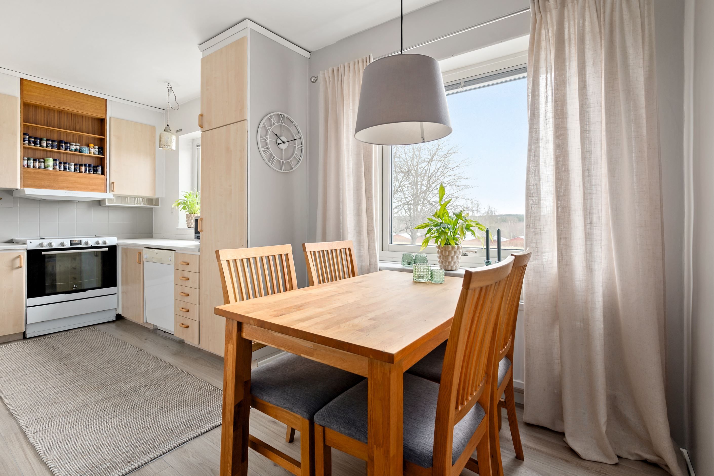 Lägenheten har en ljus och inbjudande känsla med genomgående god standard och smakfulla materialval. De ljusa, träimiterade golven tillsammans med väggar i behagliga nyanser skapar en harmonisk bas som passar de flesta stilar. Här finns flera väl tilltagna sovrum, ett rymligt vardagsrum med stora fönsterpartier som ger ett fint ljusinsläpp samt ett trevligt kök med goda arbetsytor.