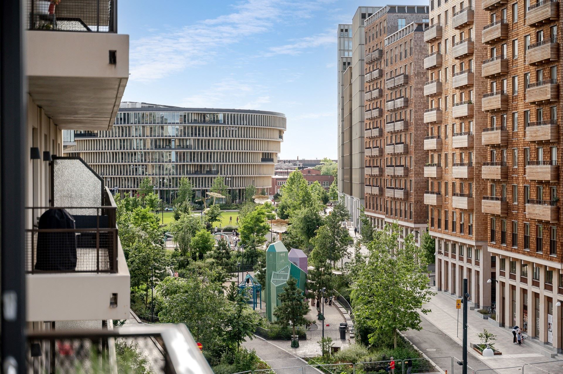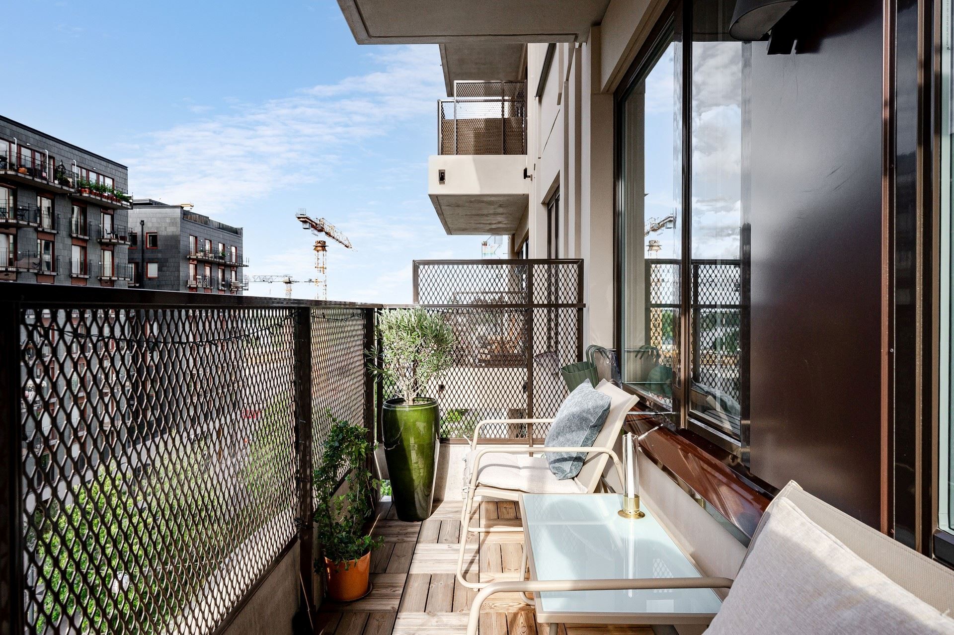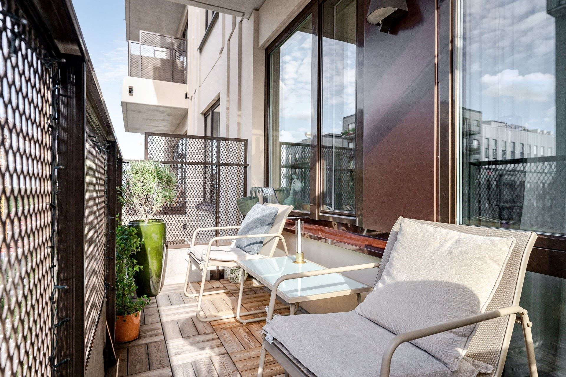 Från balkongen njuter du av fri vy över parken och ett generöst solläge från eftermiddag till kväll – en privat oas ovanför stadens puls.