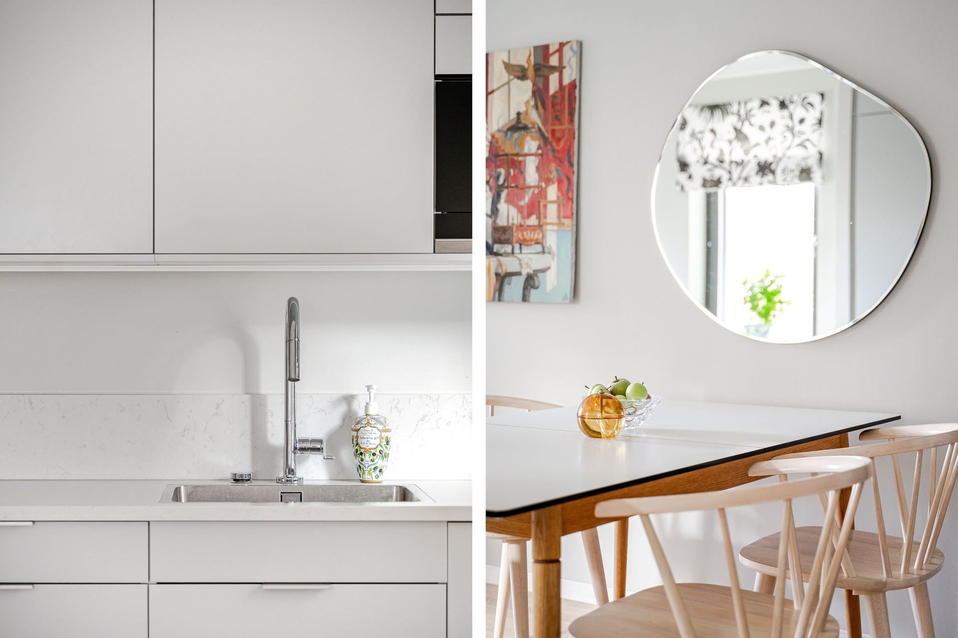 Planlösningen är genomtänkt med en naturlig balans mellan sociala ytor och privata rum, och materialvalen är moderna, tidlösa och noggrant utvalda.