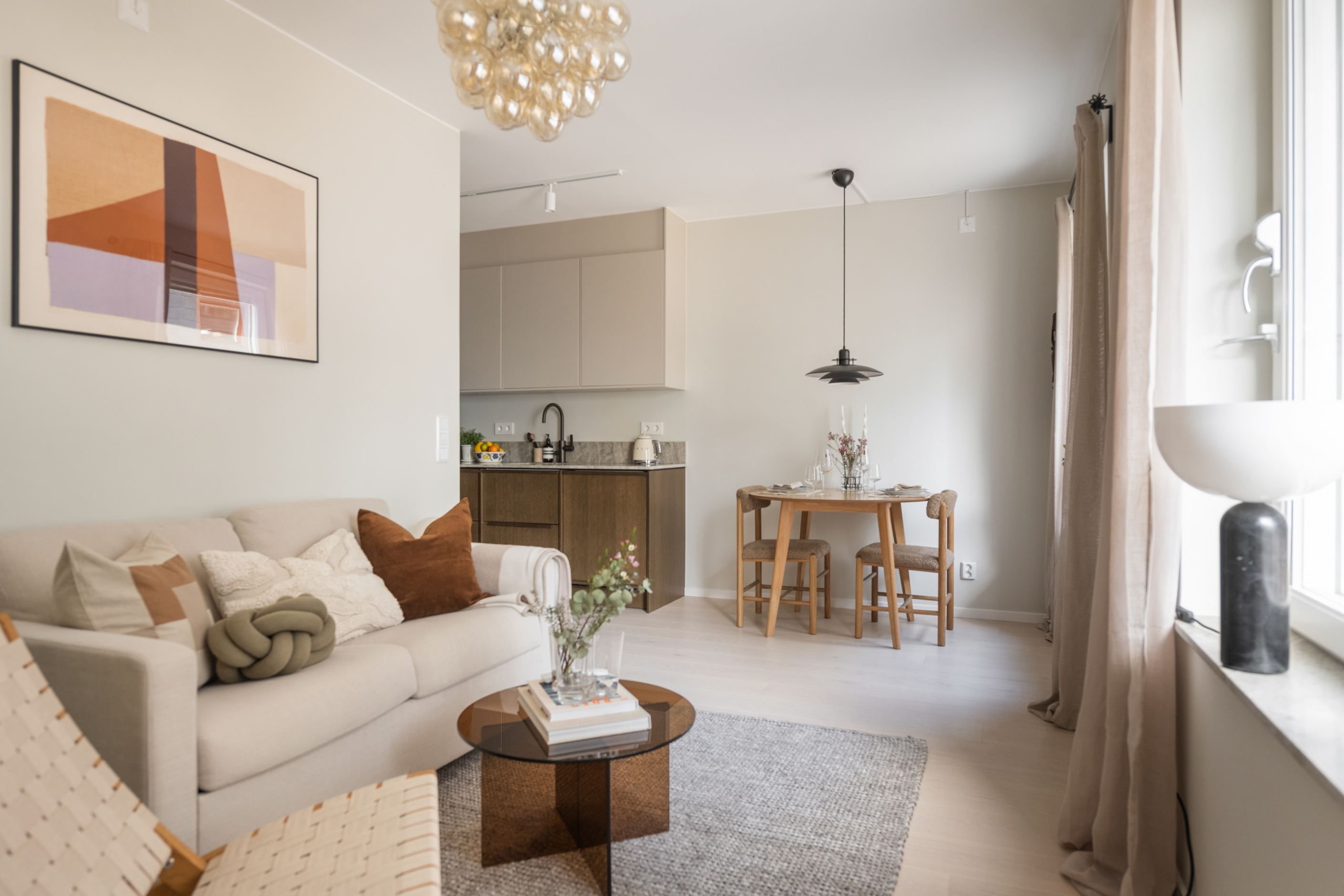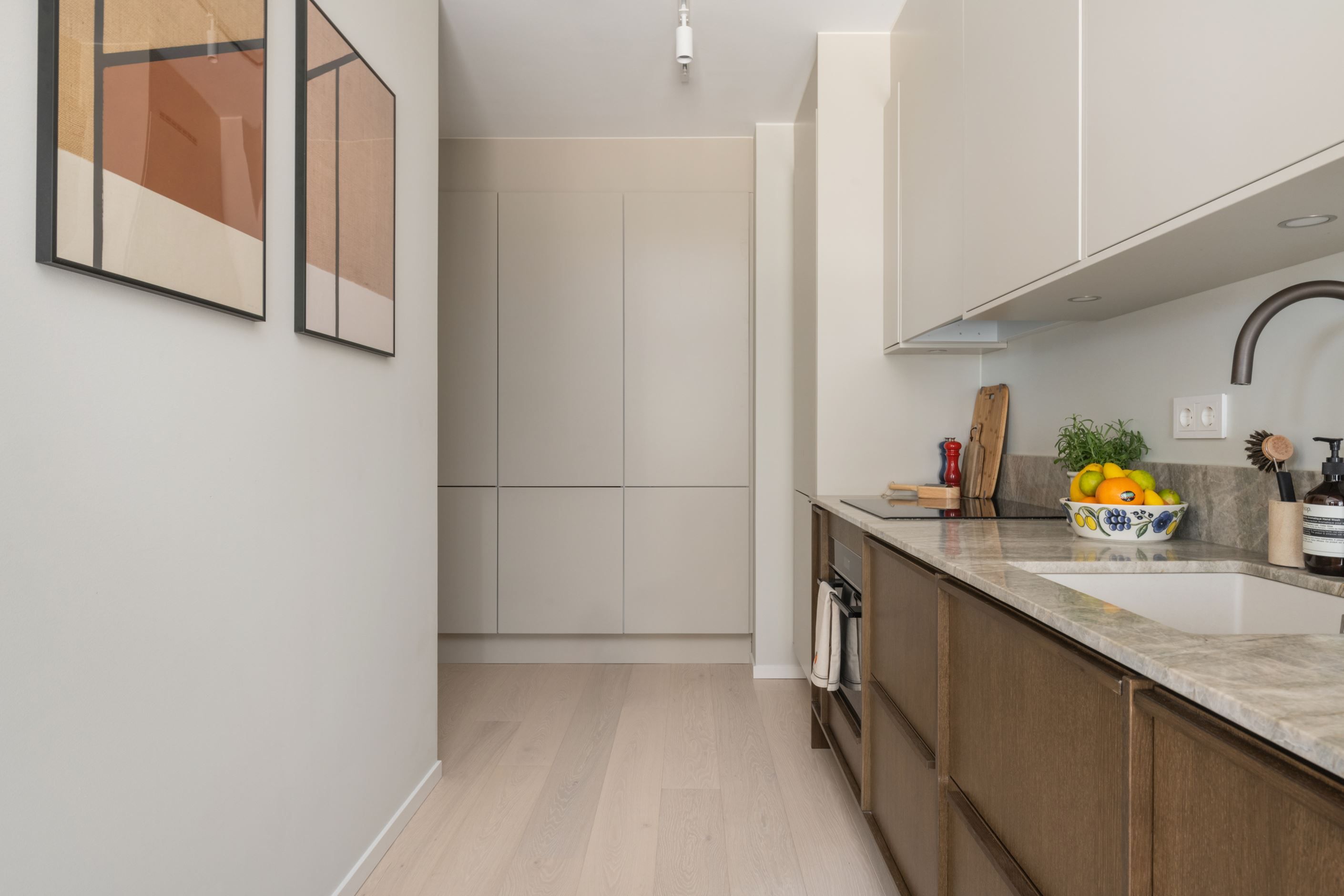 Varmt välkomna till Hagastaden och denna ytterst välplanerade tvårummare. Nyproducerad lägenhet med genomgående stilsäkra materialval där det fullt utrustade köket är från Marbodal och det exklusiva badrummet är helkaklat med granitkeramik från Bricmate. I badrummet finns också en kombinerad tvätt/torktumlare. Planlösningen är optimal där köket ligger i öppen anslutning till vardagsrummet. Här finns plats för både soffa och matplats.